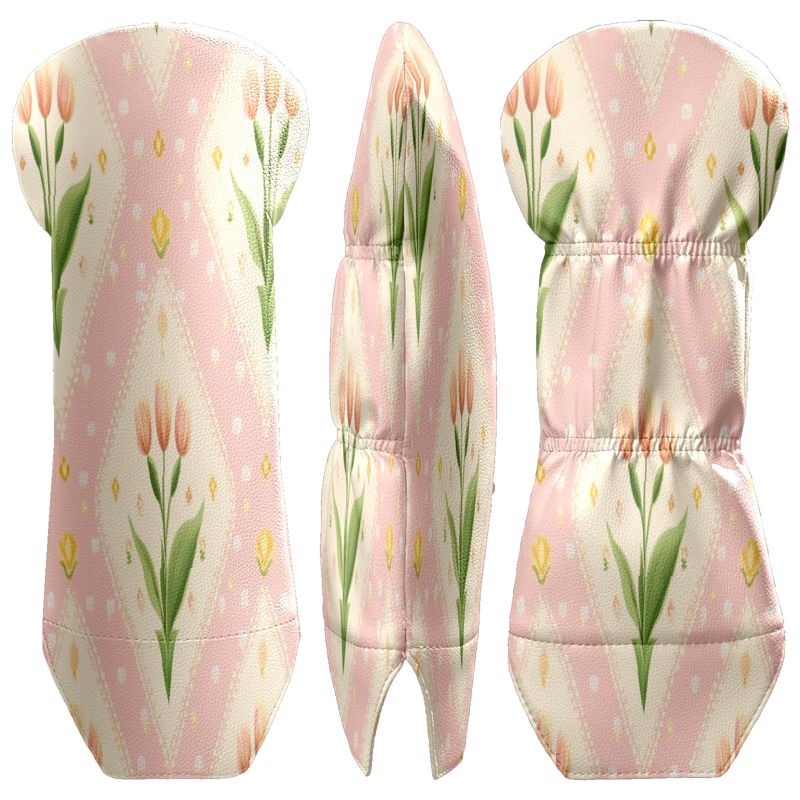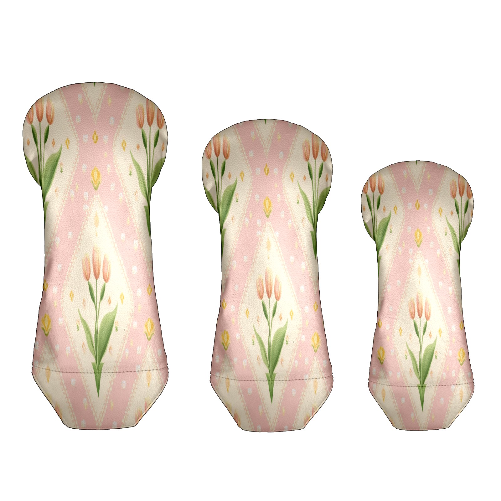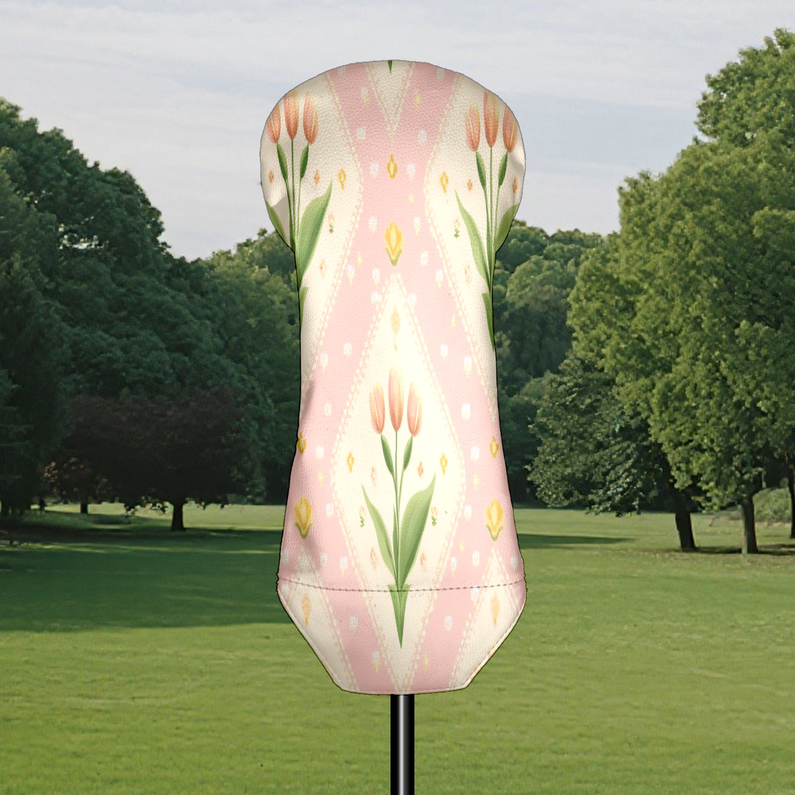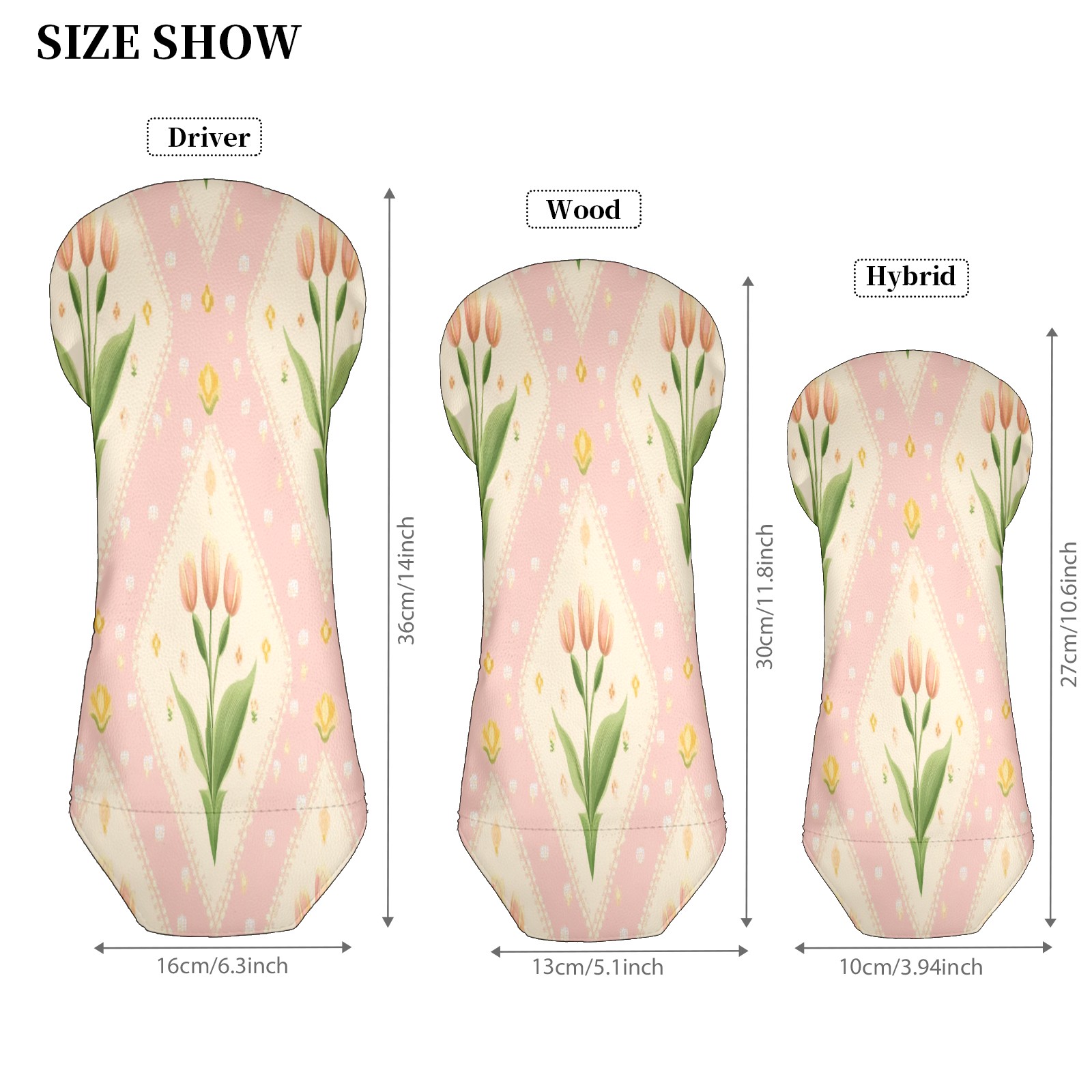 Golf Club Head Covers for Driver Hybrid and Fairway Woods, Waterproof Leather Headcovers for Golf Clubs, Ideal Golf Accessories Gift for Men Women (Small Tulips)