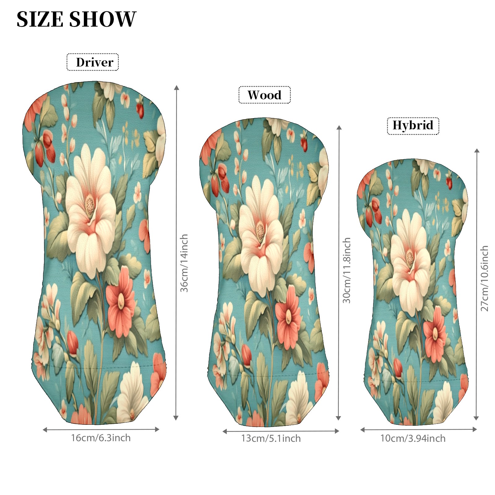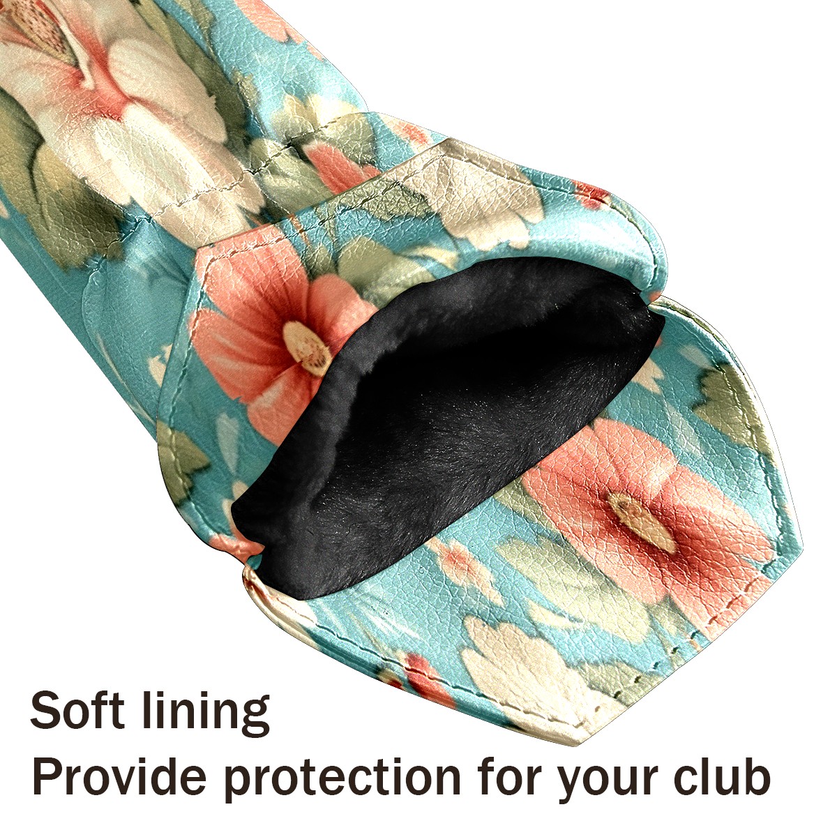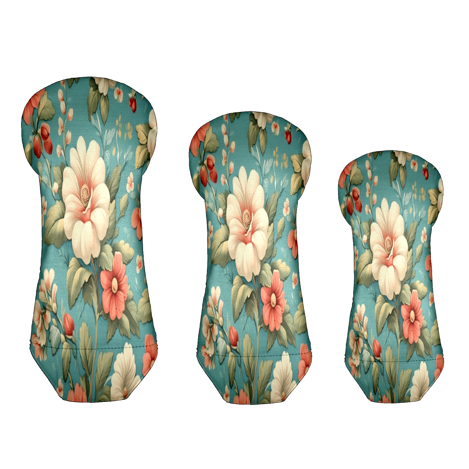 Golf Club Head Covers for Driver Hybrid and Fairway Woods, Waterproof Leather Headcovers for Golf Clubs, Ideal Golf Accessories Gift for Men Women (Vintage Floral)