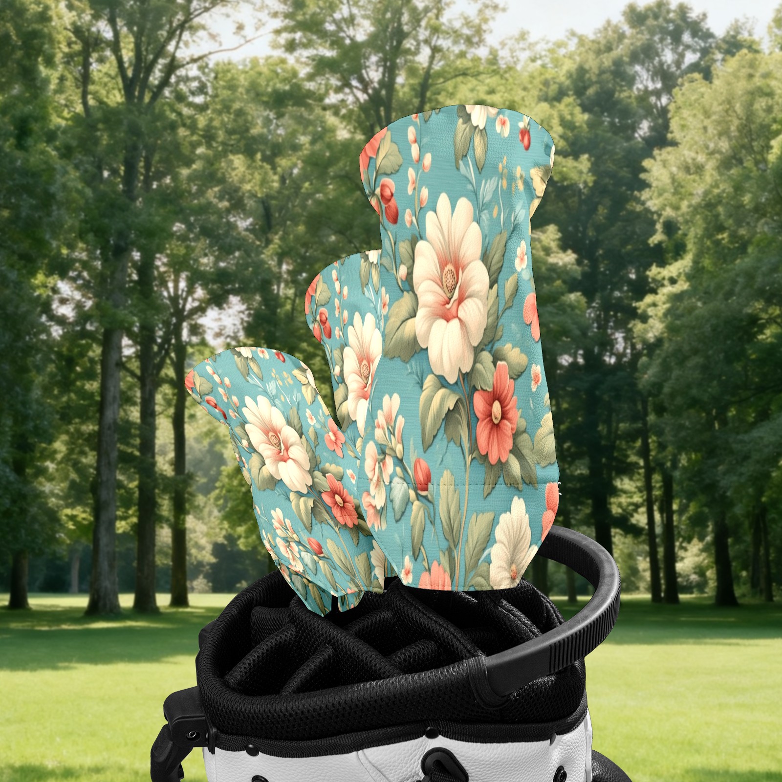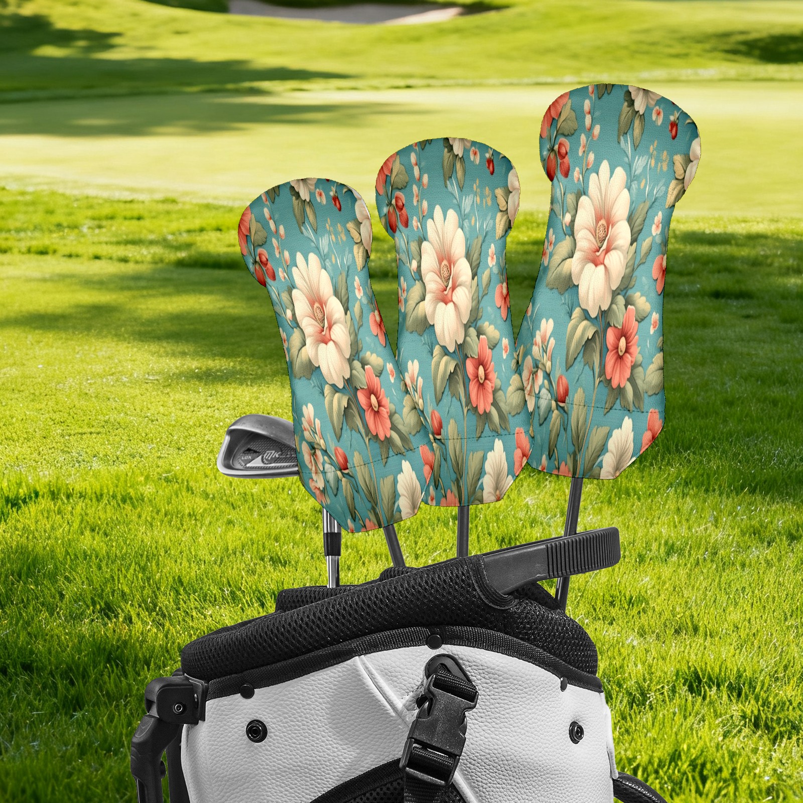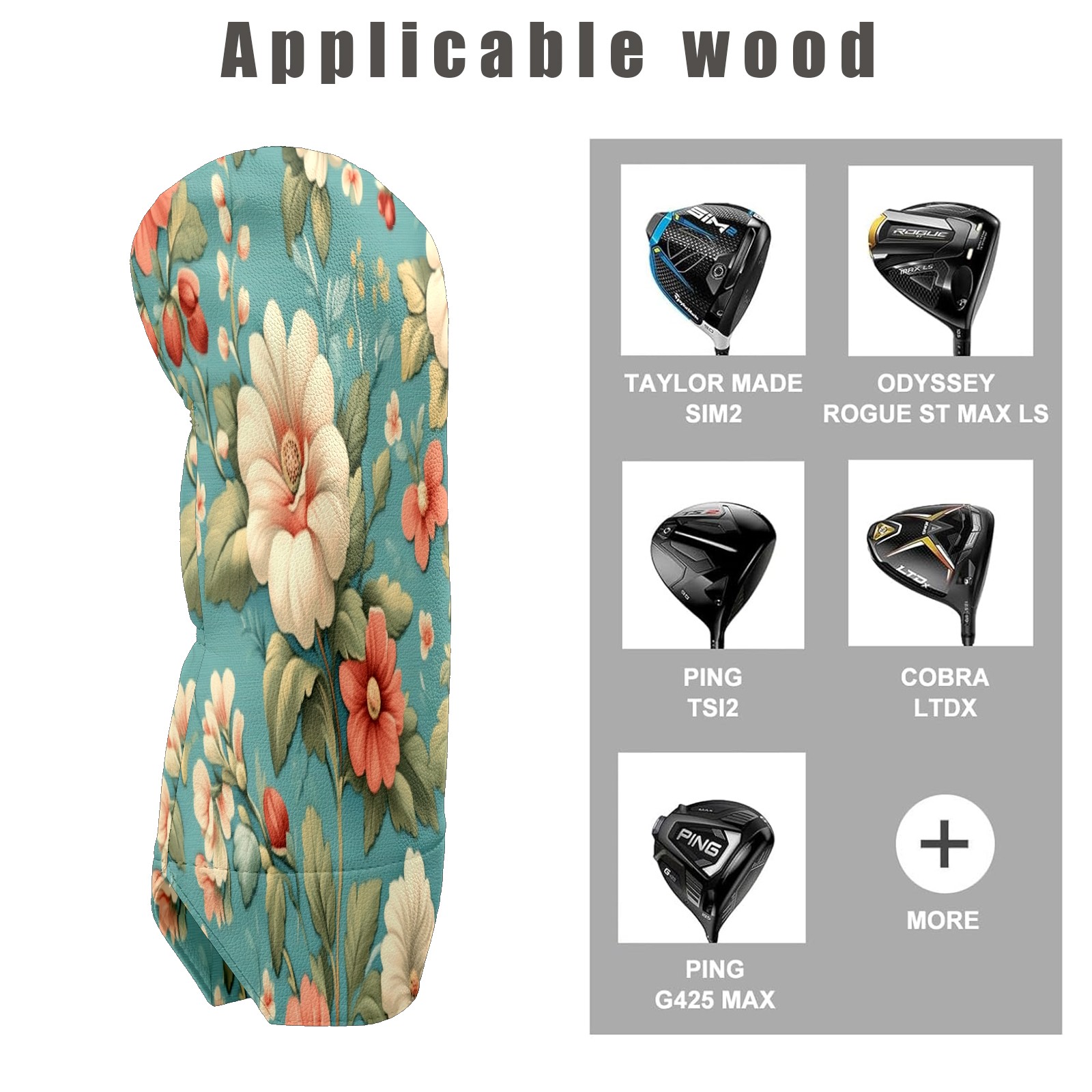 Golf Club Head Covers for Driver Hybrid and Fairway Woods, Waterproof Leather Headcovers for Golf Clubs, Ideal Golf Accessories Gift for Men Women (Vintage Floral)