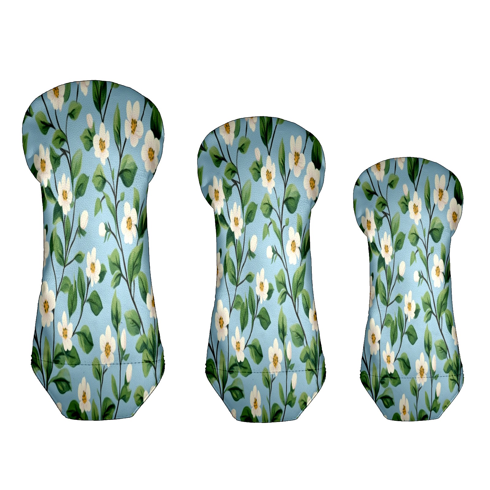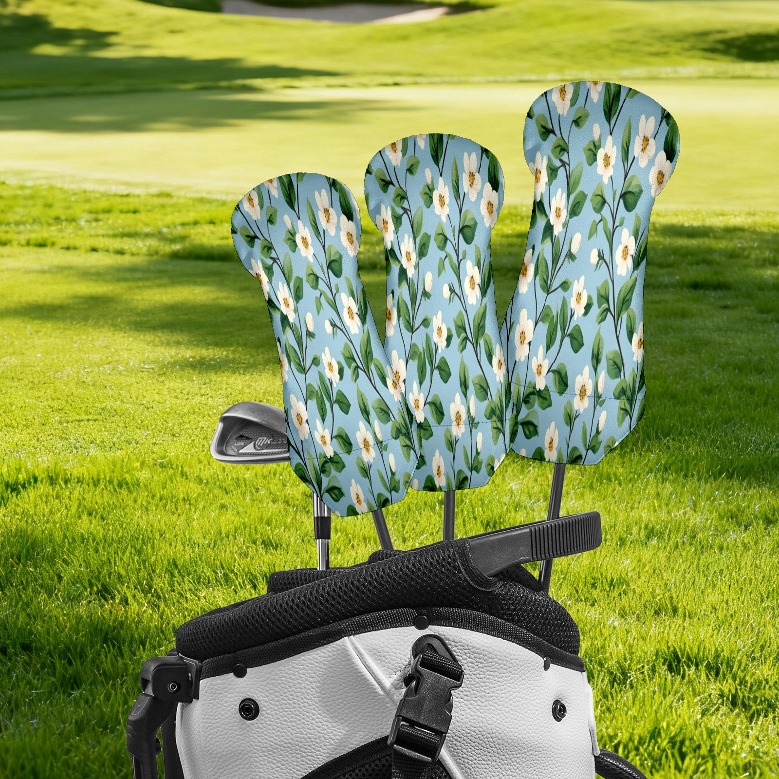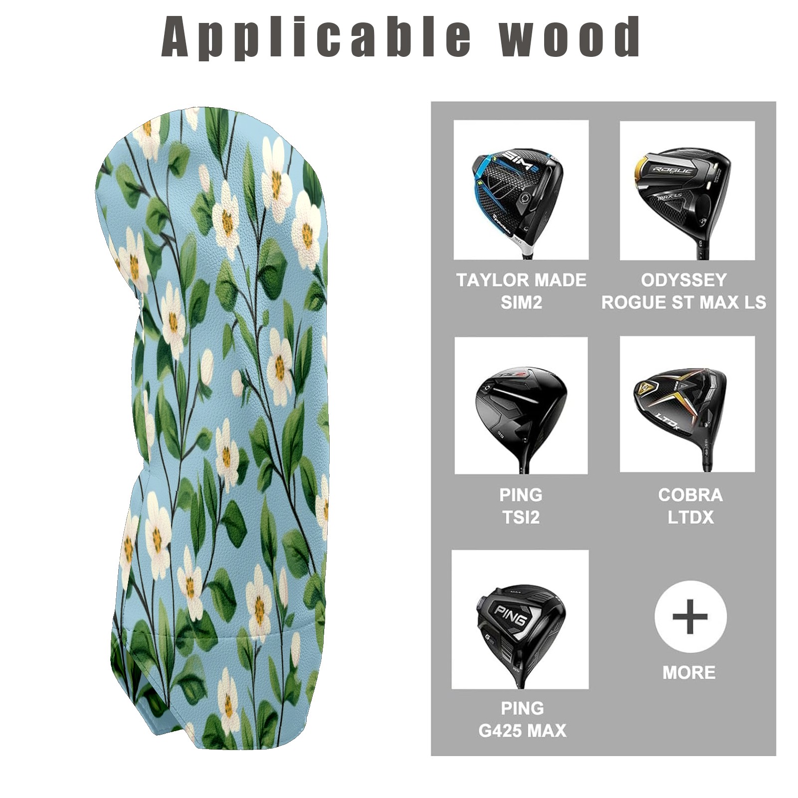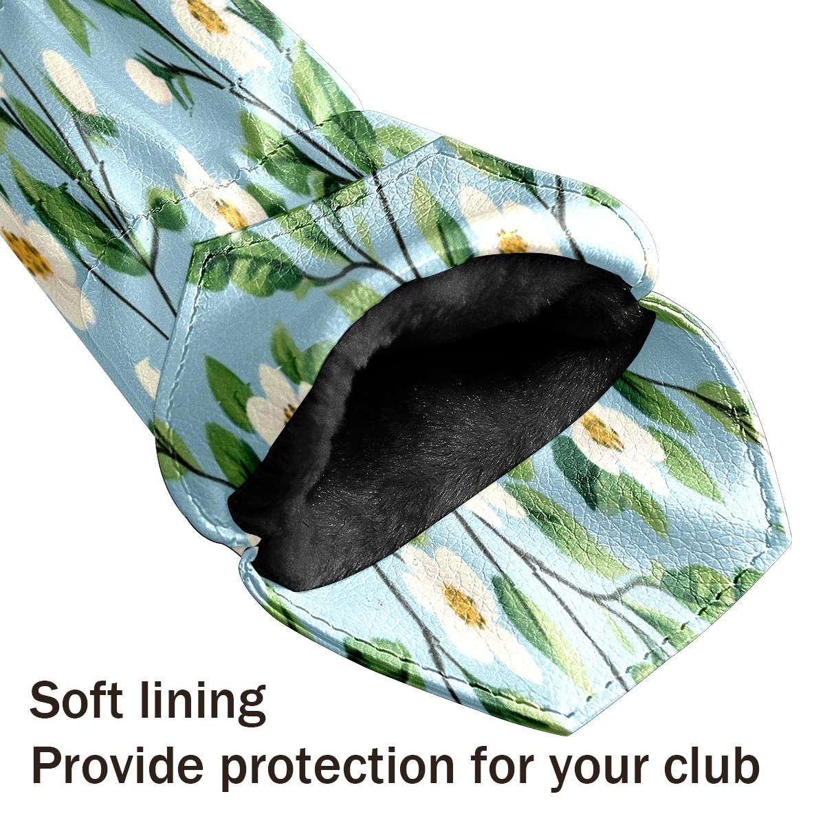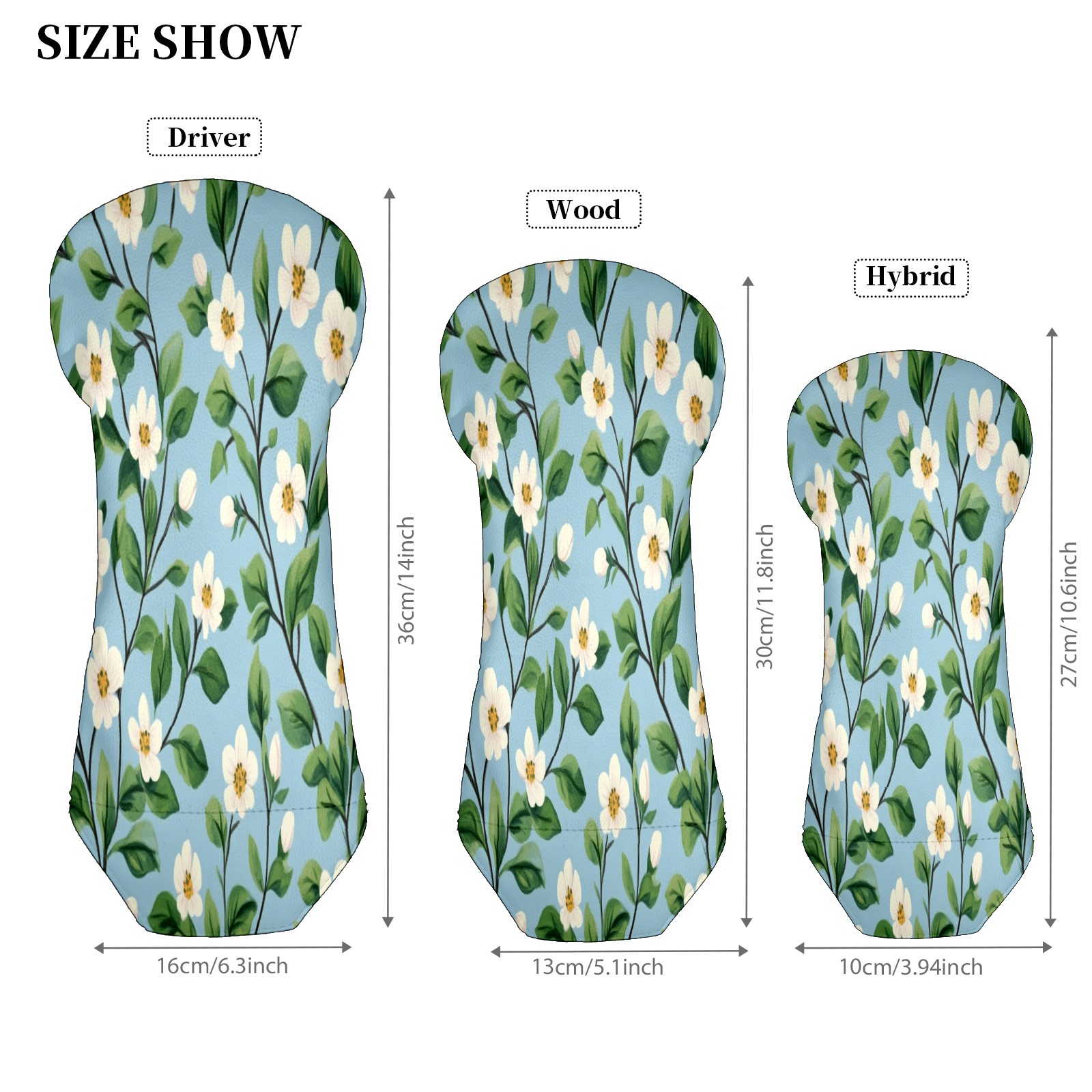 Golf Club Head Covers for Driver Hybrid and Fairway Woods, Waterproof Leather Headcovers for Golf Clubs, Ideal Golf Accessories Gift for Men Women (Small White Flowers)