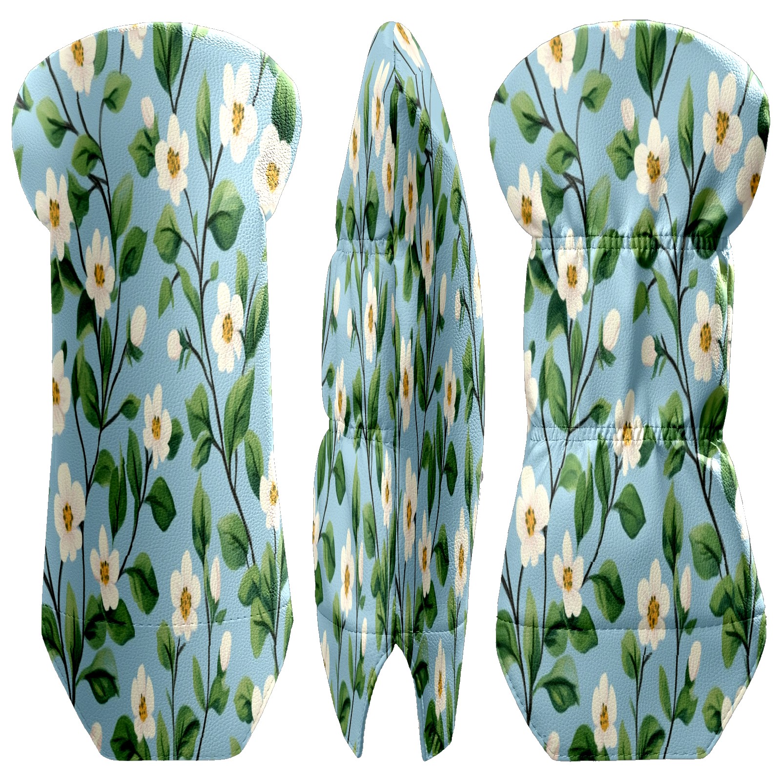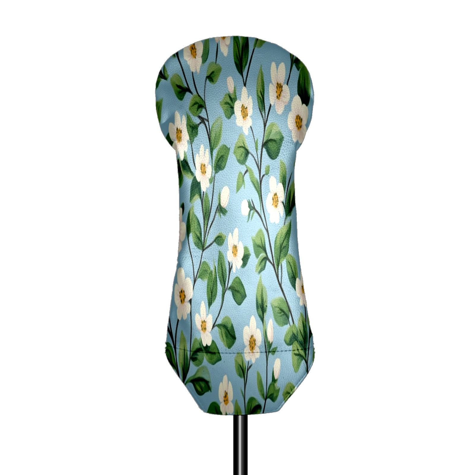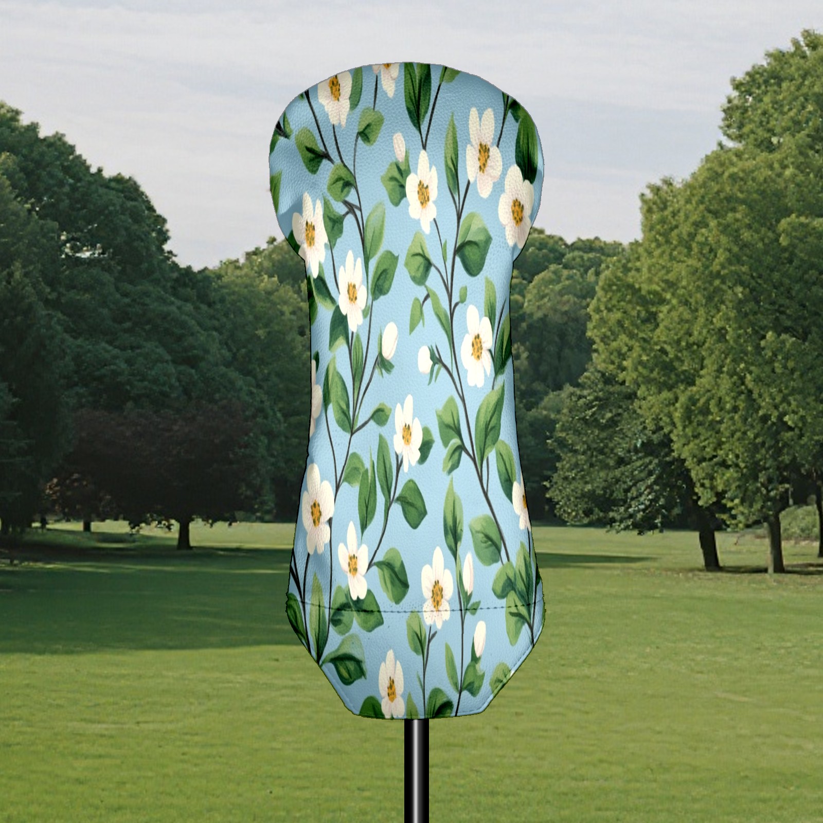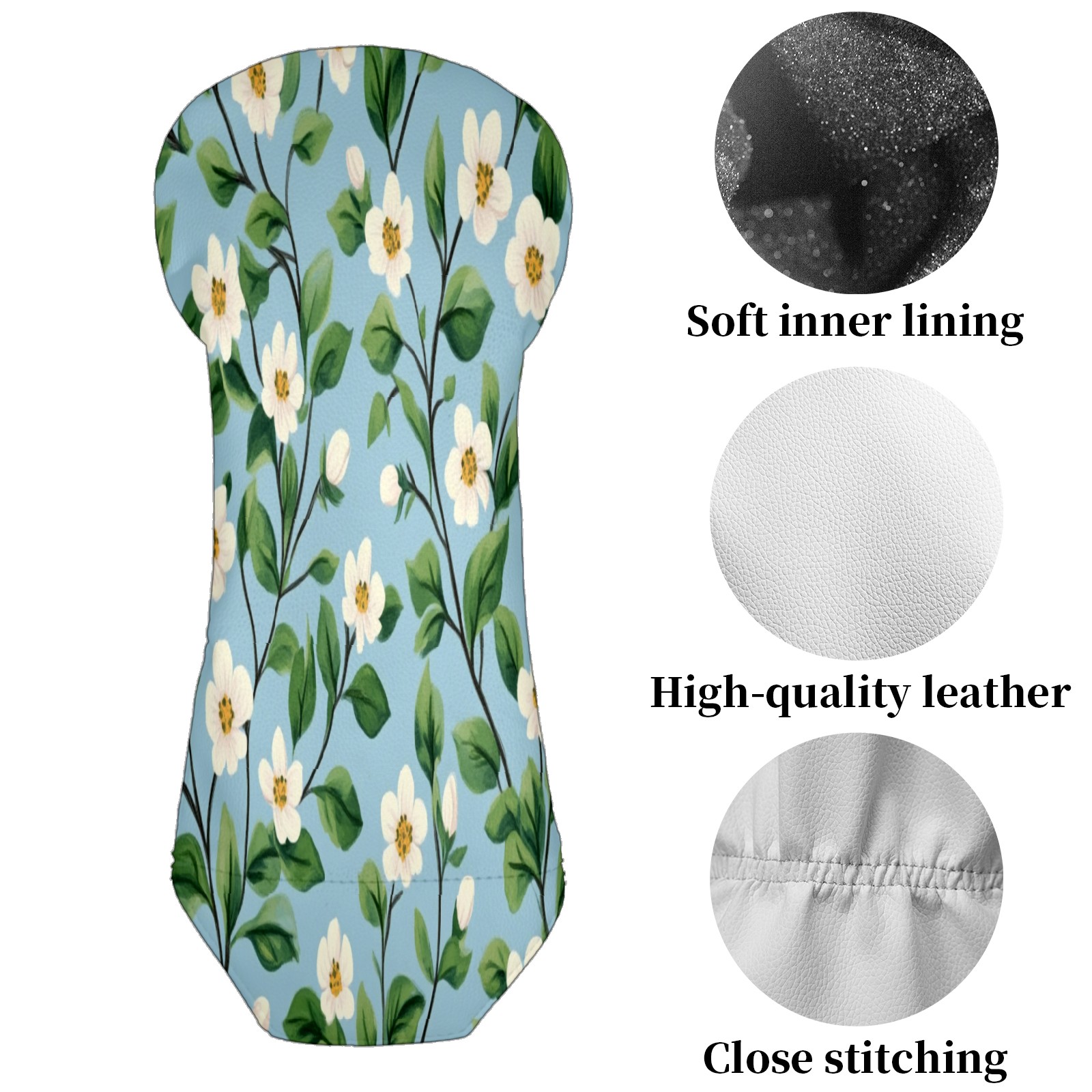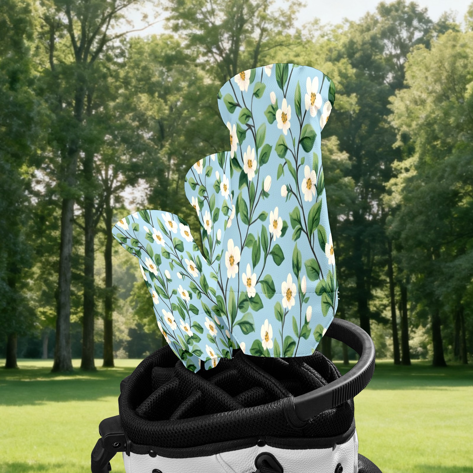 Golf Club Head Covers for Driver Hybrid and Fairway Woods, Waterproof Leather Headcovers for Golf Clubs, Ideal Golf Accessories Gift for Men Women (Small White Flowers)