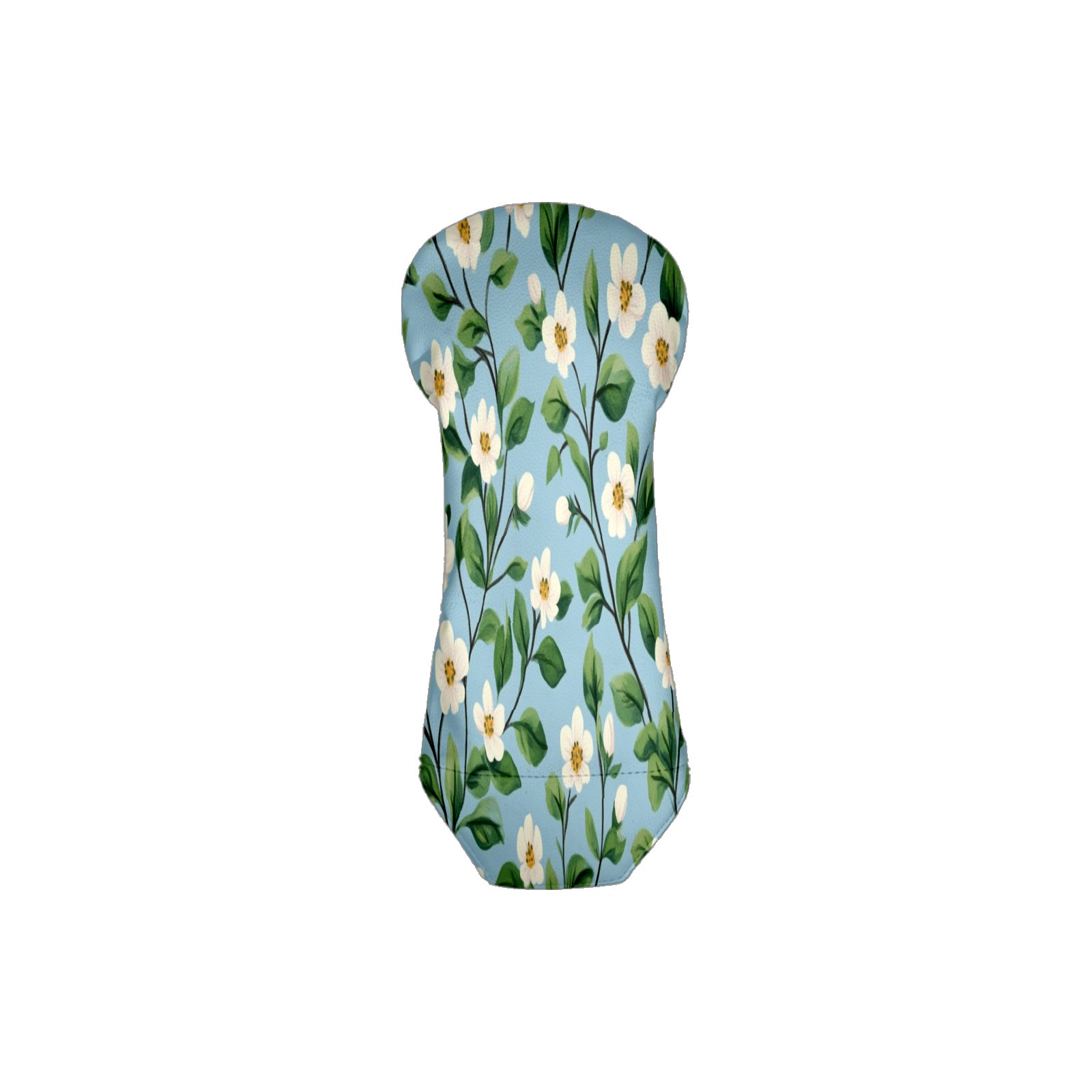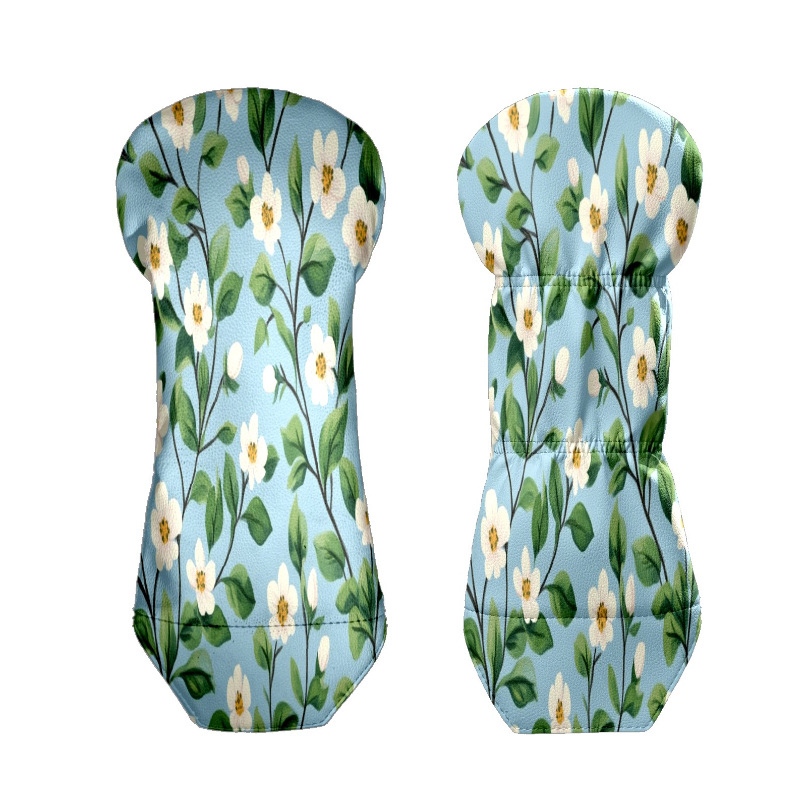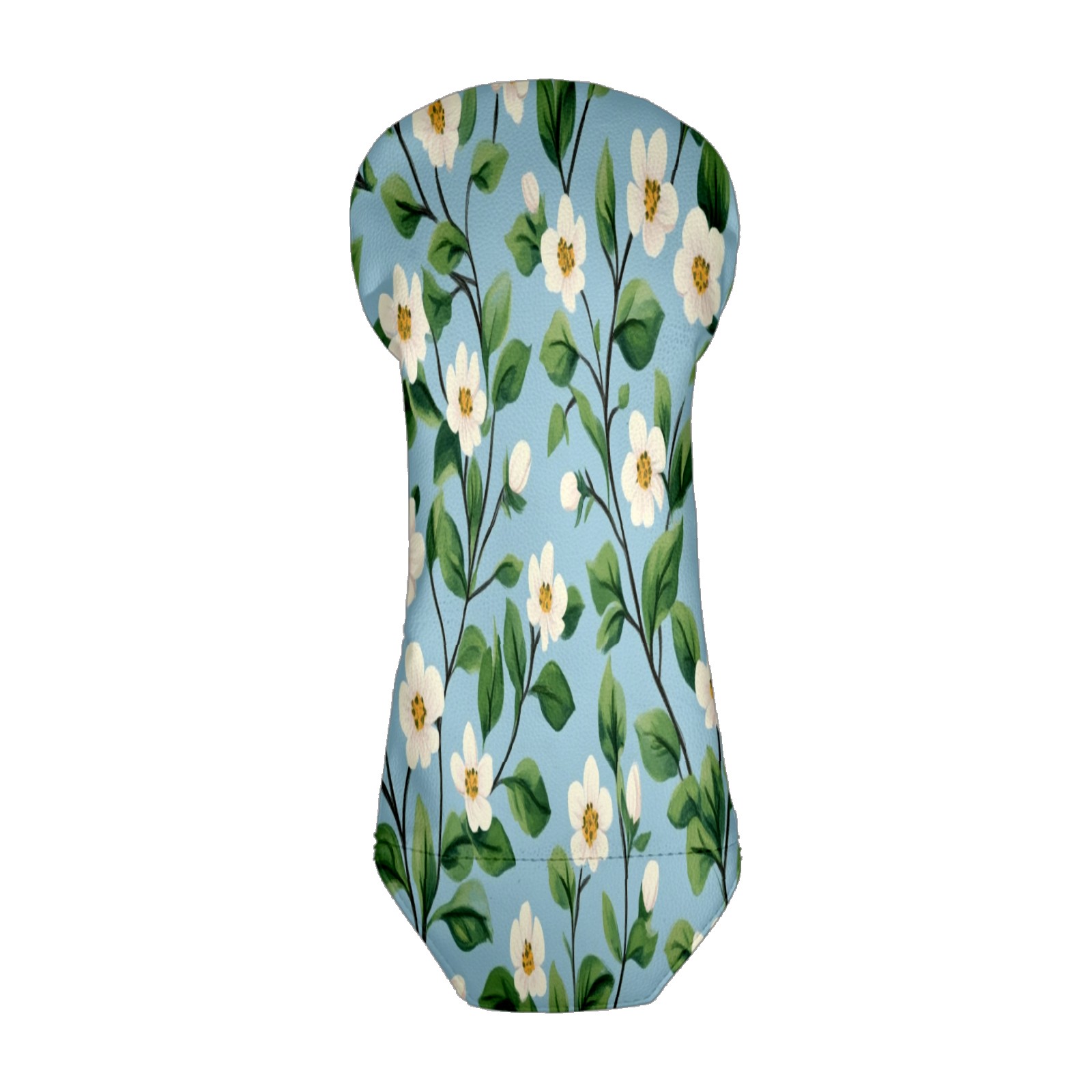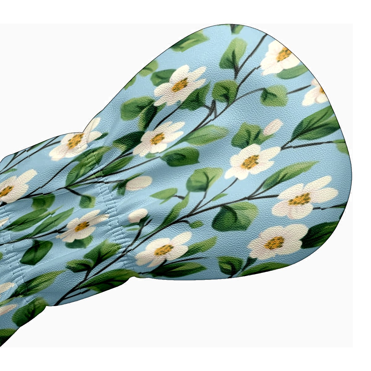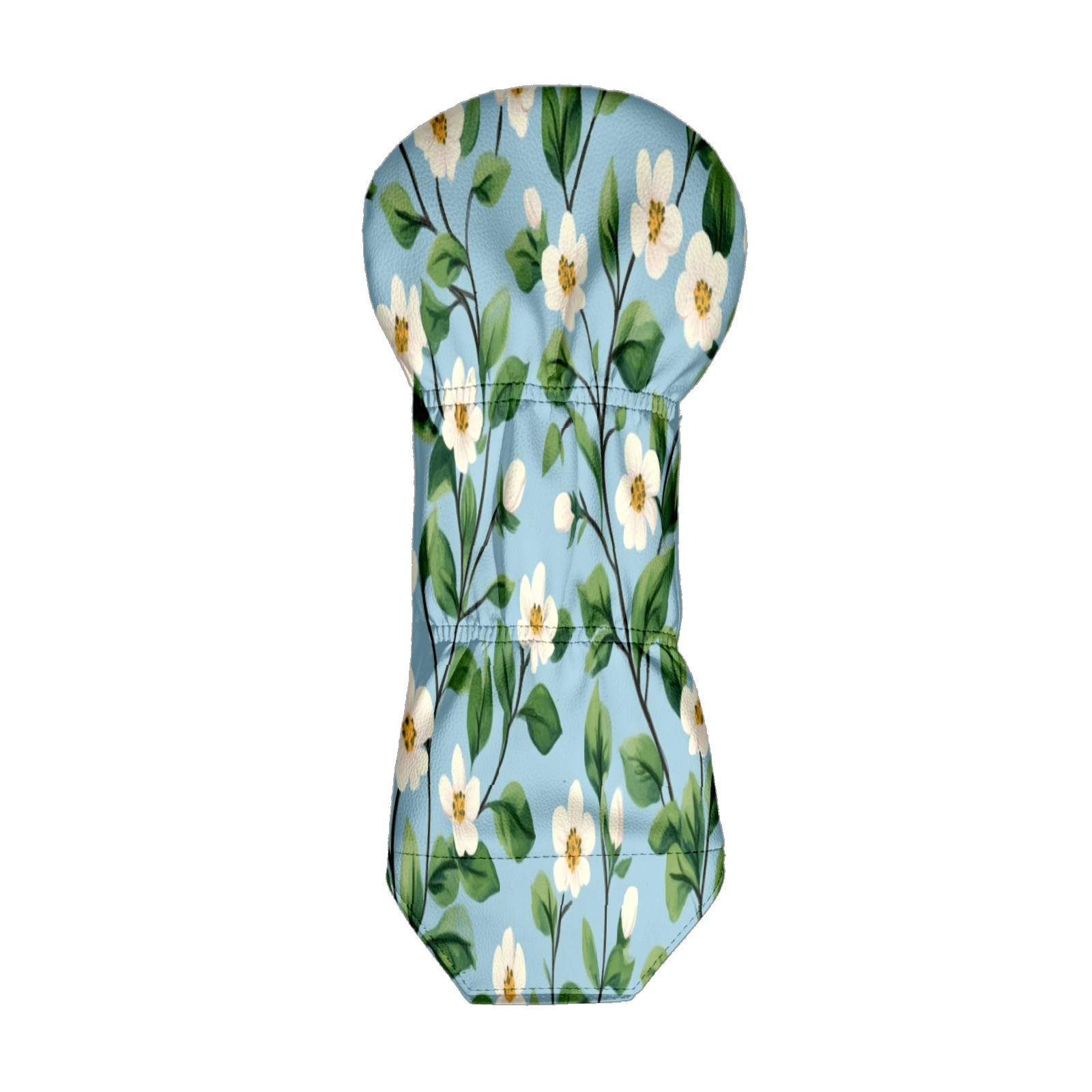 Golf Club Head Covers for Driver Hybrid and Fairway Woods, Waterproof Leather Headcovers for Golf Clubs, Ideal Golf Accessories Gift for Men Women (Small White Flowers)