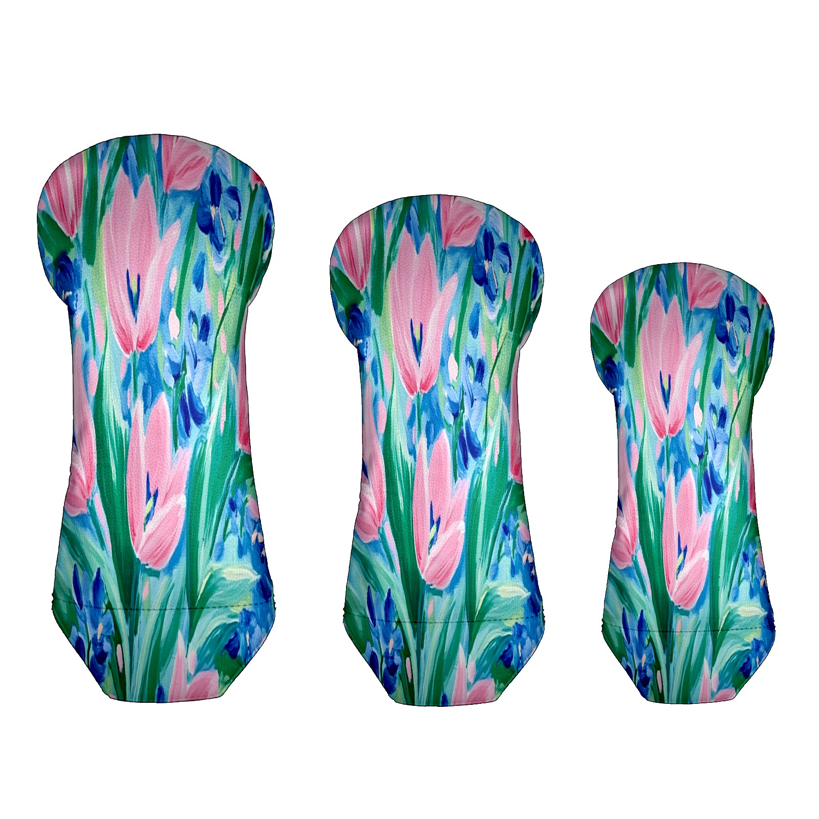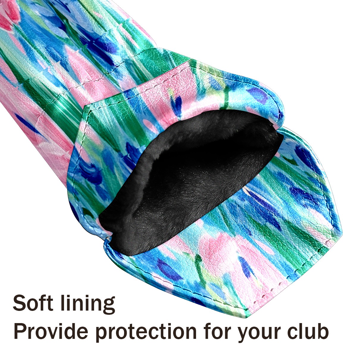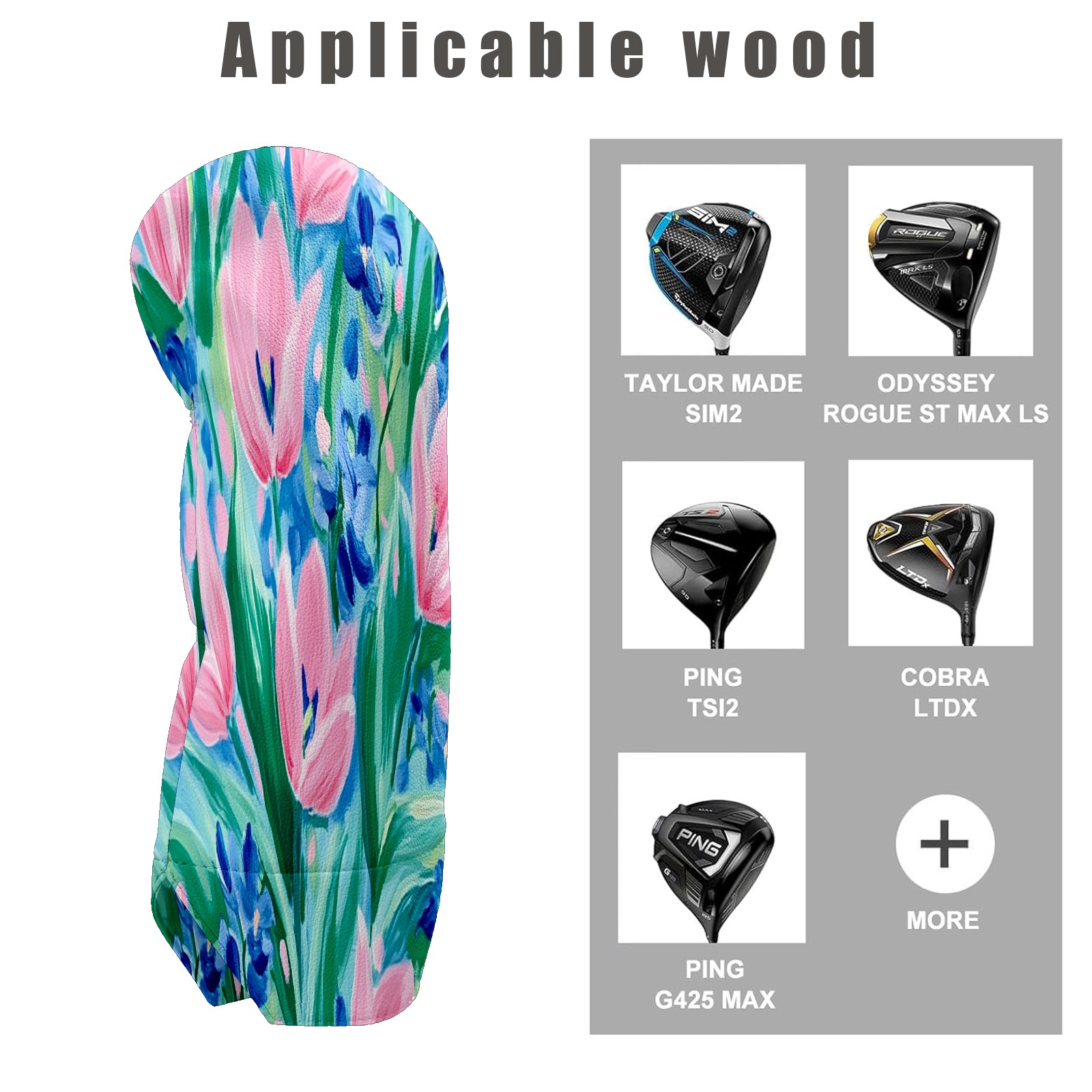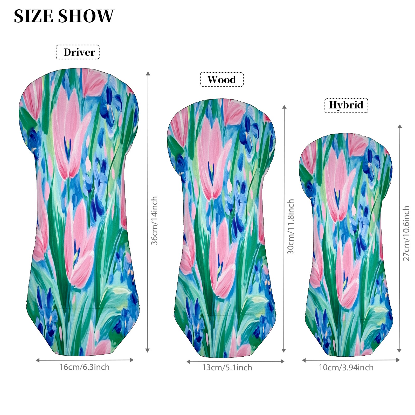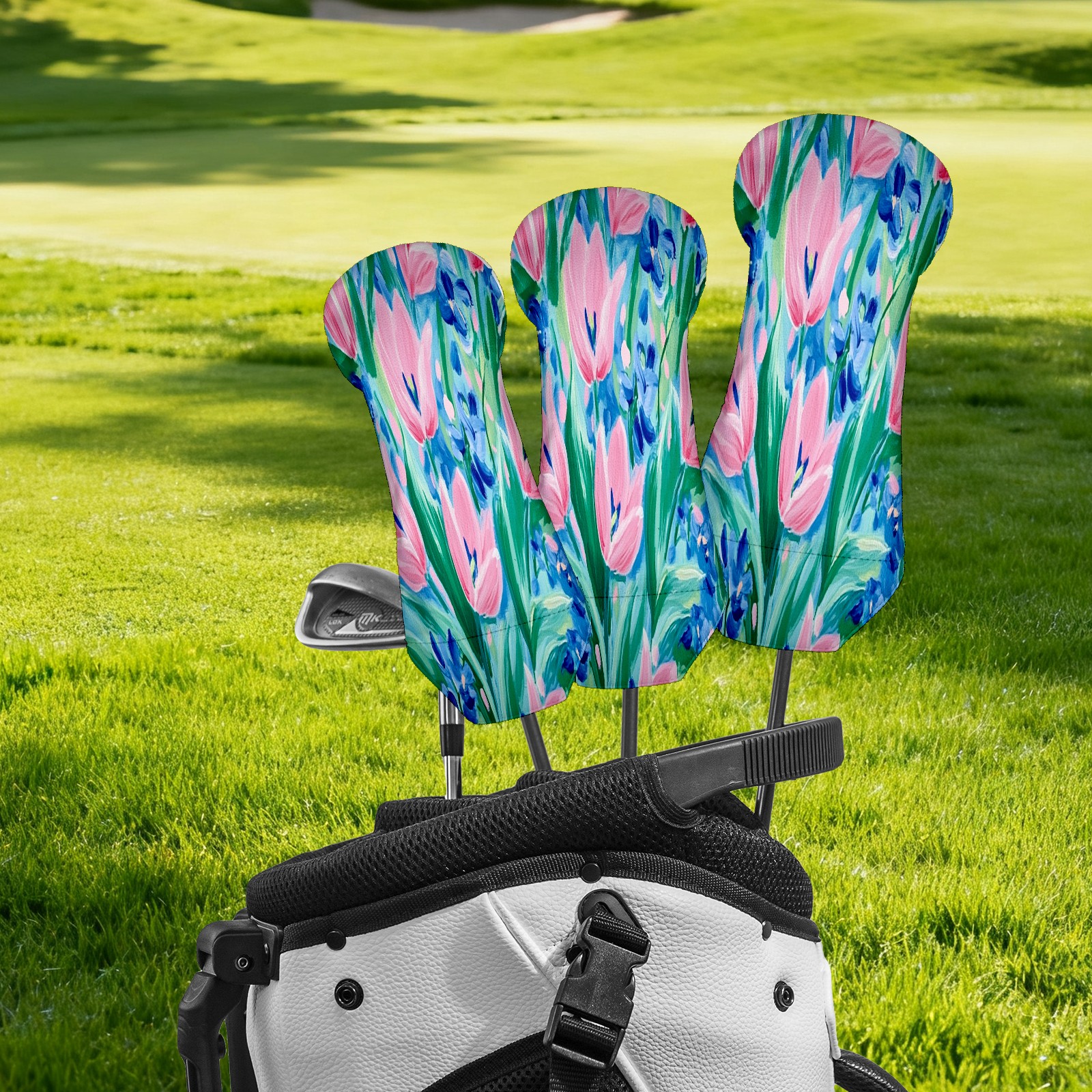 Golf Club Head Covers for Driver Hybrid and Fairway Woods, Waterproof Leather Headcovers for Golf Clubs, Ideal Golf Accessories Gift for Men Women (Tulips)
