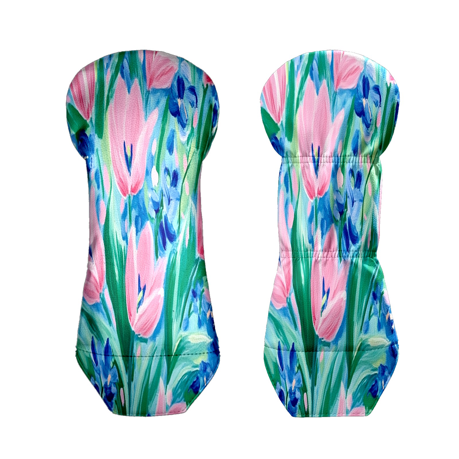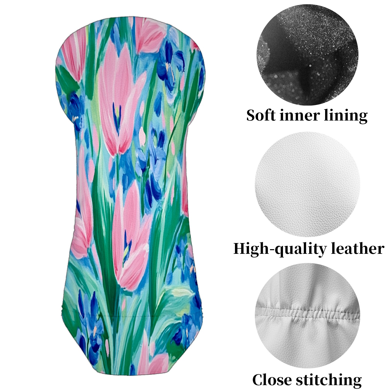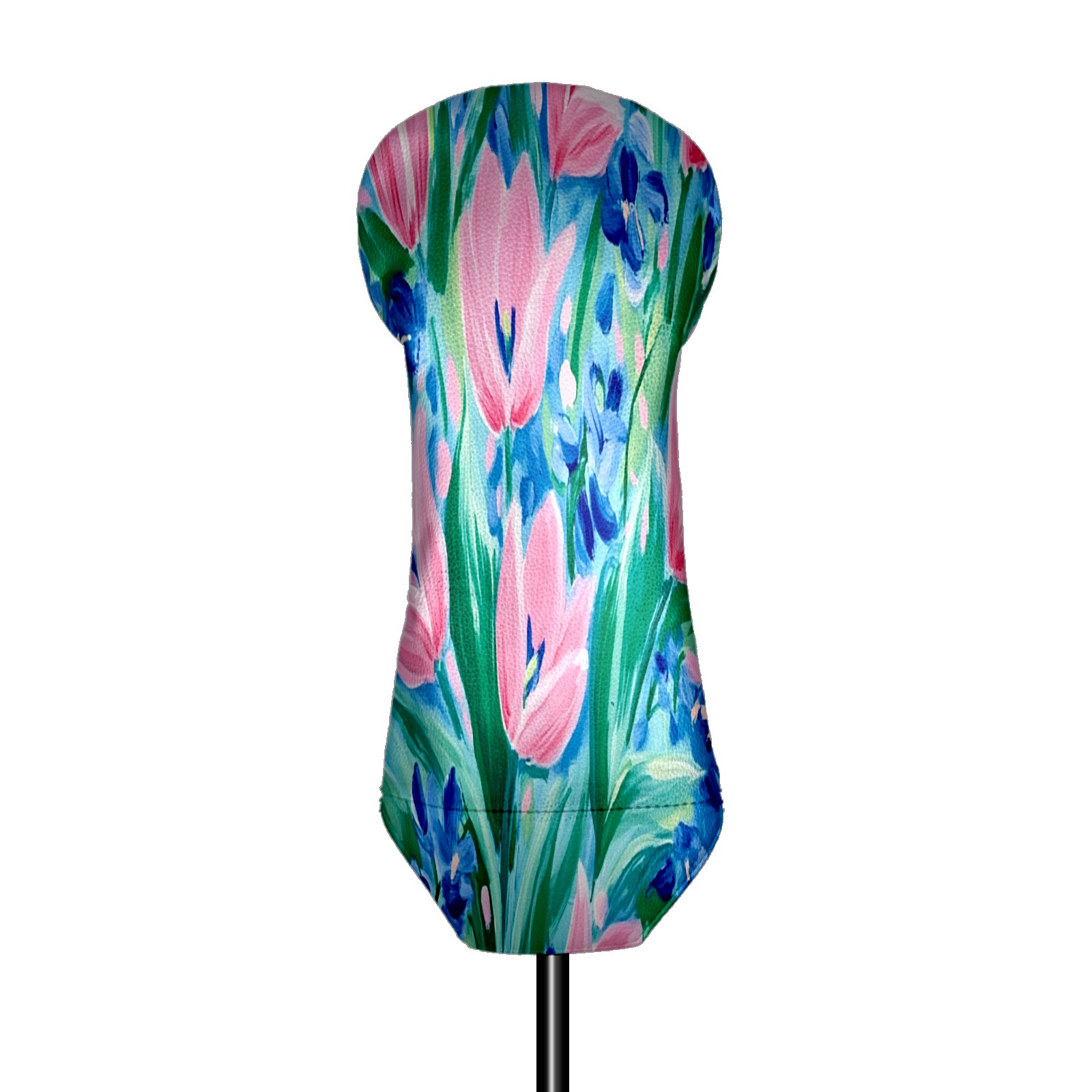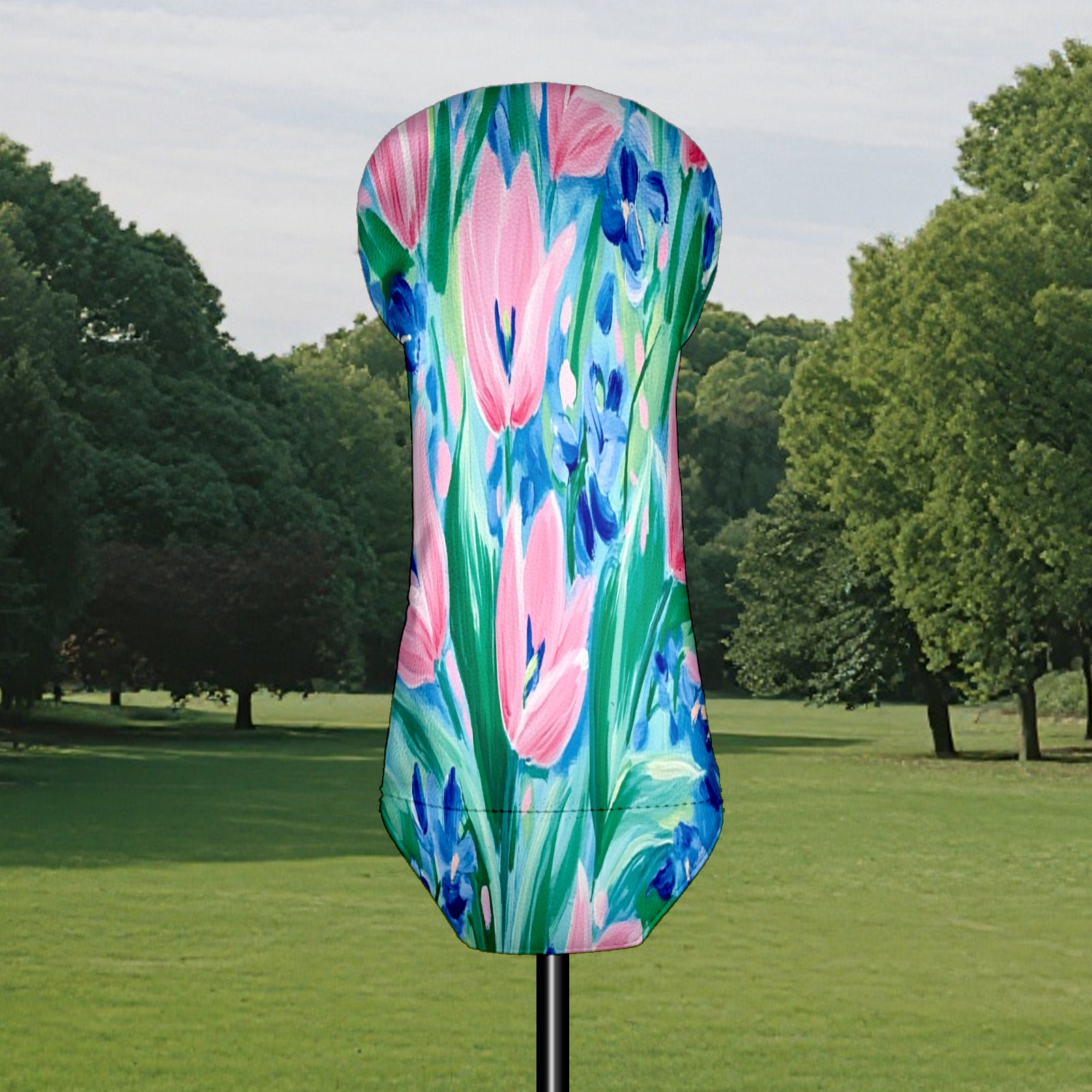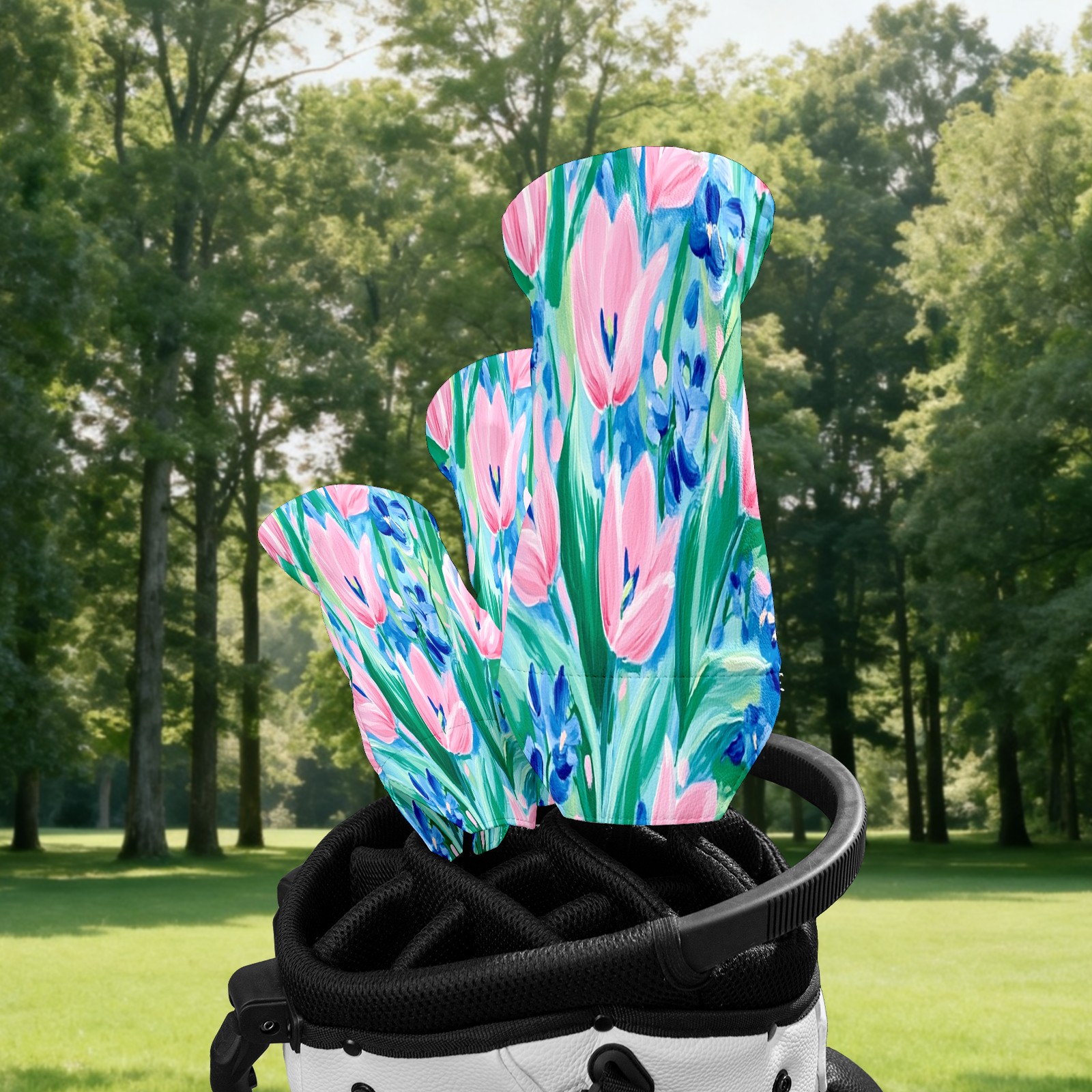 Golf Club Head Covers for Driver Hybrid and Fairway Woods, Waterproof Leather Headcovers for Golf Clubs, Ideal Golf Accessories Gift for Men Women (Tulips)