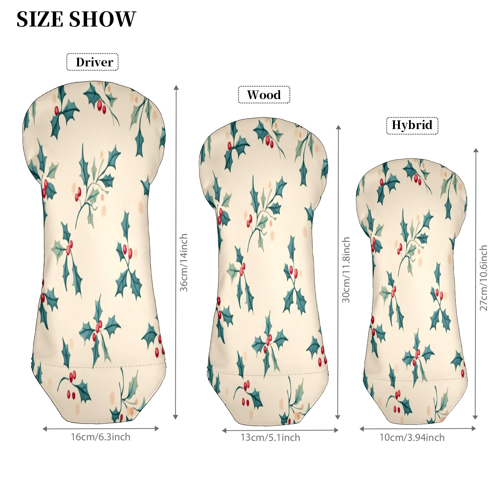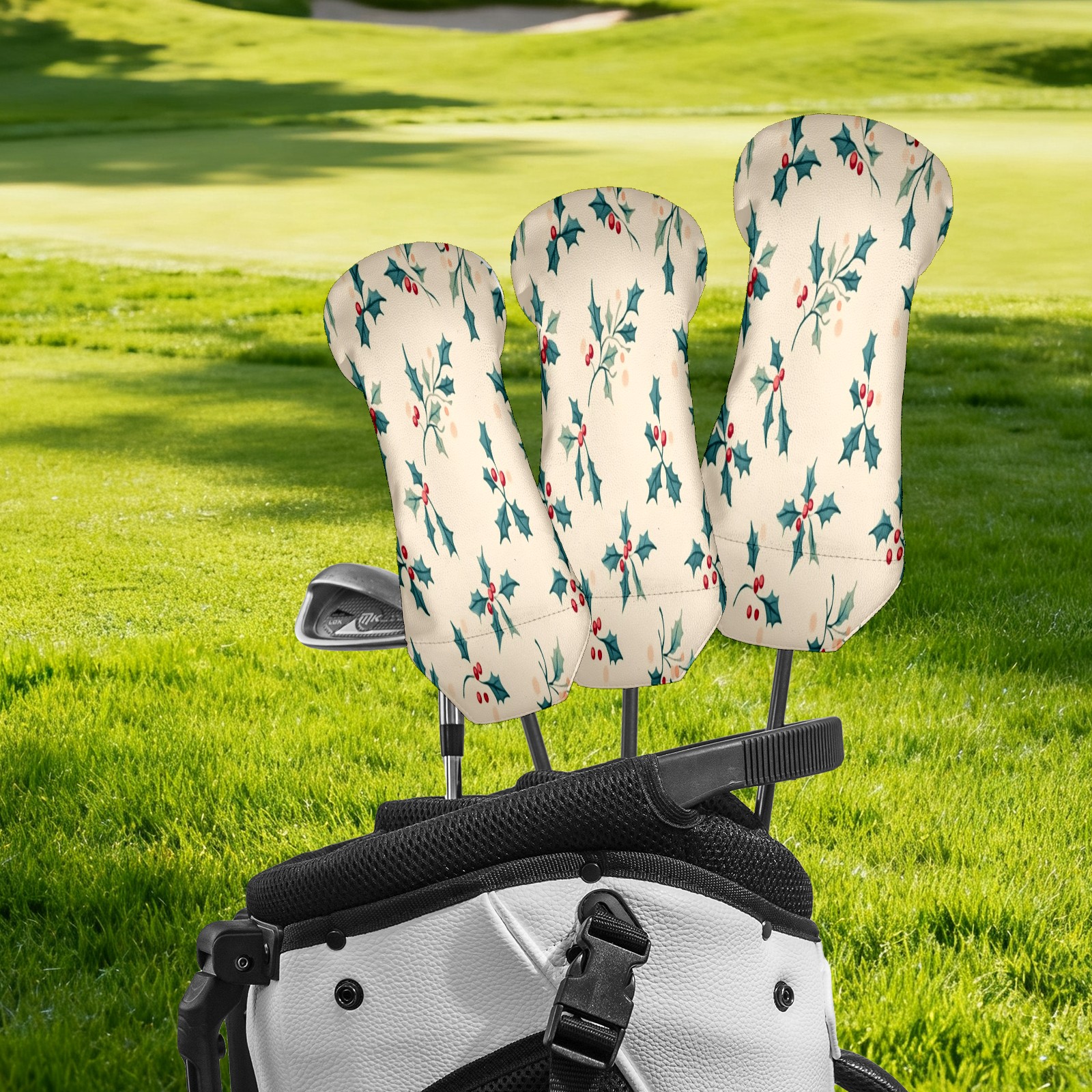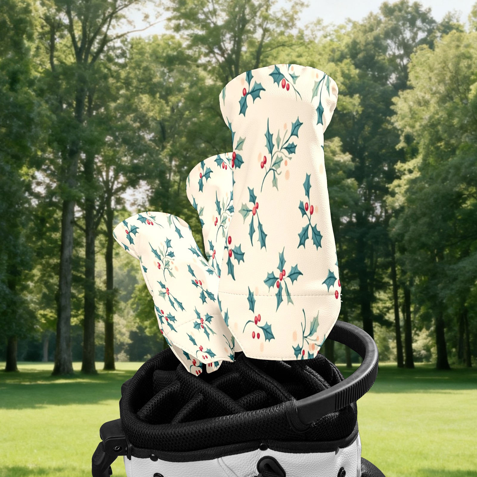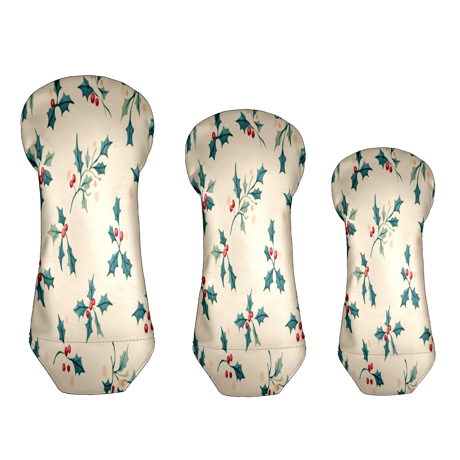 Golf Club Head Covers for Driver Hybrid and Fairway Woods, Waterproof Leather Headcovers for Golf Clubs, Ideal Golf Accessories Gift for Men Women (Small Holly Leaves)