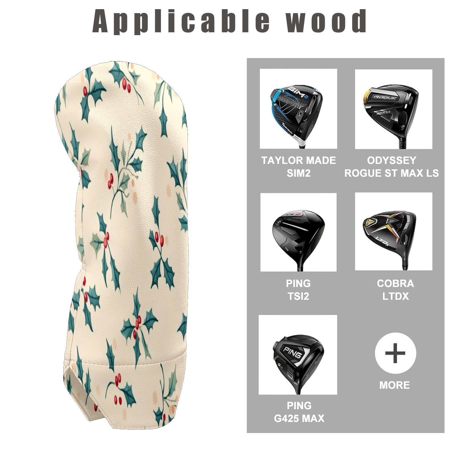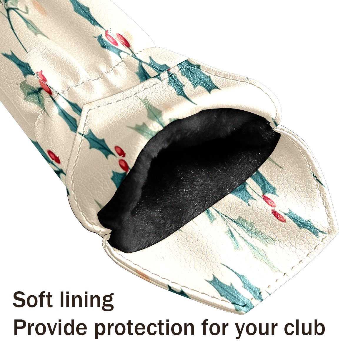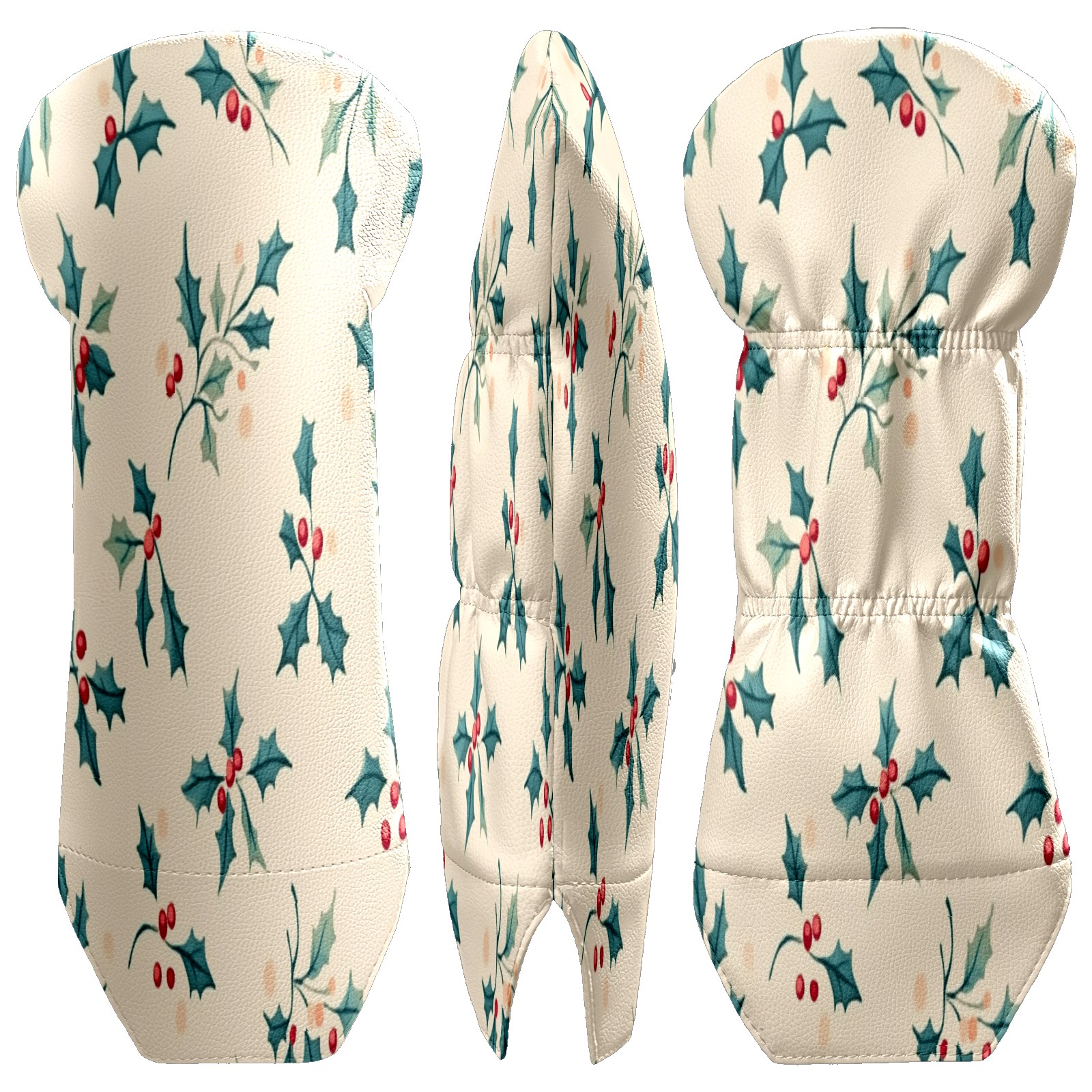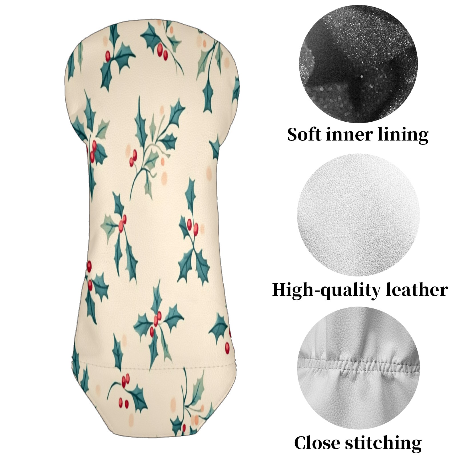 Golf Club Head Covers for Driver Hybrid and Fairway Woods, Waterproof Leather Headcovers for Golf Clubs, Ideal Golf Accessories Gift for Men Women (Small Holly Leaves)