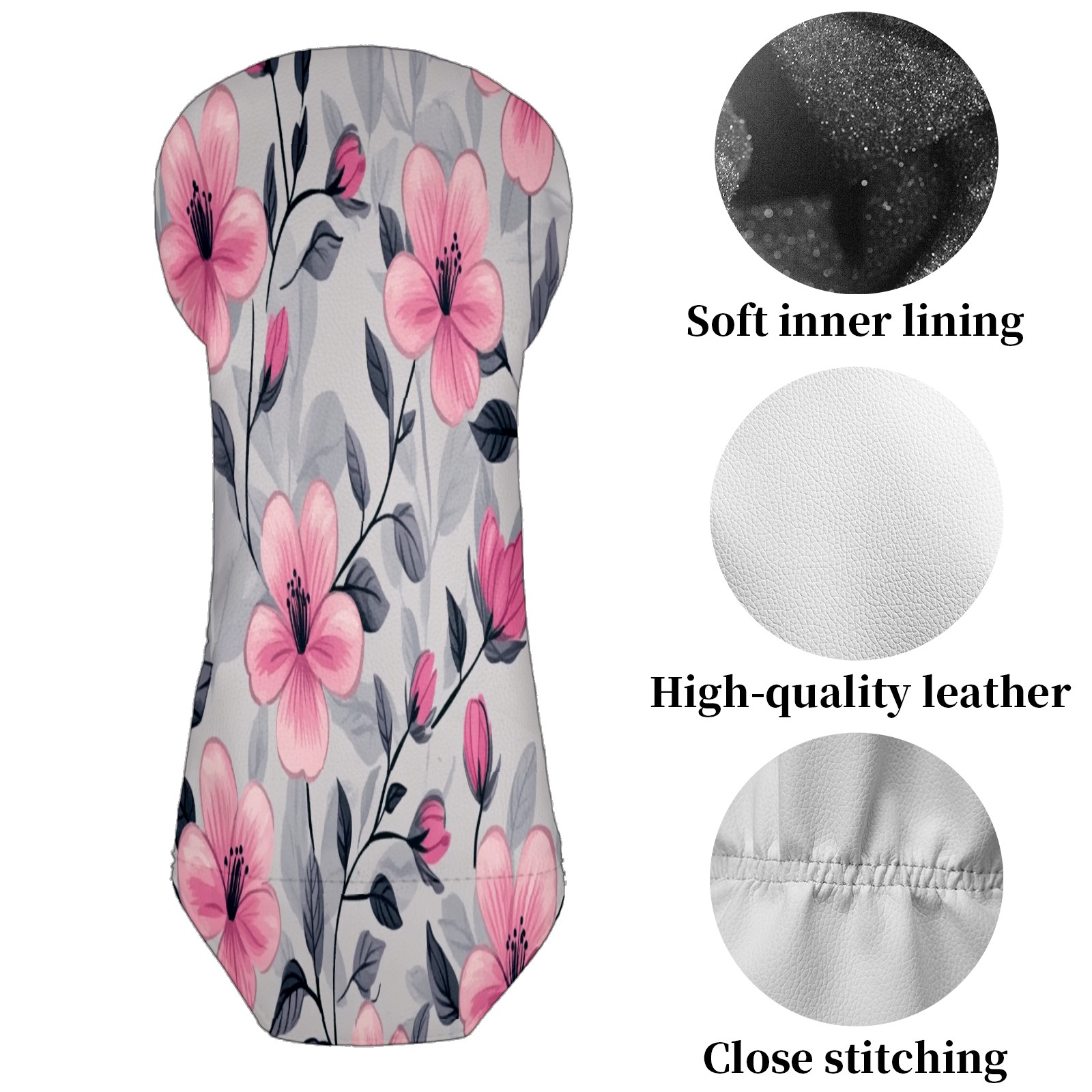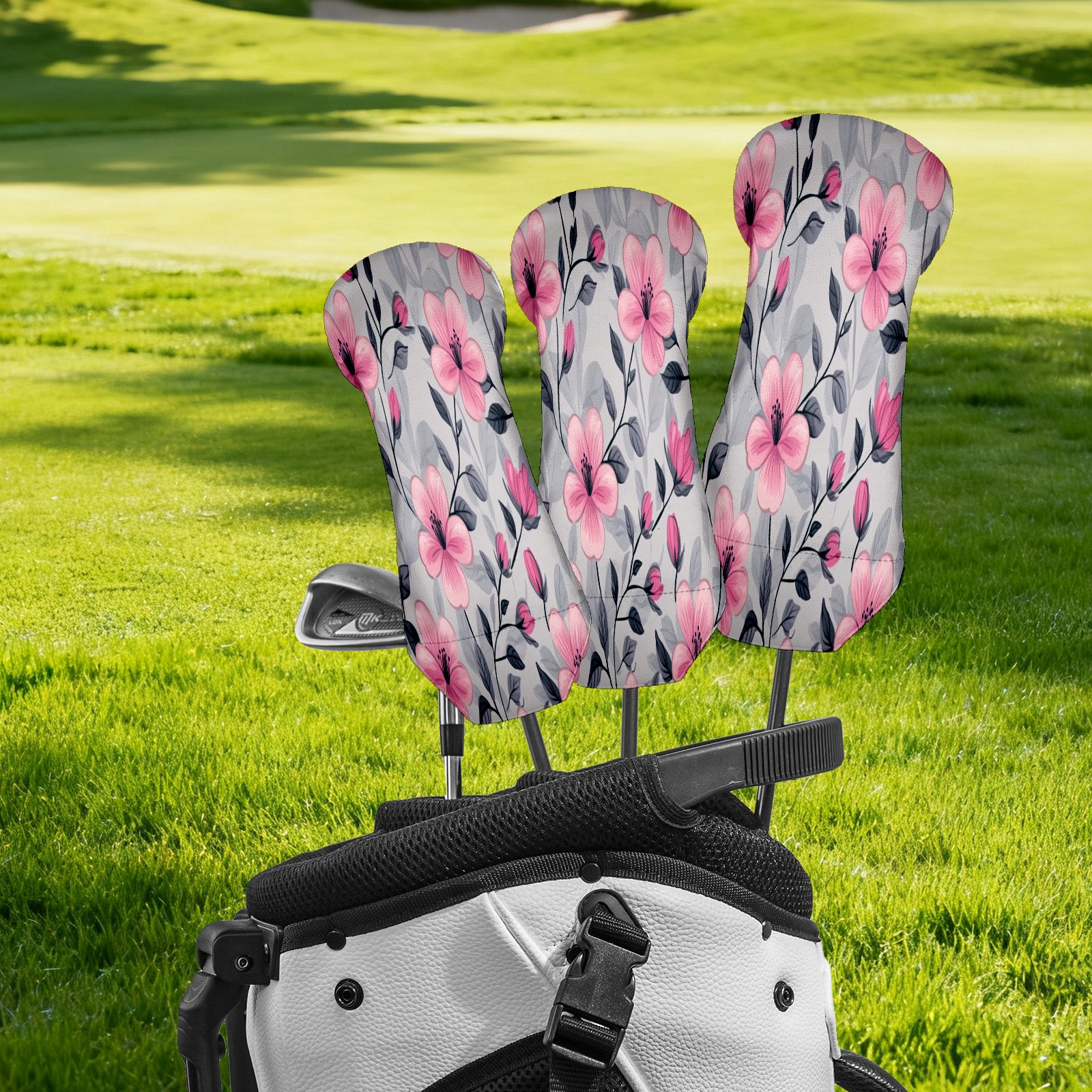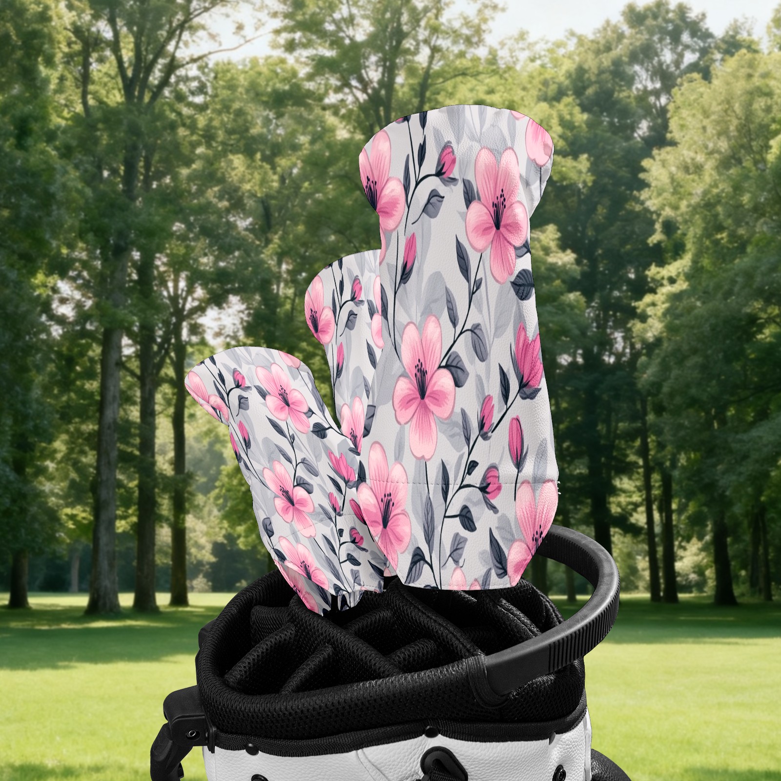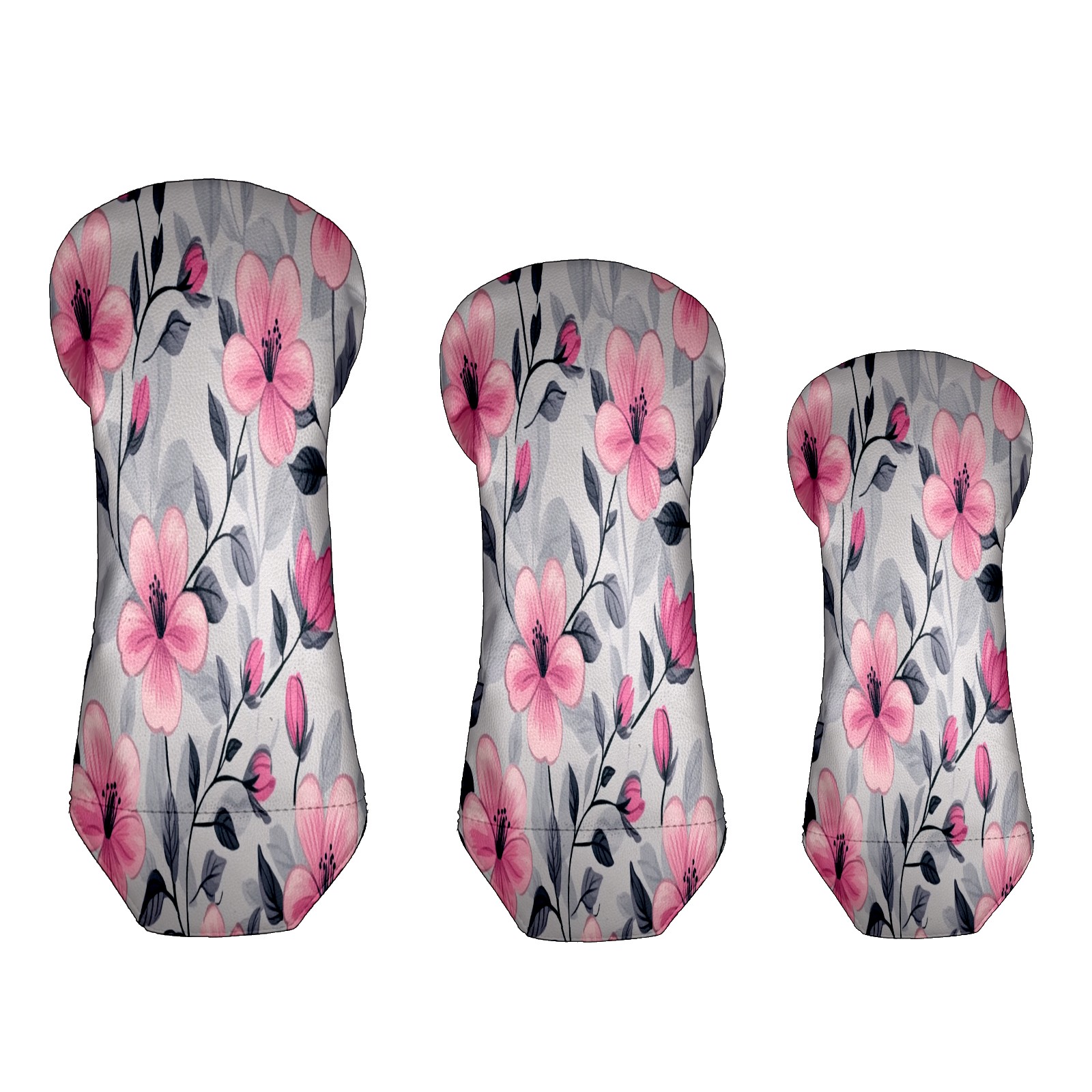 Golf Club Head Covers for Driver Hybrid and Fairway Woods, Waterproof Leather Headcovers for Golf Clubs, Ideal Golf Accessories Gift for Men Women (Pink Flowers And Leaves)