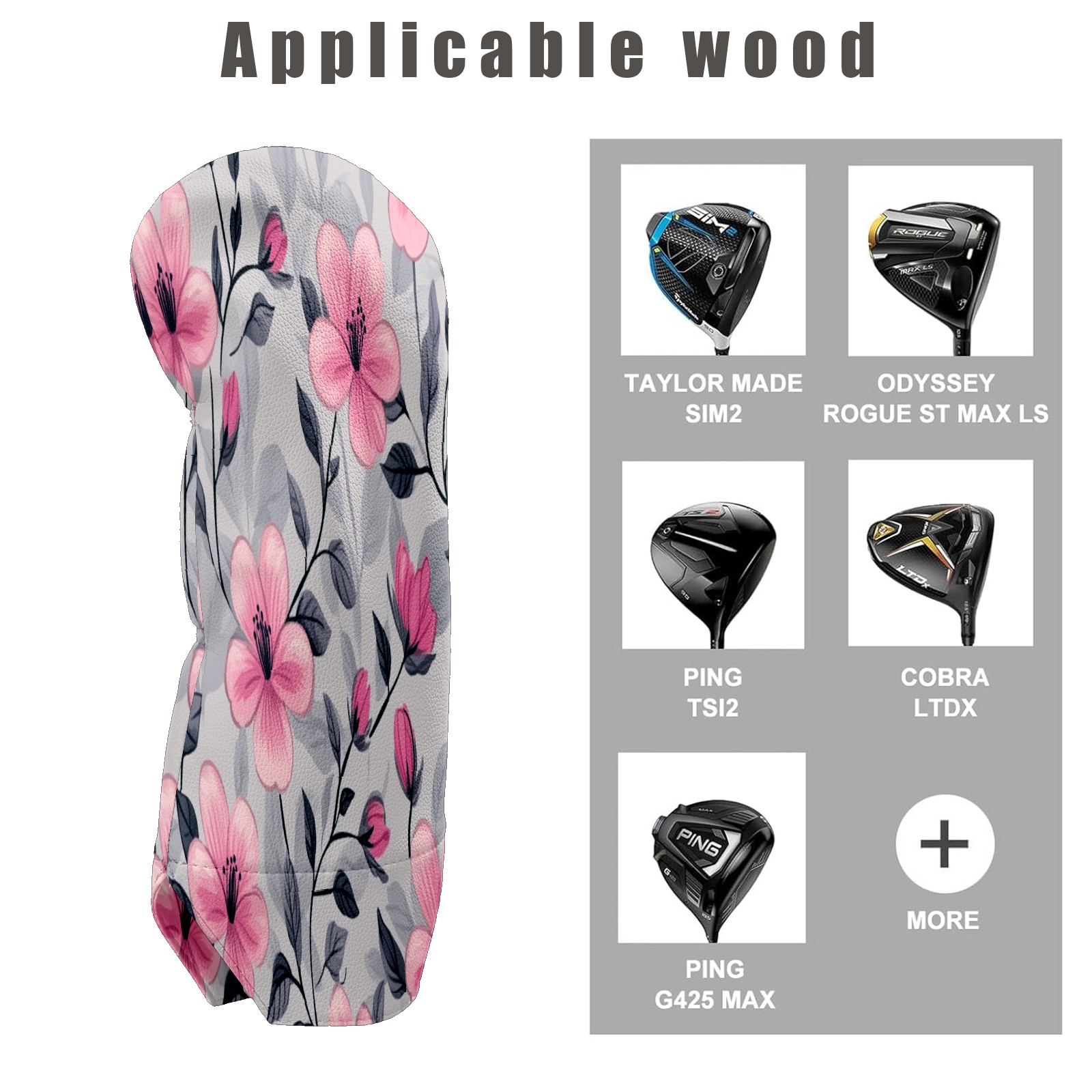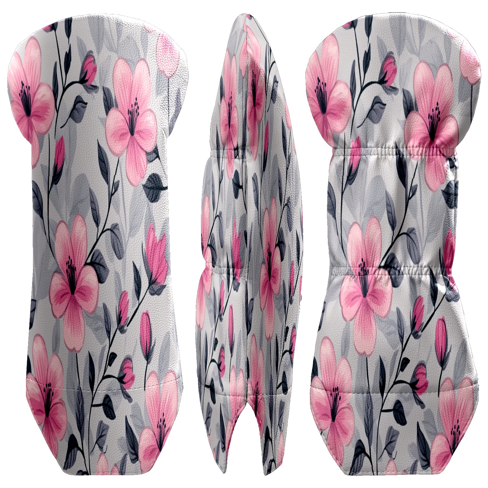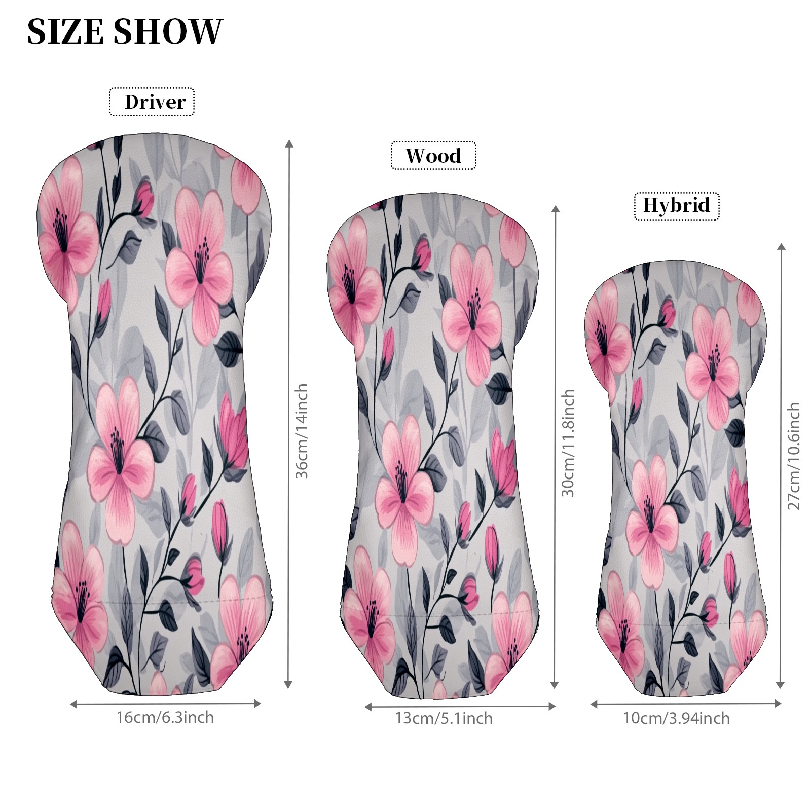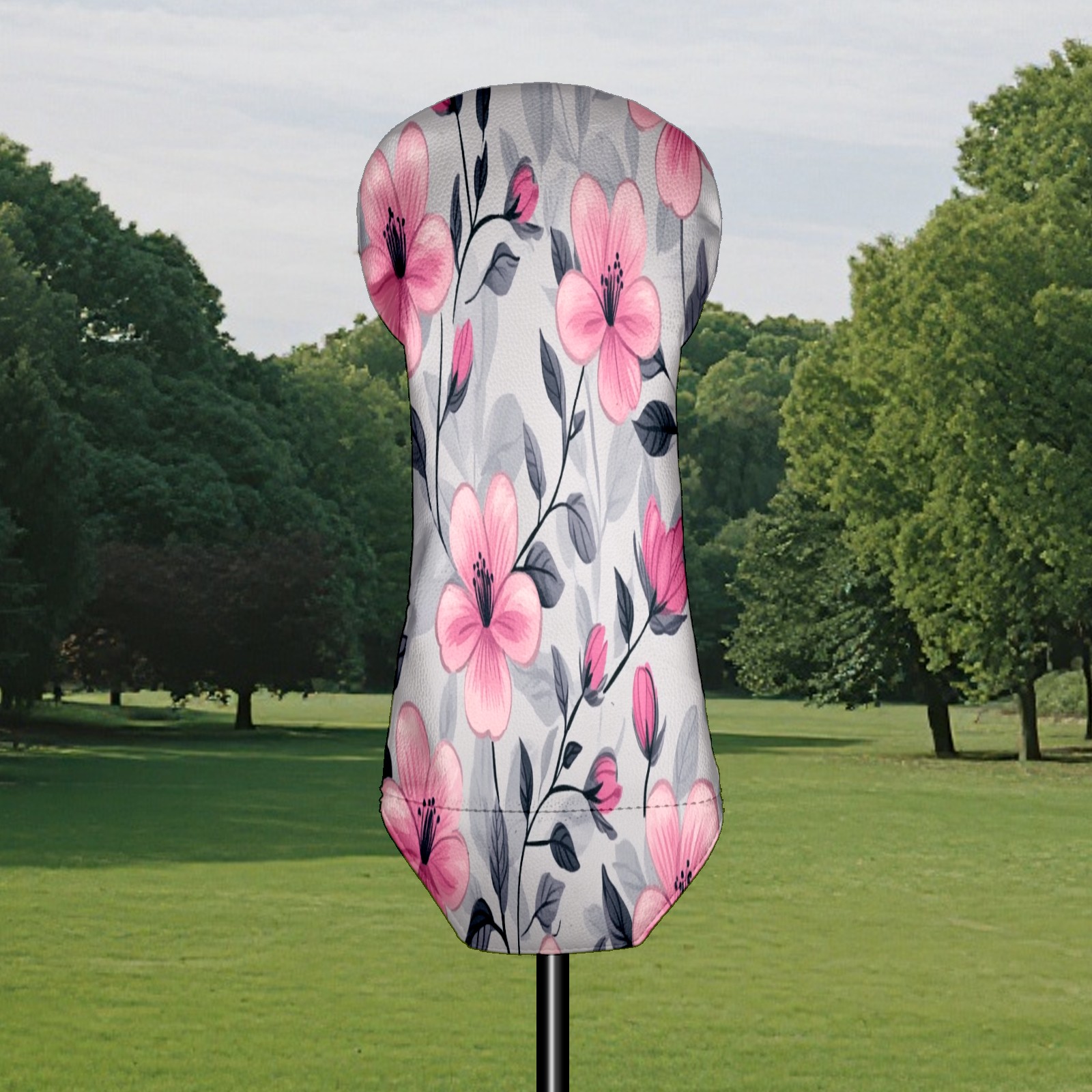 Golf Club Head Covers for Driver Hybrid and Fairway Woods, Waterproof Leather Headcovers for Golf Clubs, Ideal Golf Accessories Gift for Men Women (Pink Flowers And Leaves)
