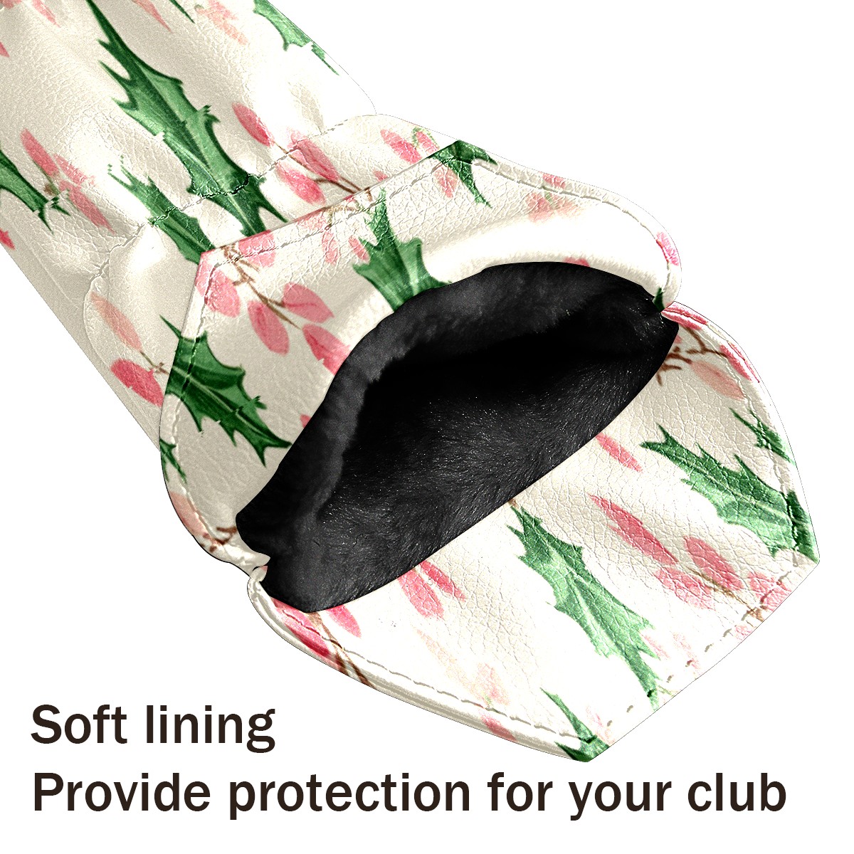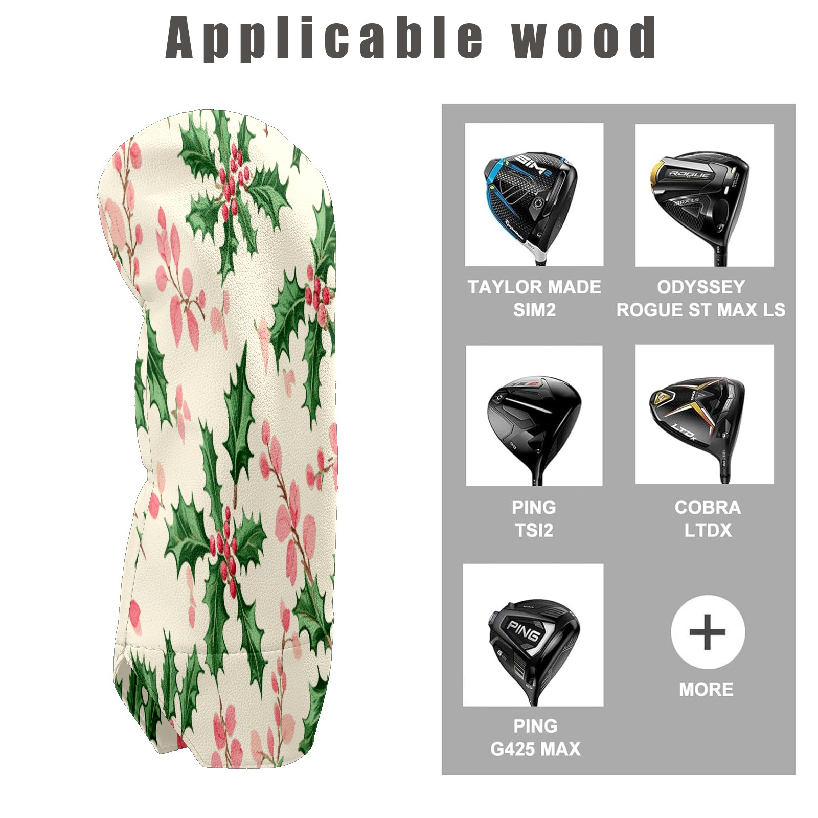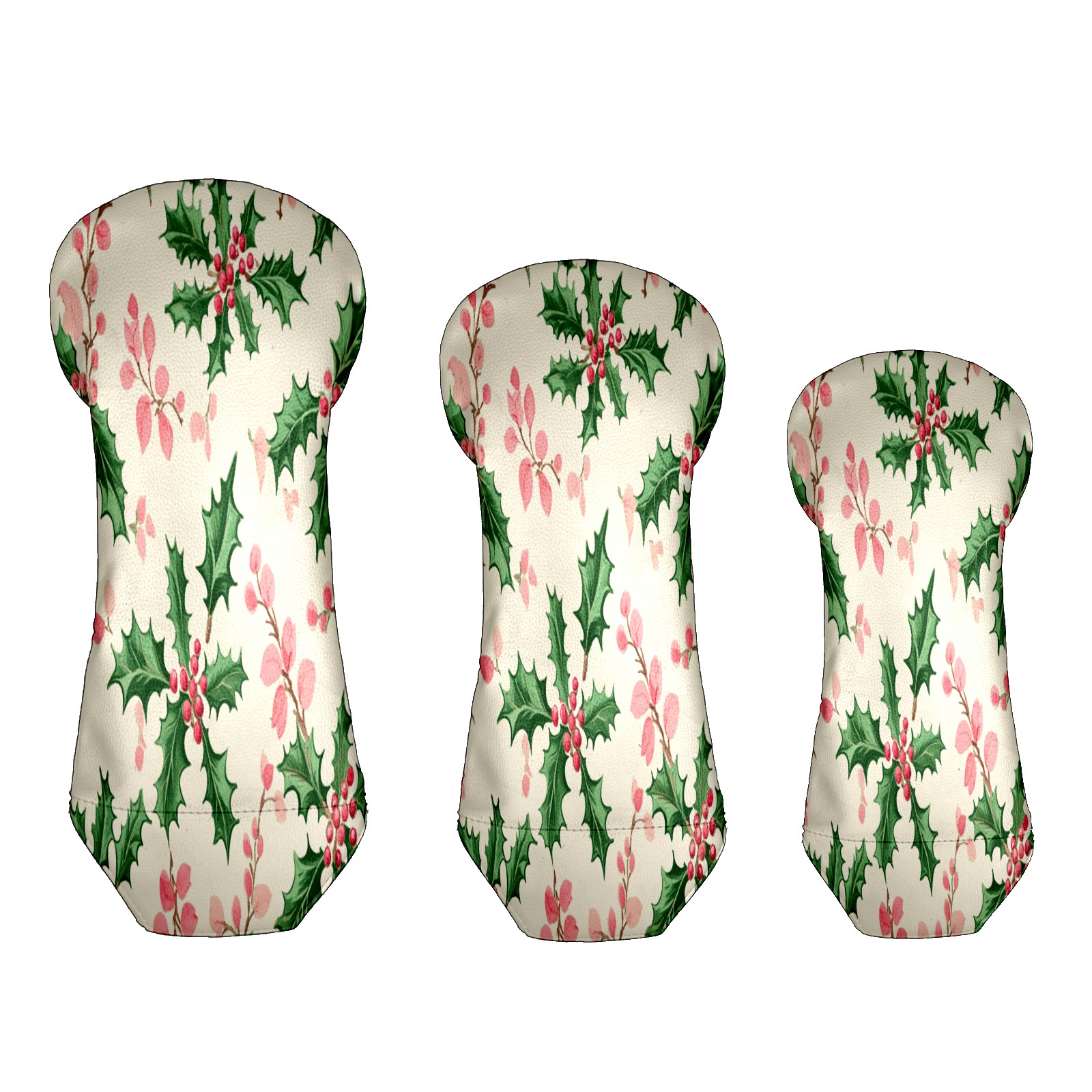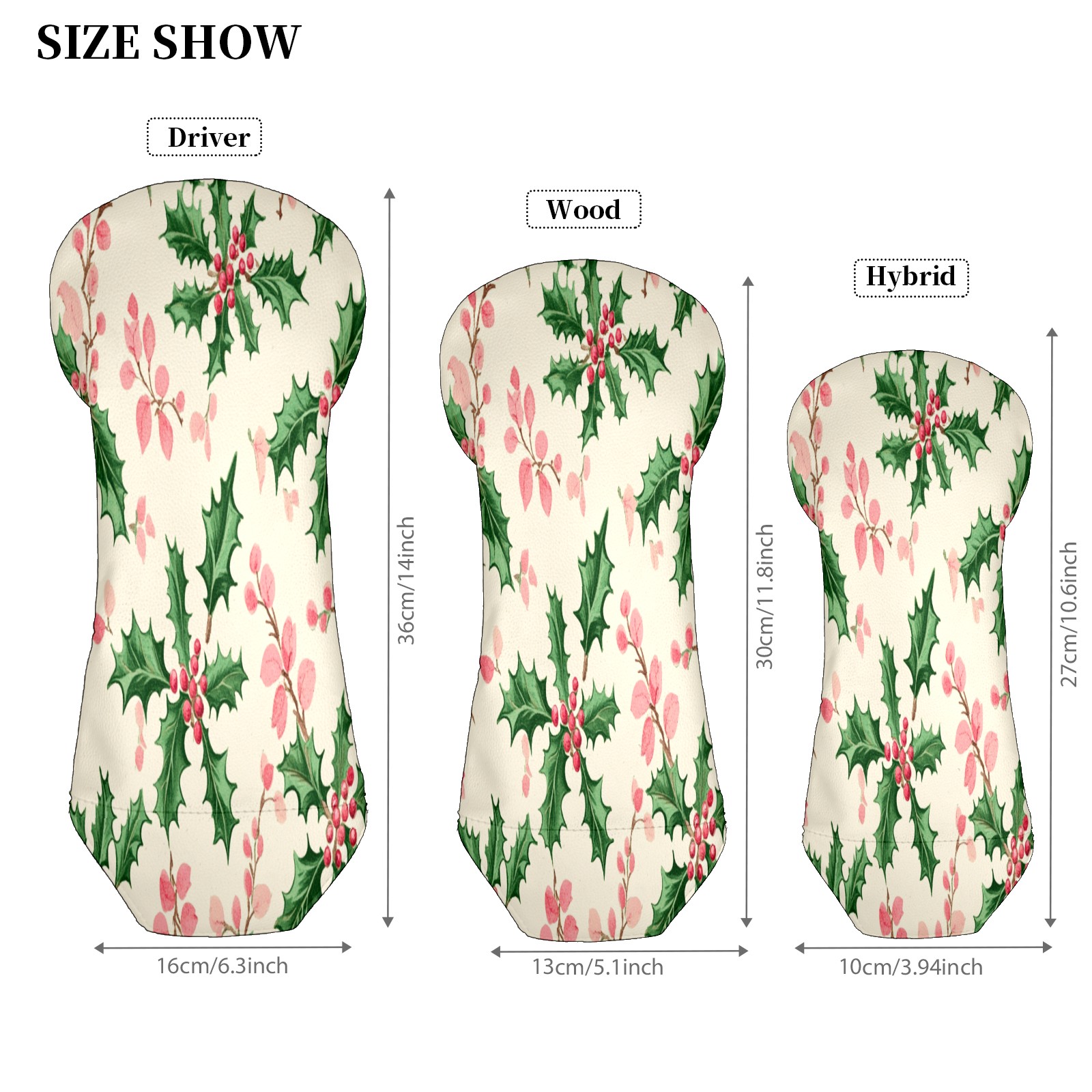 Golf Club Head Covers for Driver Hybrid and Fairway Woods, Waterproof Leather Headcovers for Golf Clubs, Ideal Golf Accessories Gift for Men Women (Holly Leaves)