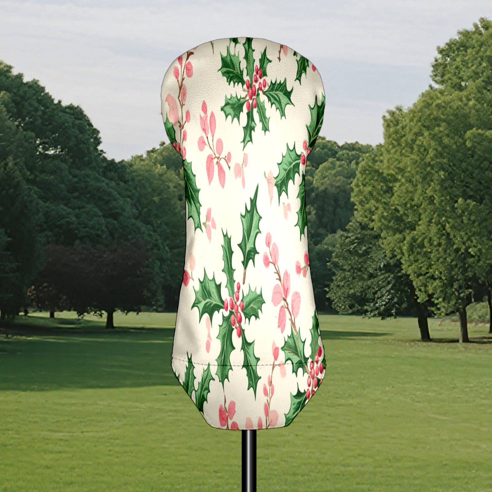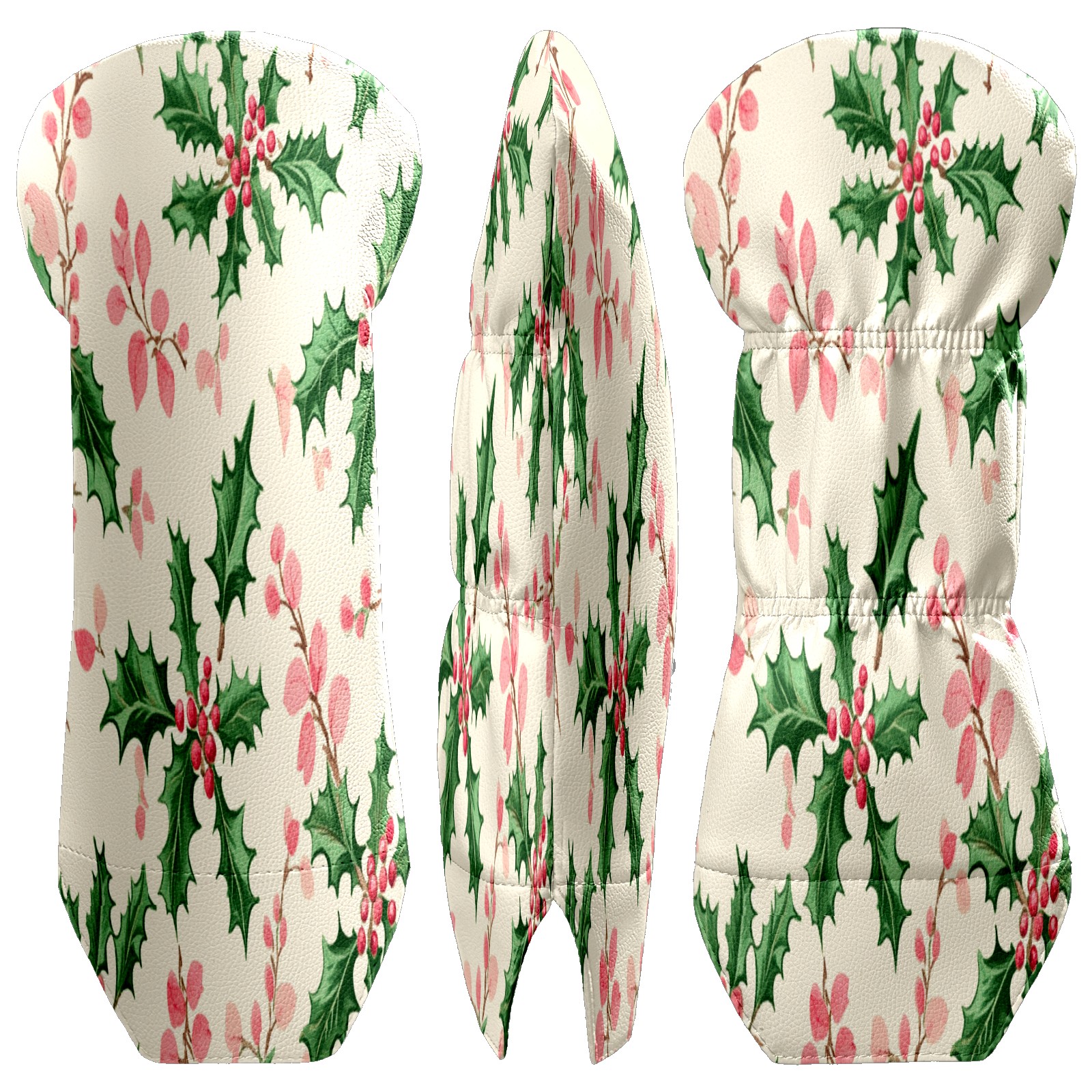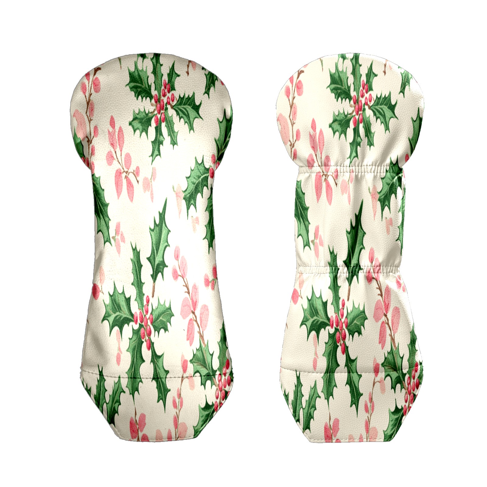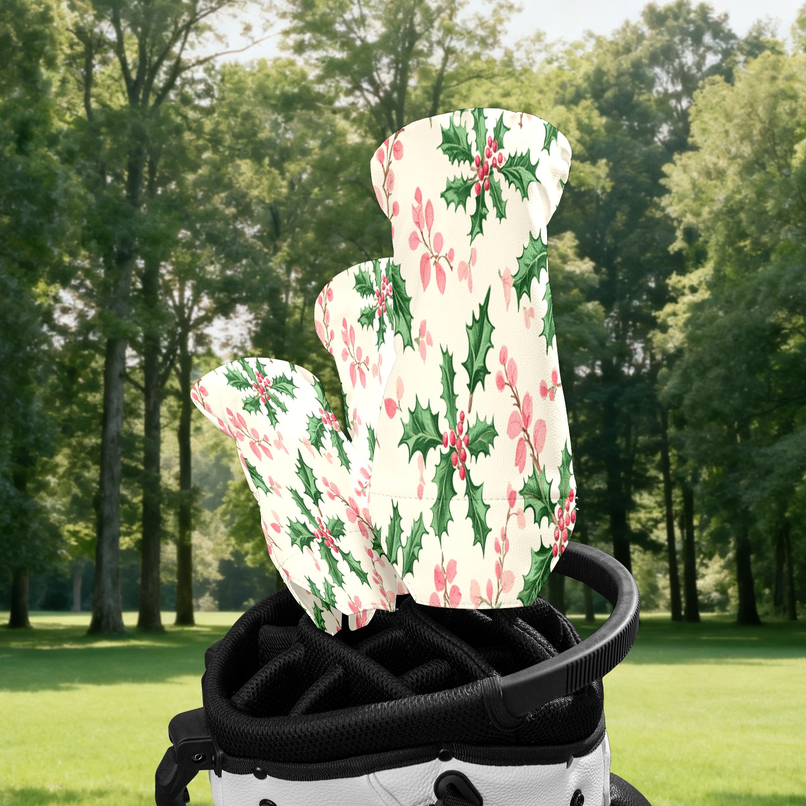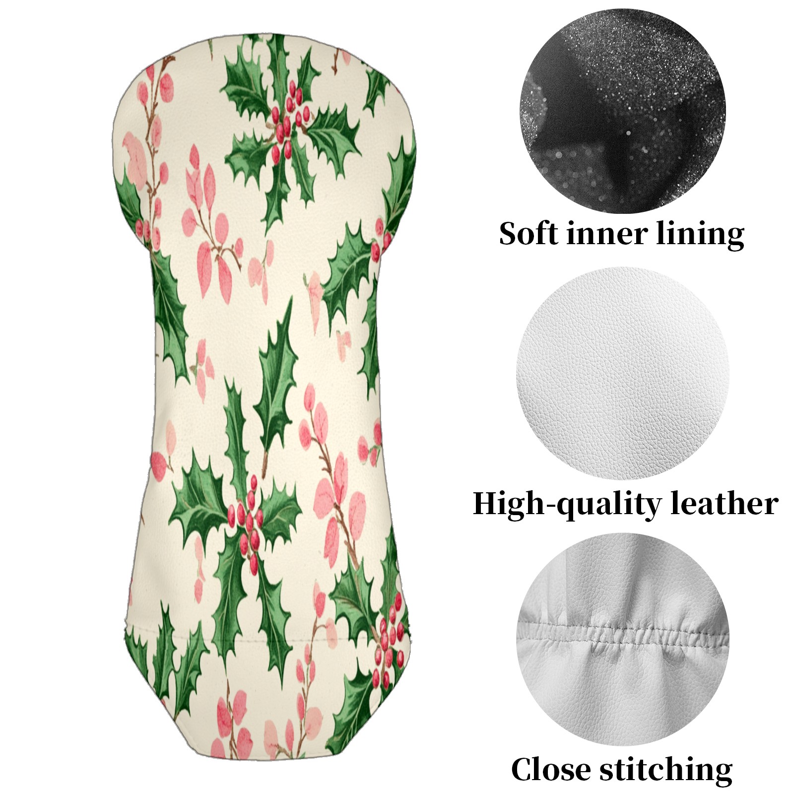 Golf Club Head Covers for Driver Hybrid and Fairway Woods, Waterproof Leather Headcovers for Golf Clubs, Ideal Golf Accessories Gift for Men Women (Holly Leaves)