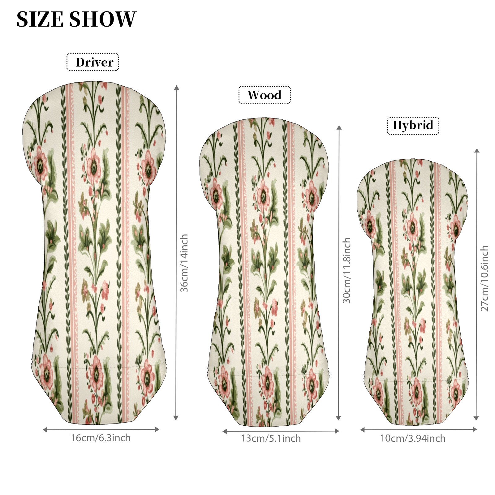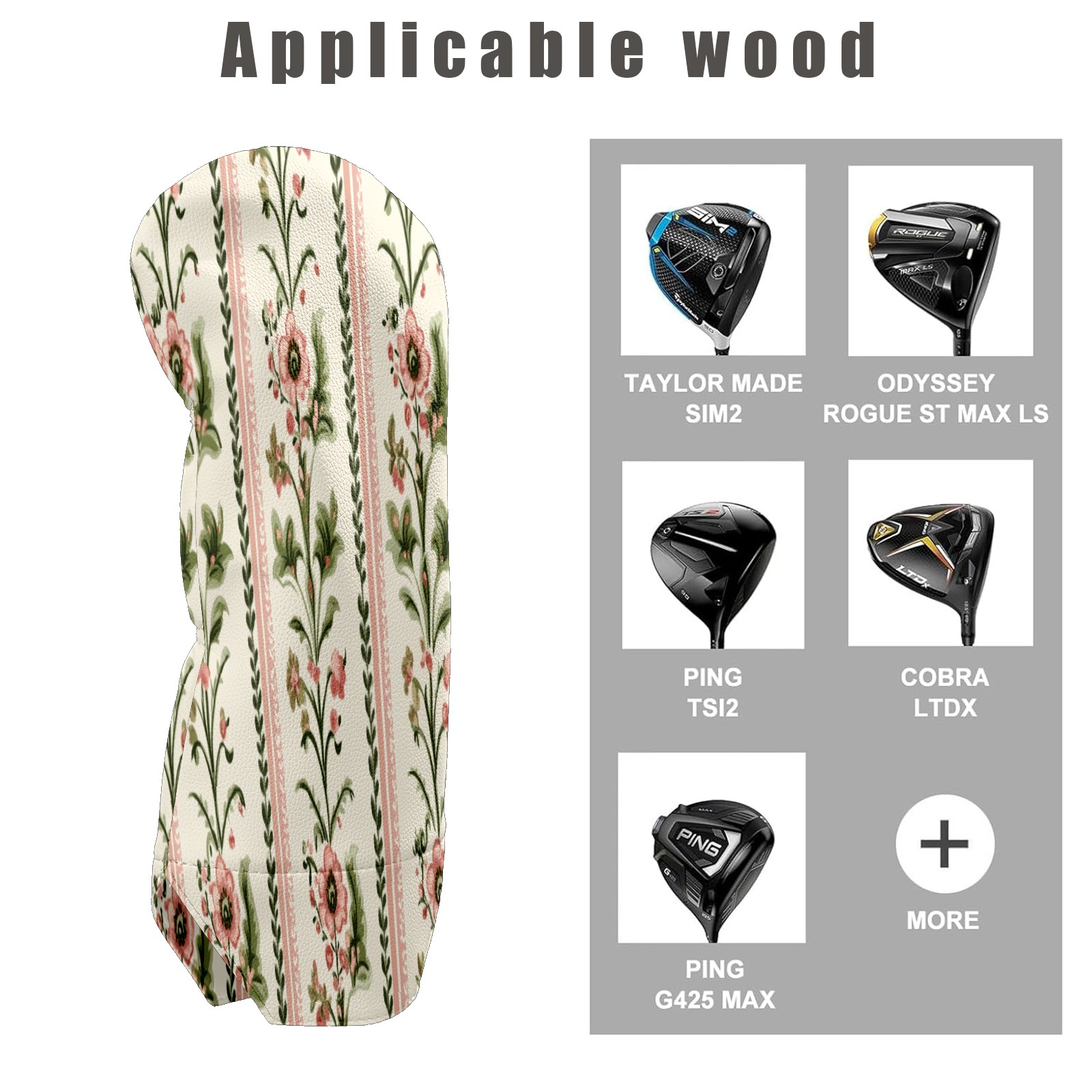 Golf Club Head Covers for Driver Hybrid and Fairway Woods, Waterproof Leather Headcovers for Golf Clubs, Ideal Golf Accessories Gift for Men Women (Pink And Green Flowers)