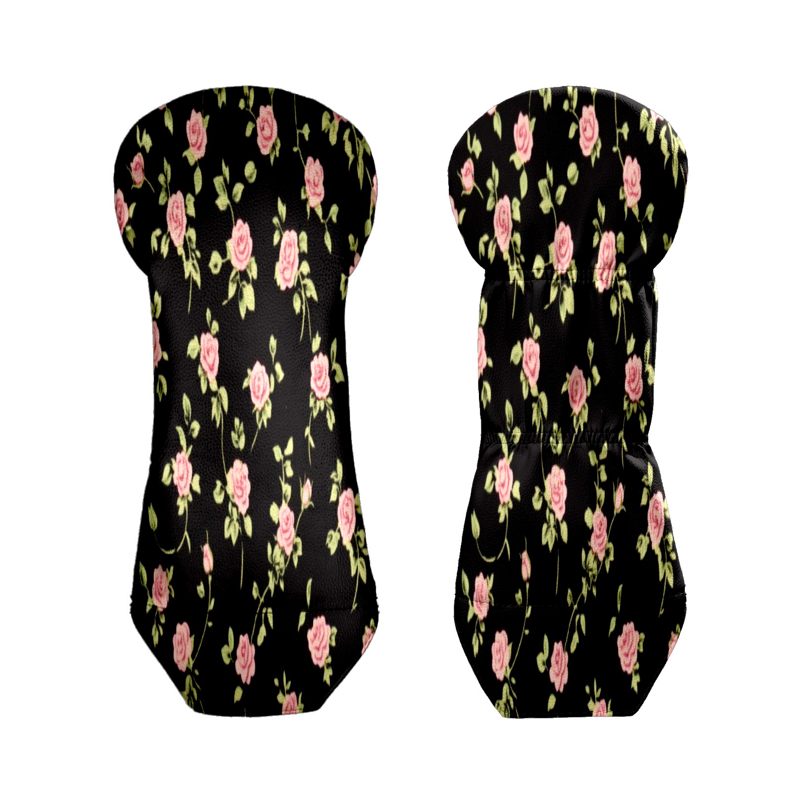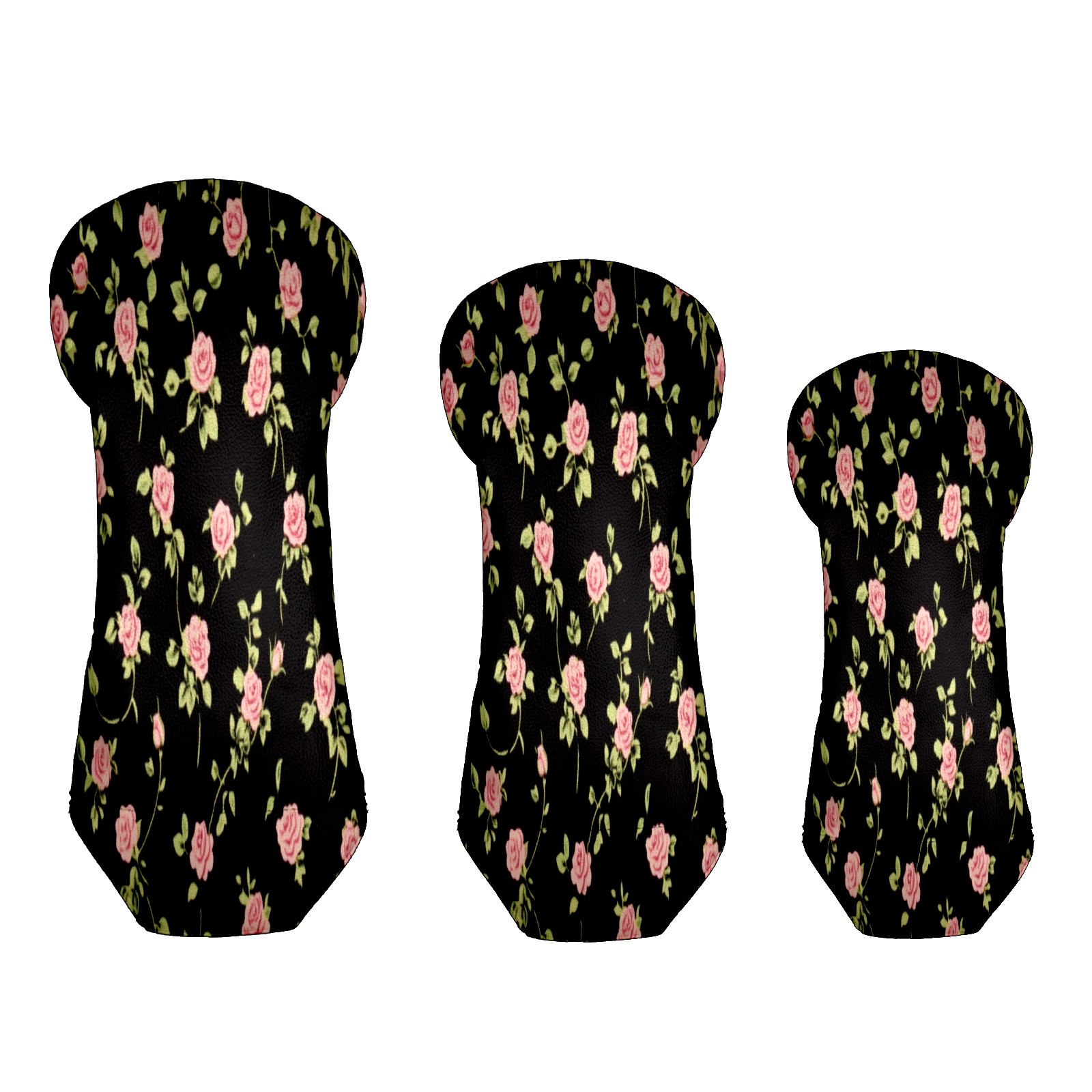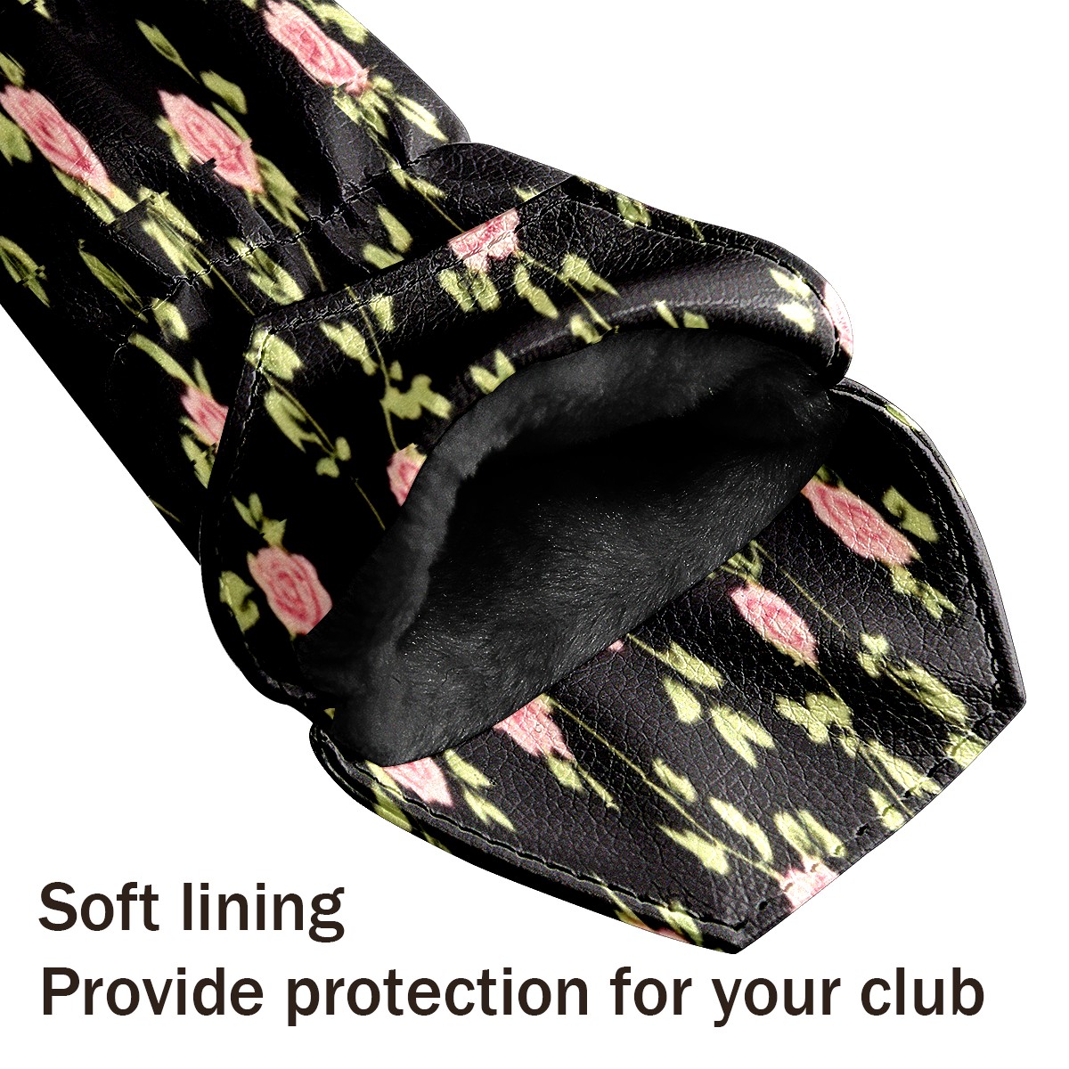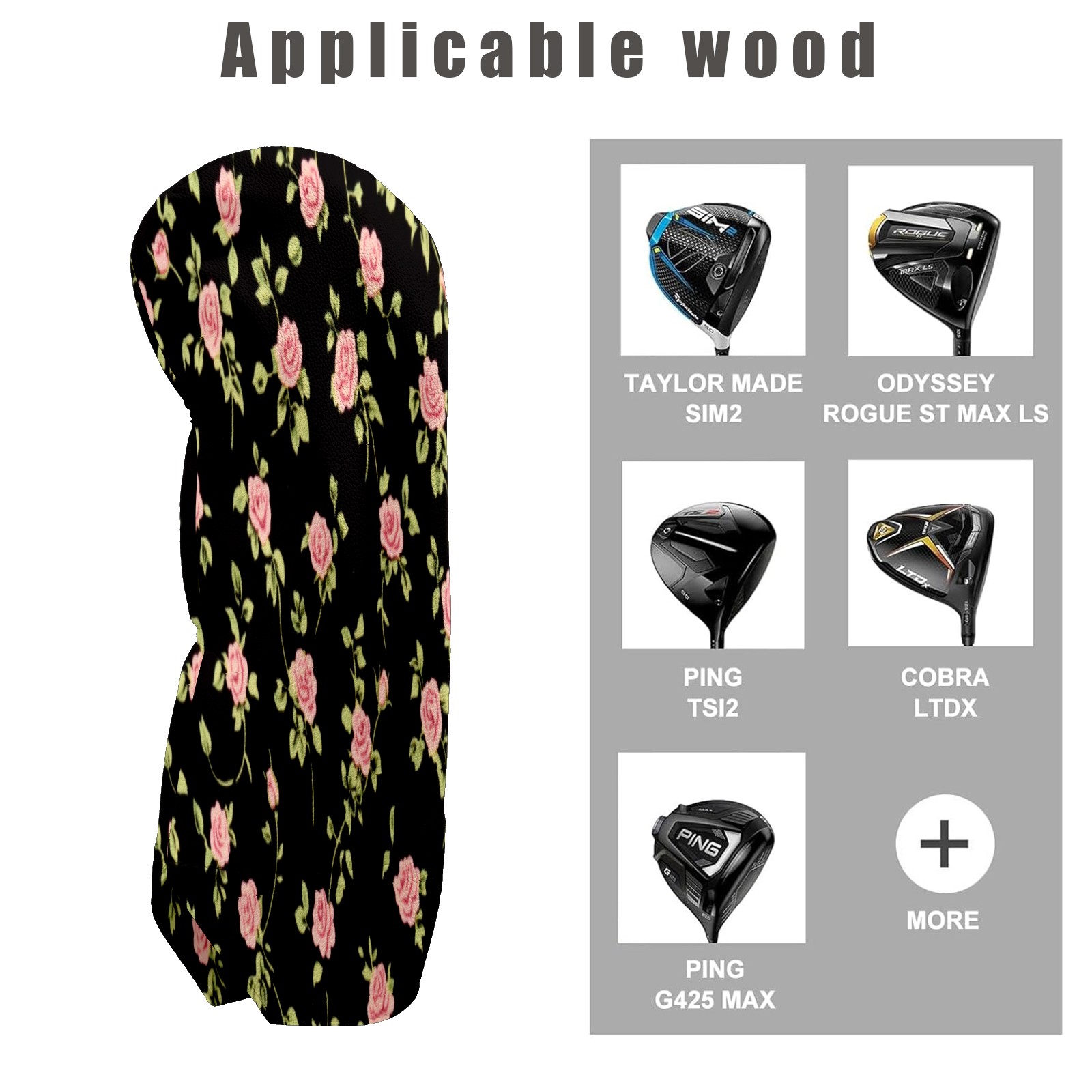 Golf Club Head Covers for Driver Hybrid and Fairway Woods, Waterproof Leather Headcovers for Golf Clubs, Ideal Golf Accessories Gift for Men Women (Black Pink Roses)