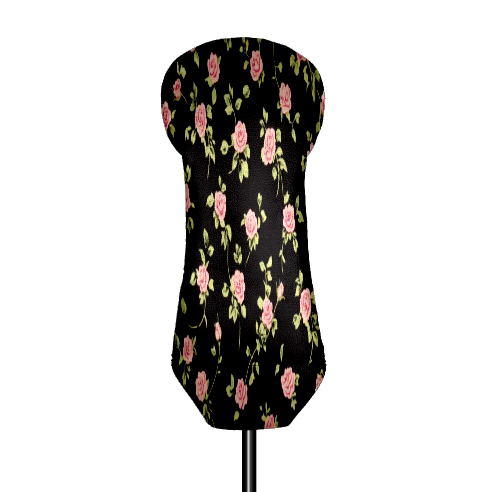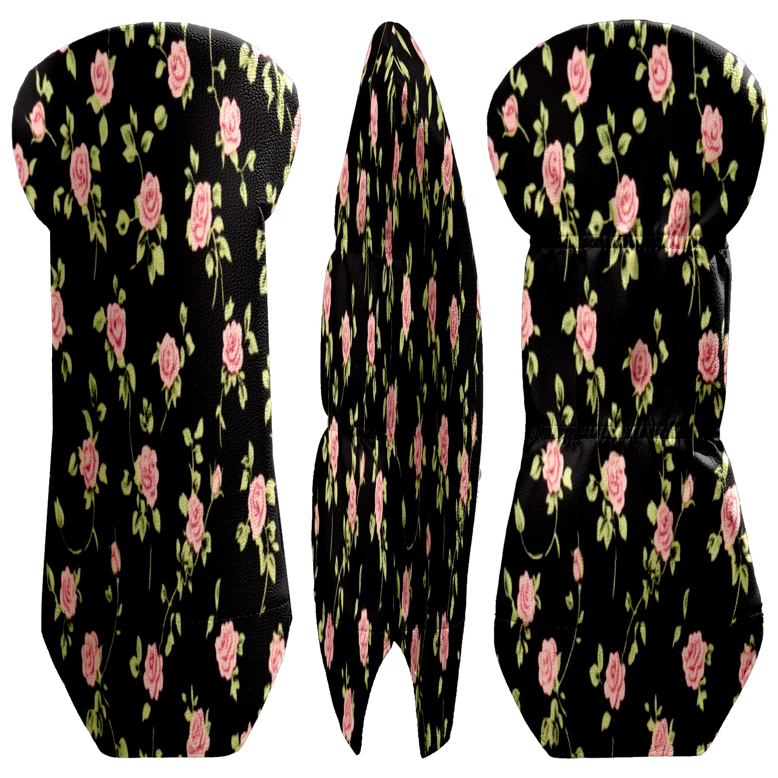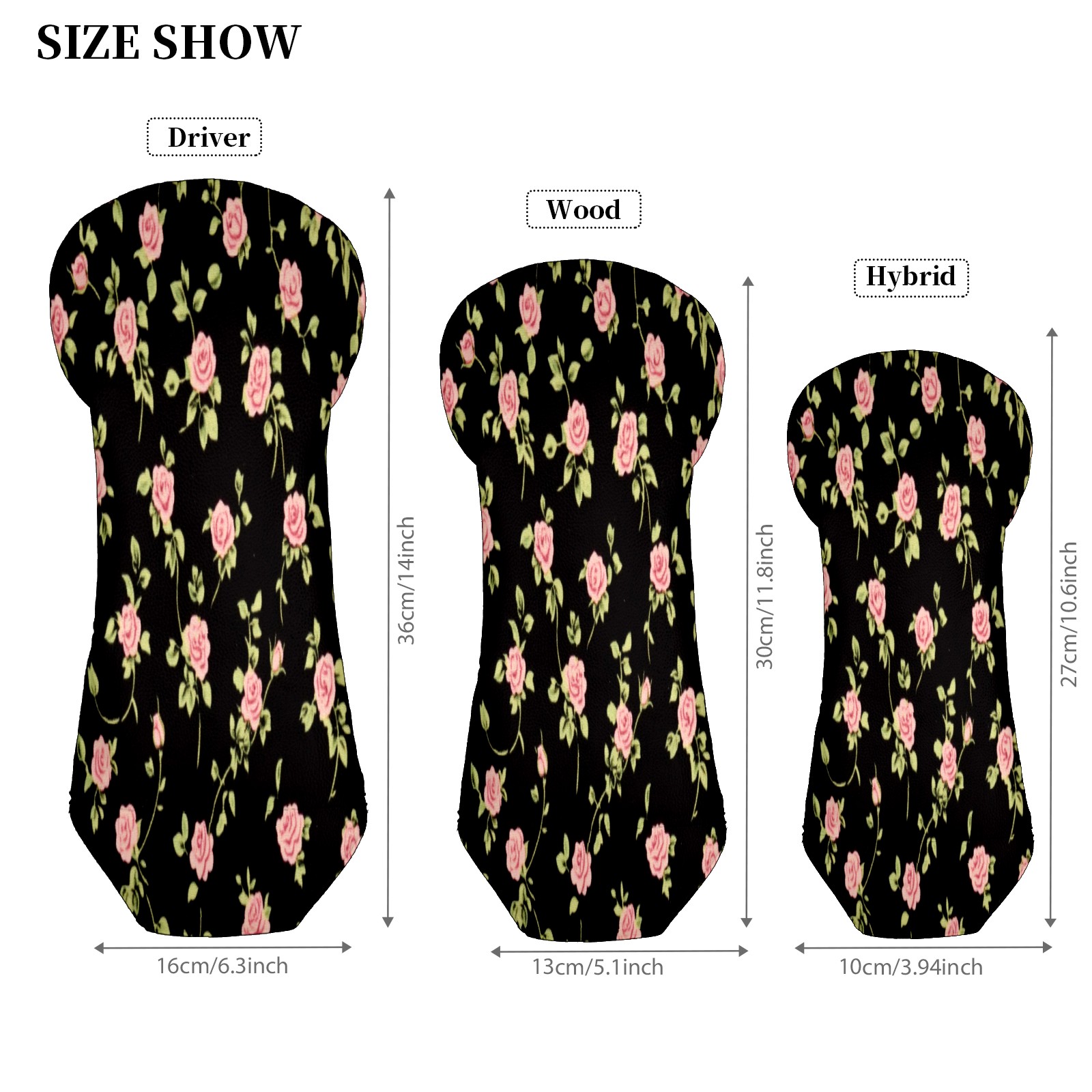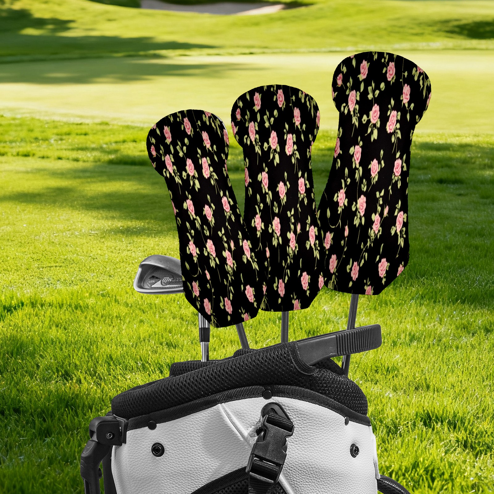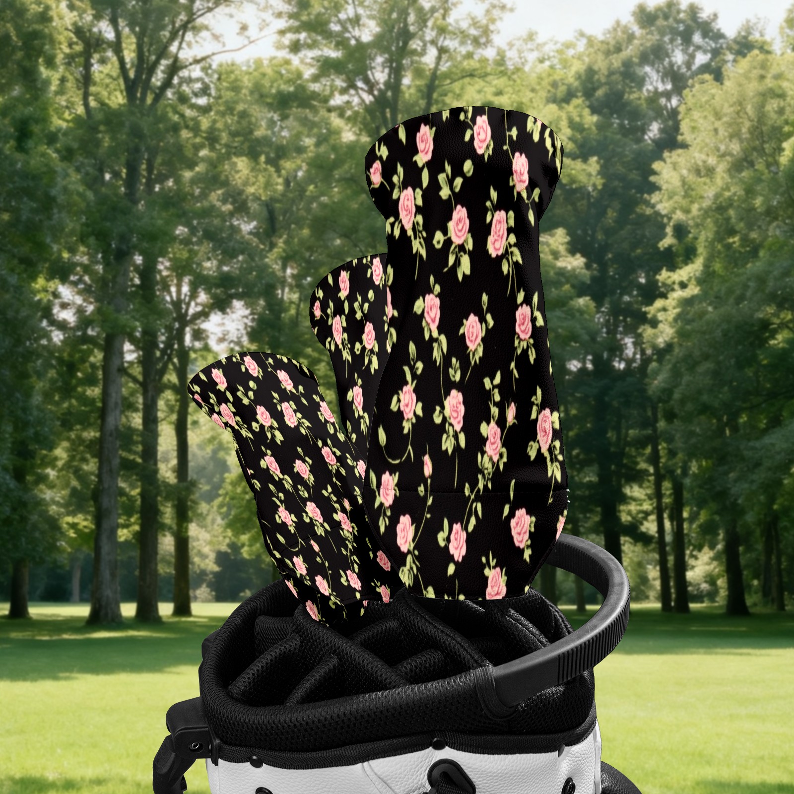 Golf Club Head Covers for Driver Hybrid and Fairway Woods, Waterproof Leather Headcovers for Golf Clubs, Ideal Golf Accessories Gift for Men Women (Black Pink Roses)