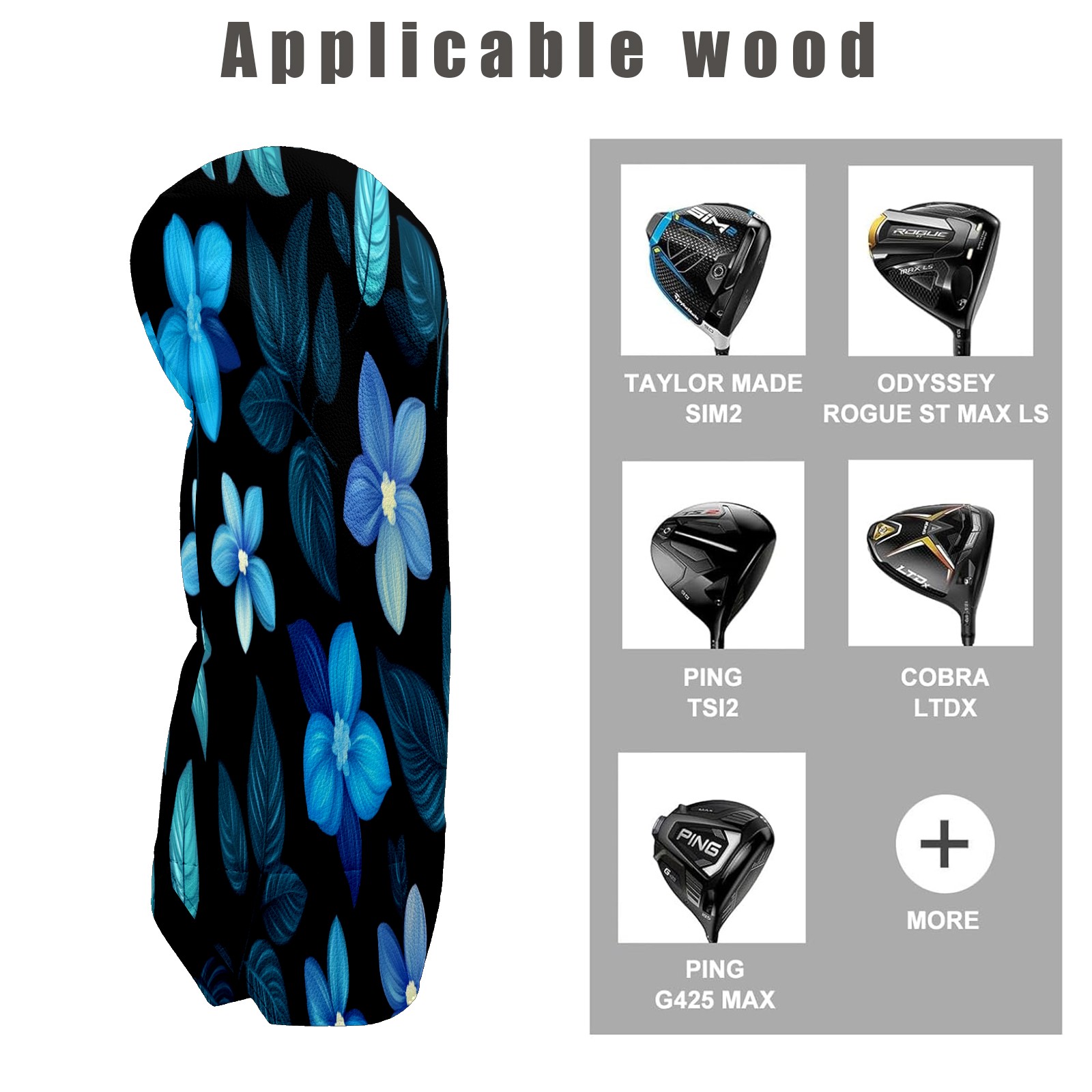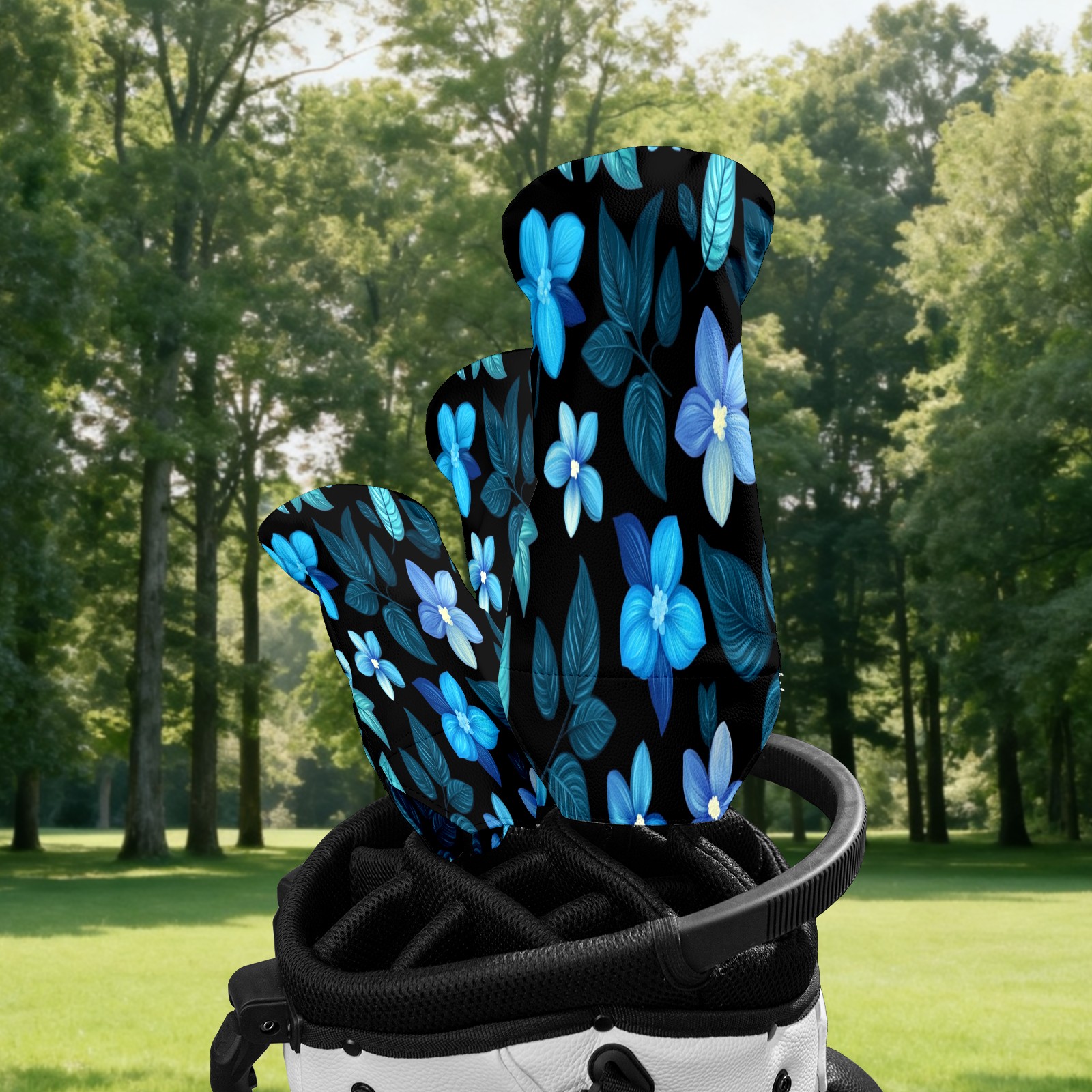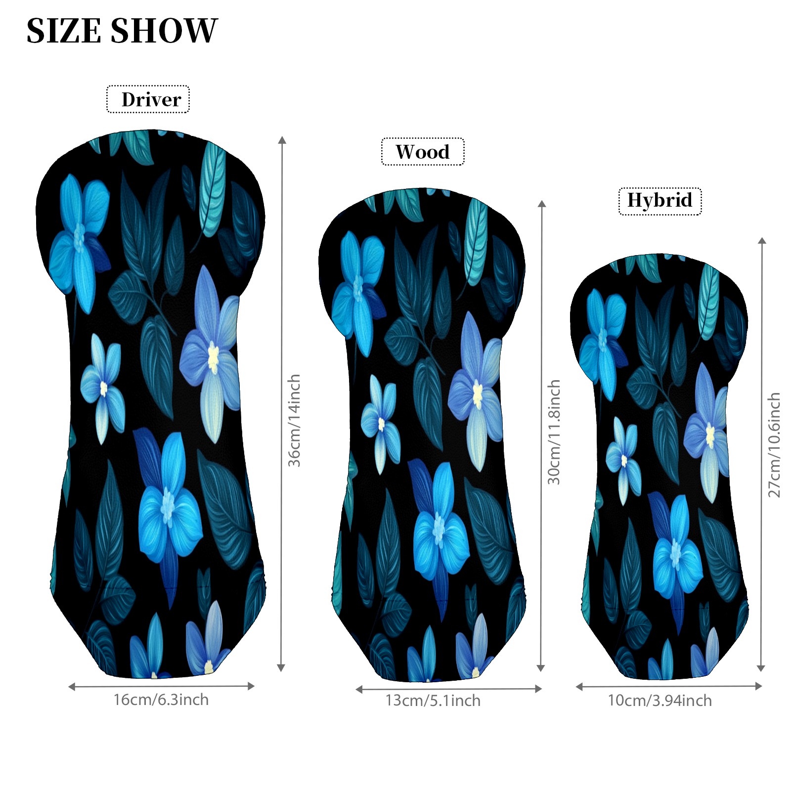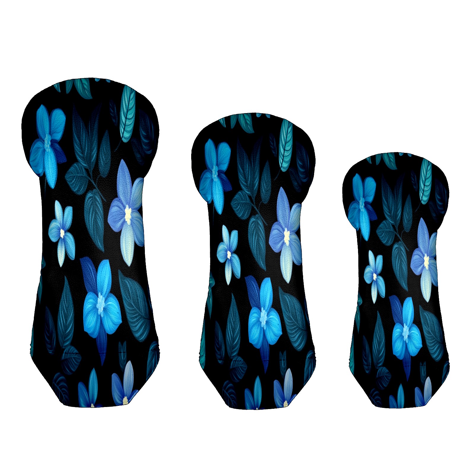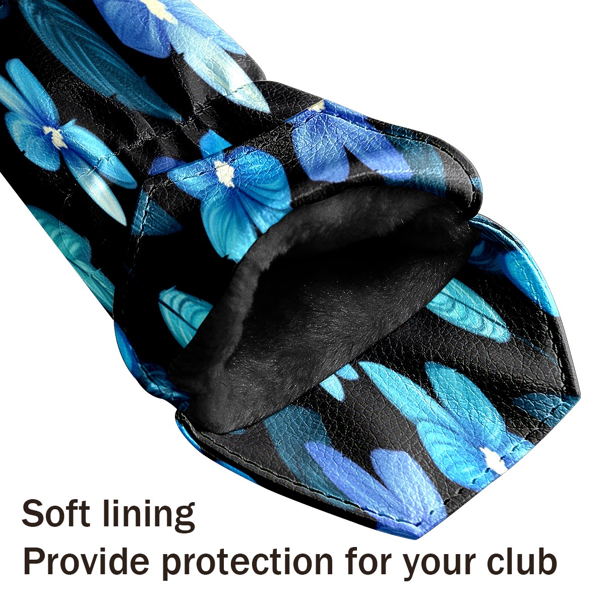 Golf Club Head Covers for Driver Hybrid and Fairway Woods, Waterproof Leather Headcovers for Golf Clubs, Ideal Golf Accessories Gift for Men Women (Blue And Teal Flowers)