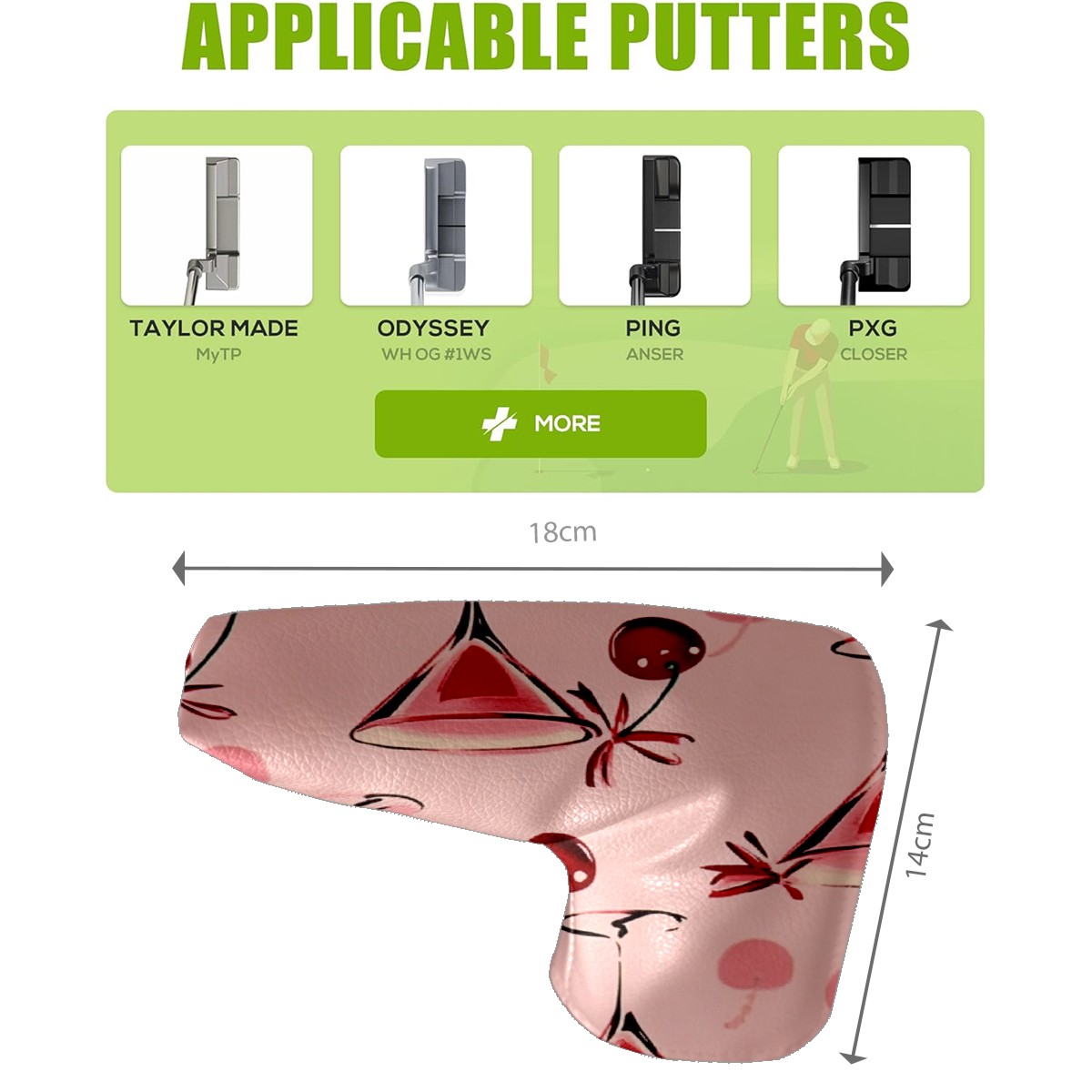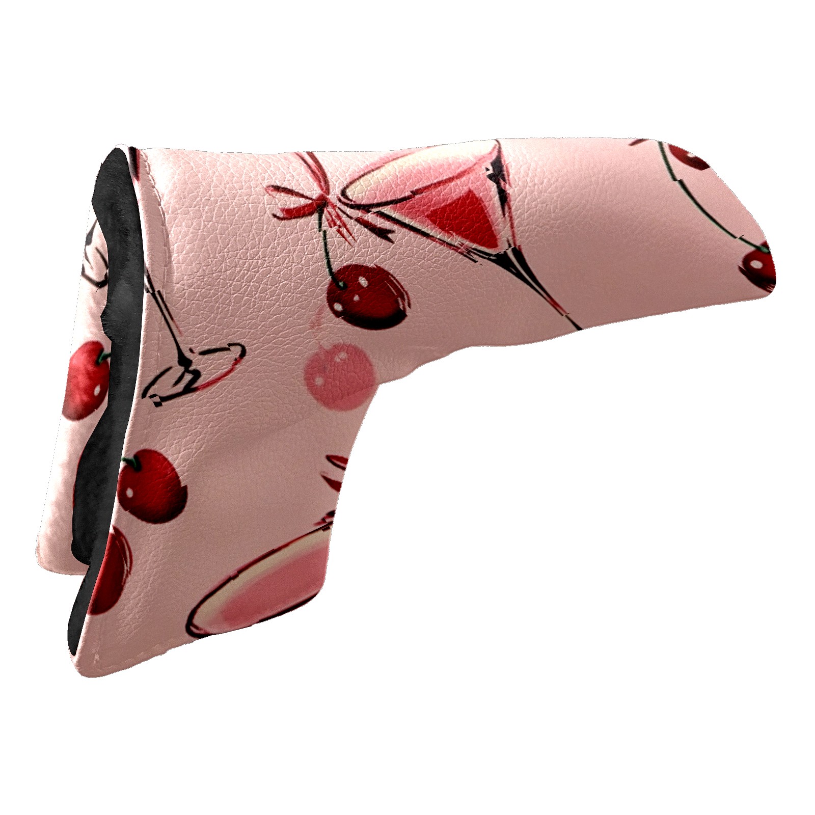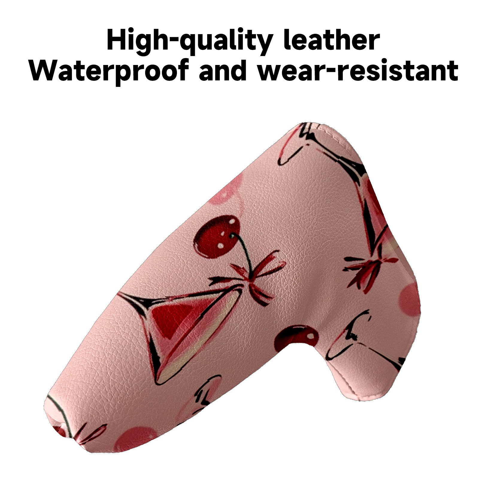 Golf Club Head Covers for Blade Putter, Waterproof Leather Headcovers for Golf Clubs, Ideal Golf Accessories Gift for Men Women (Red Cherries And Glasses)