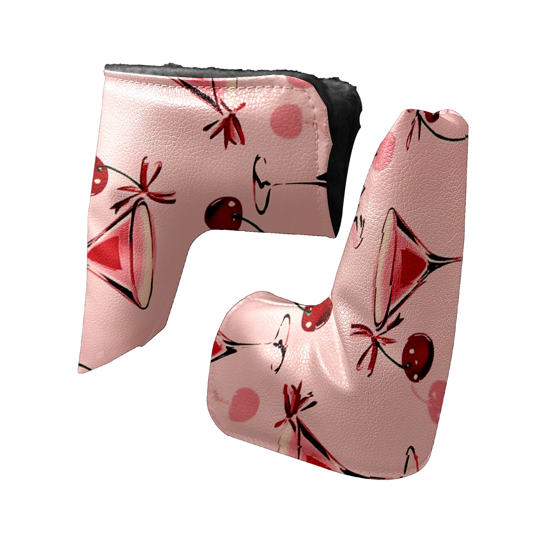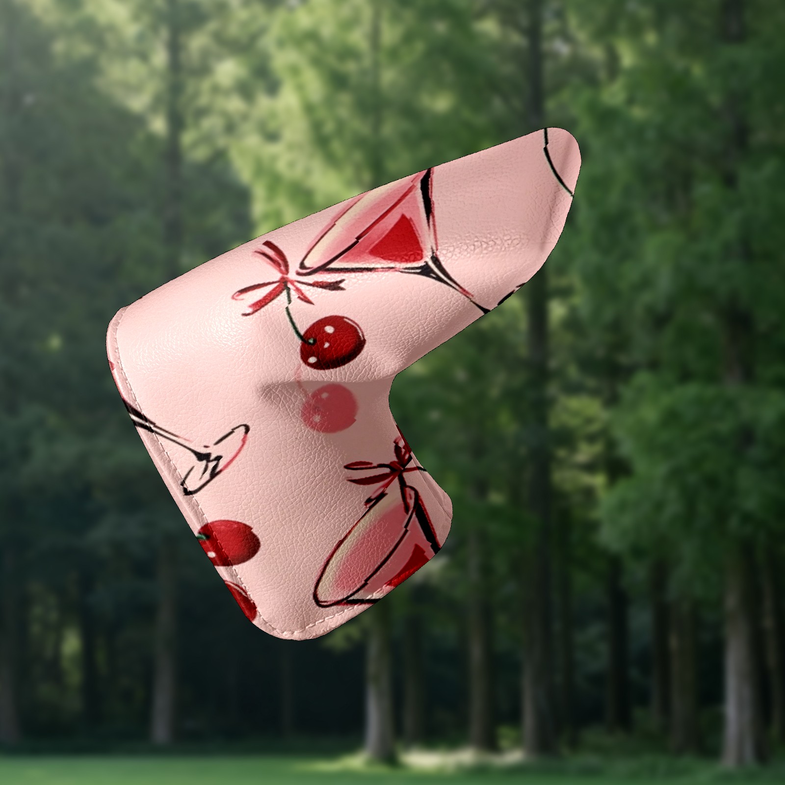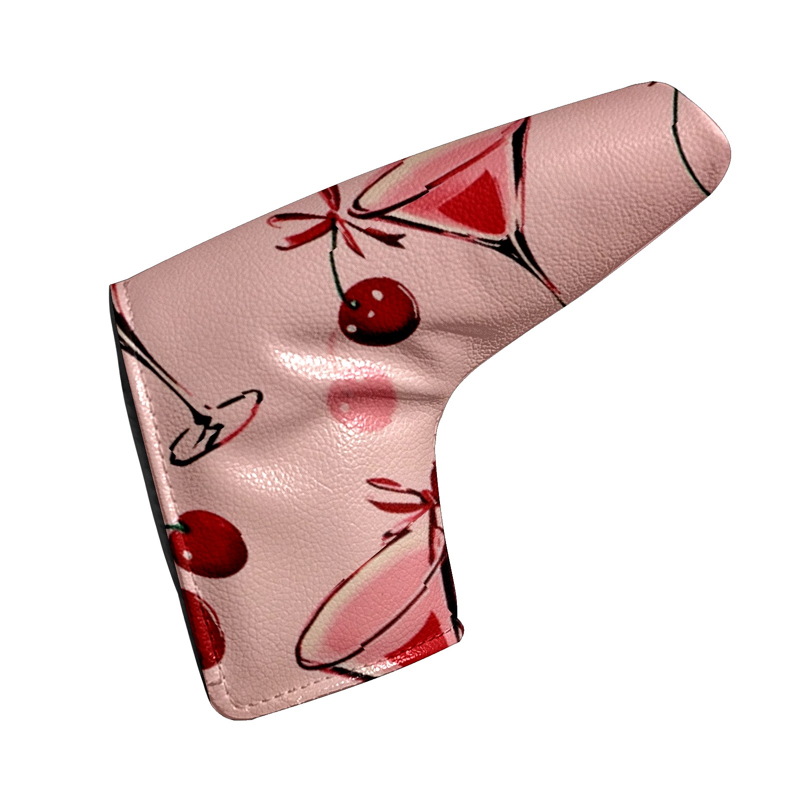 Golf Club Head Covers for Blade Putter, Waterproof Leather Headcovers for Golf Clubs, Ideal Golf Accessories Gift for Men Women (Red Cherries And Glasses)