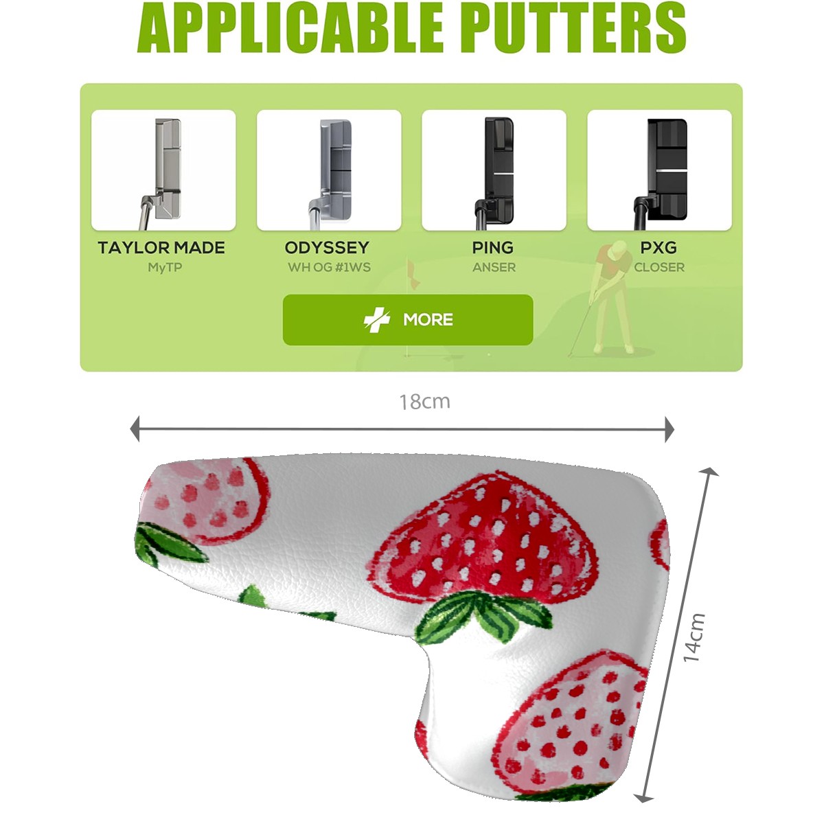 Golf Club Head Covers for Blade Putter, Waterproof Leather Headcovers for Golf Clubs, Ideal Golf Accessories Gift for Men Women (Strawberry Hearts)