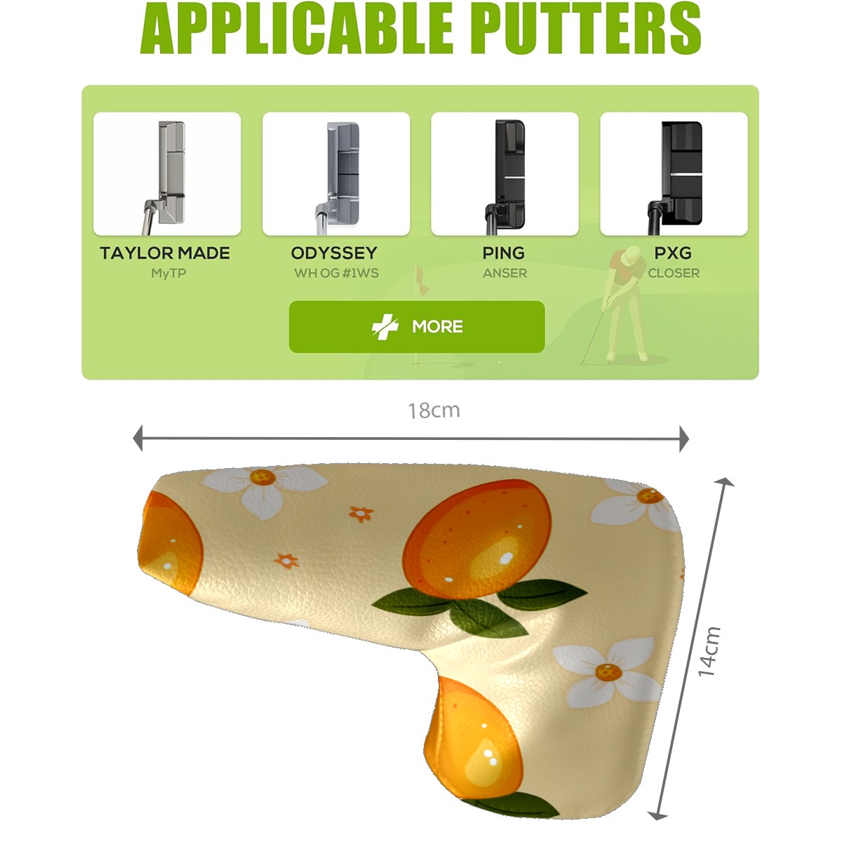 Golf Club Head Covers for Blade Putter, Waterproof Leather Headcovers for Golf Clubs, Ideal Golf Accessories Gift for Men Women (Mango)