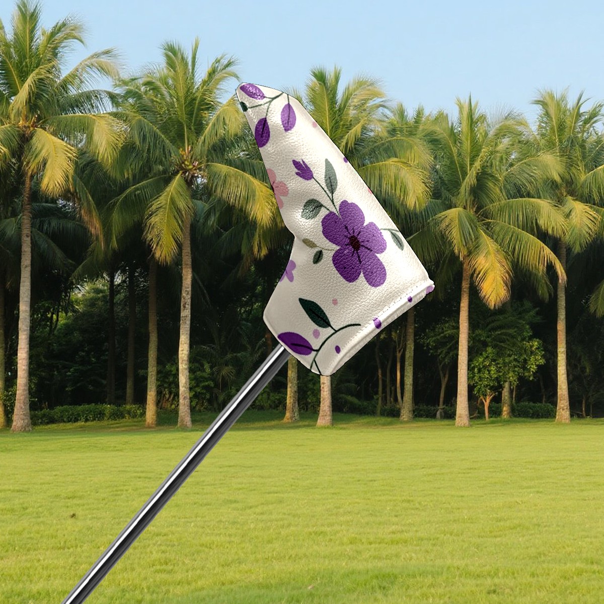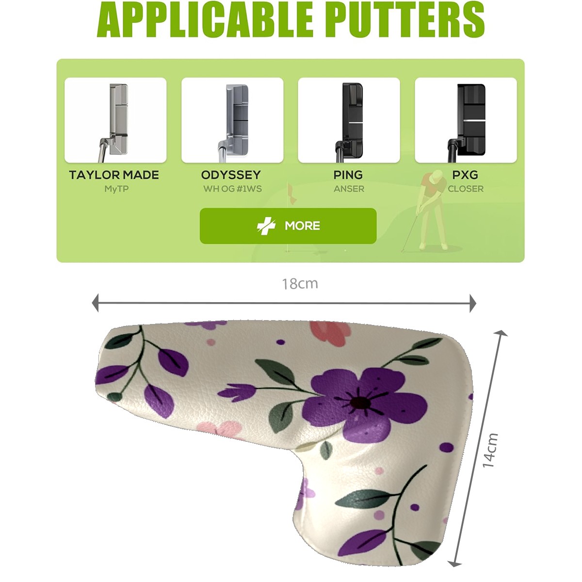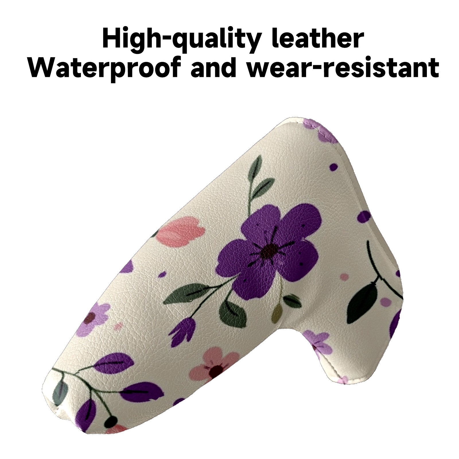 Golf Club Head Covers for Blade Putter, Waterproof Leather Headcovers for Golf Clubs, Ideal Golf Accessories Gift for Men Women (Purple And Pink Flowers)