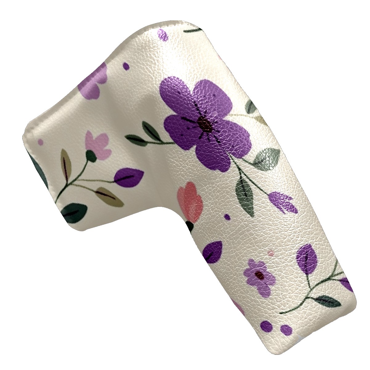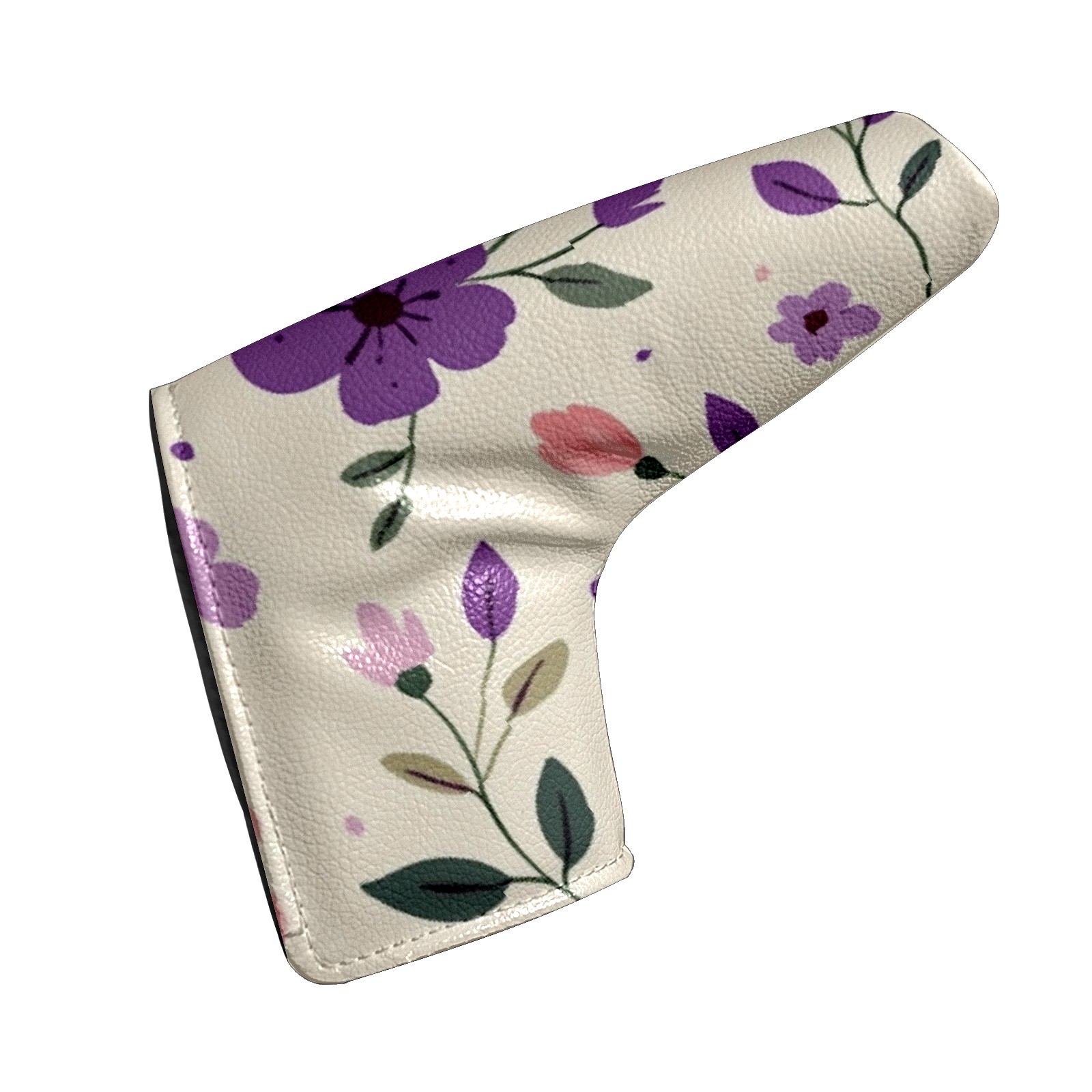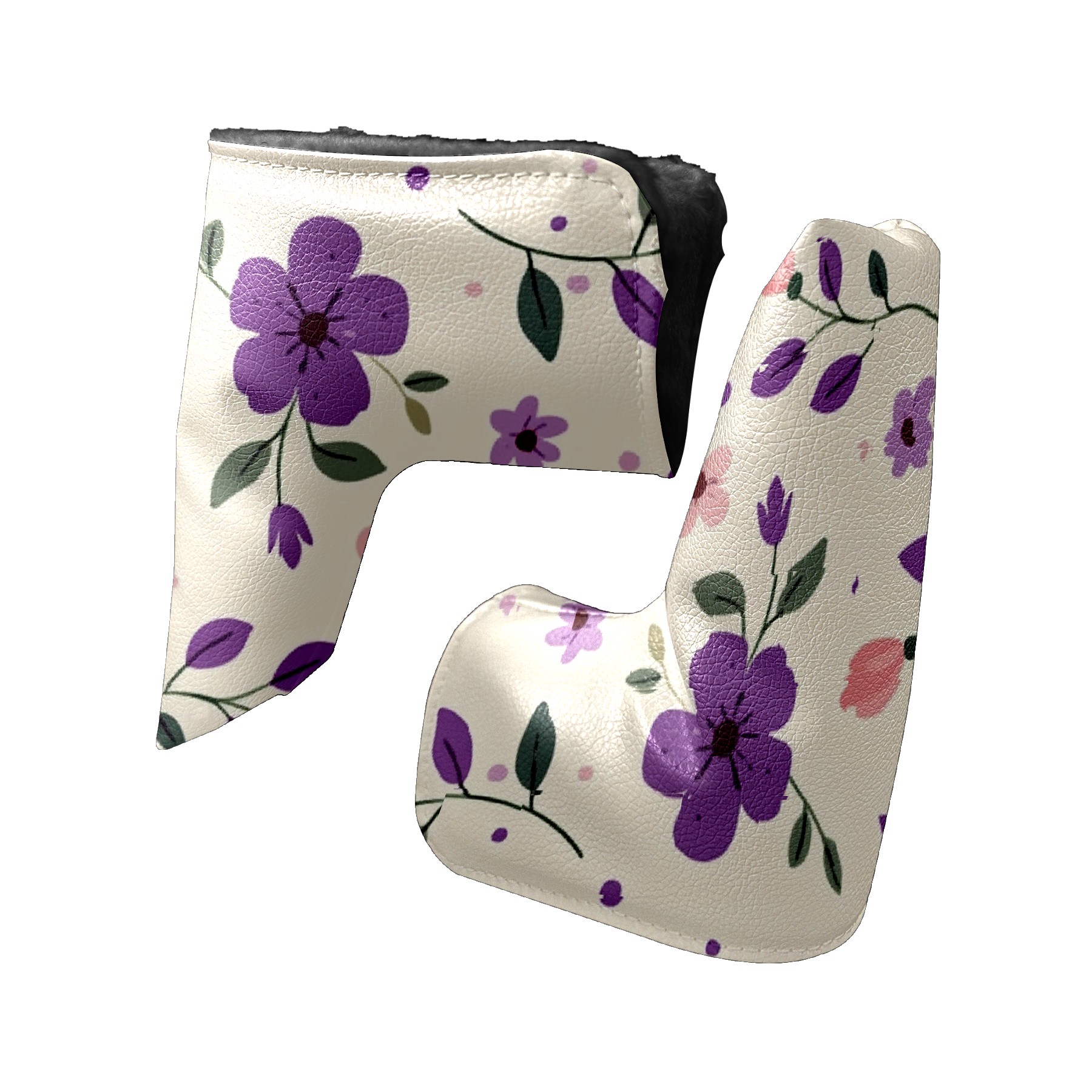 Golf Club Head Covers for Blade Putter, Waterproof Leather Headcovers for Golf Clubs, Ideal Golf Accessories Gift for Men Women (Purple And Pink Flowers)