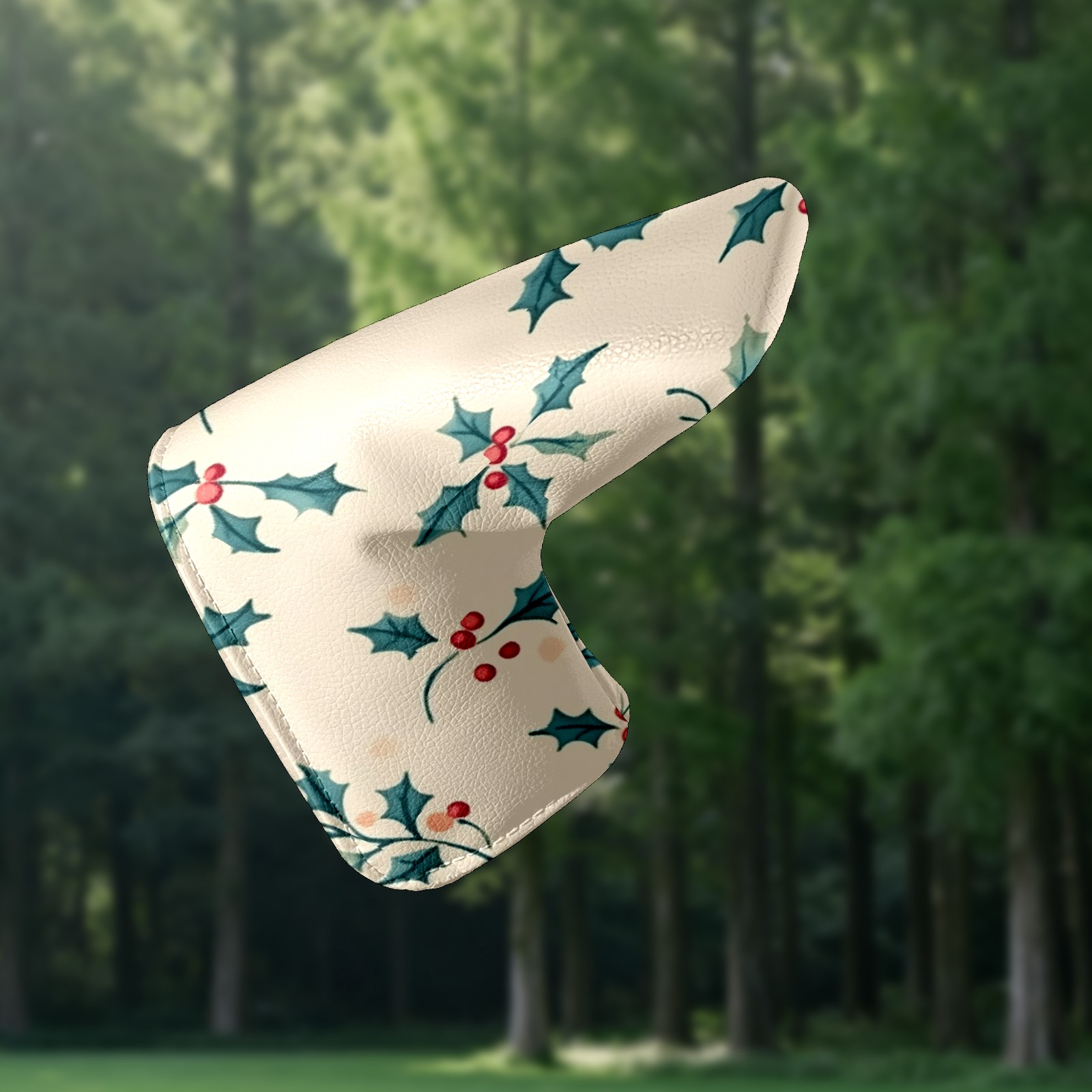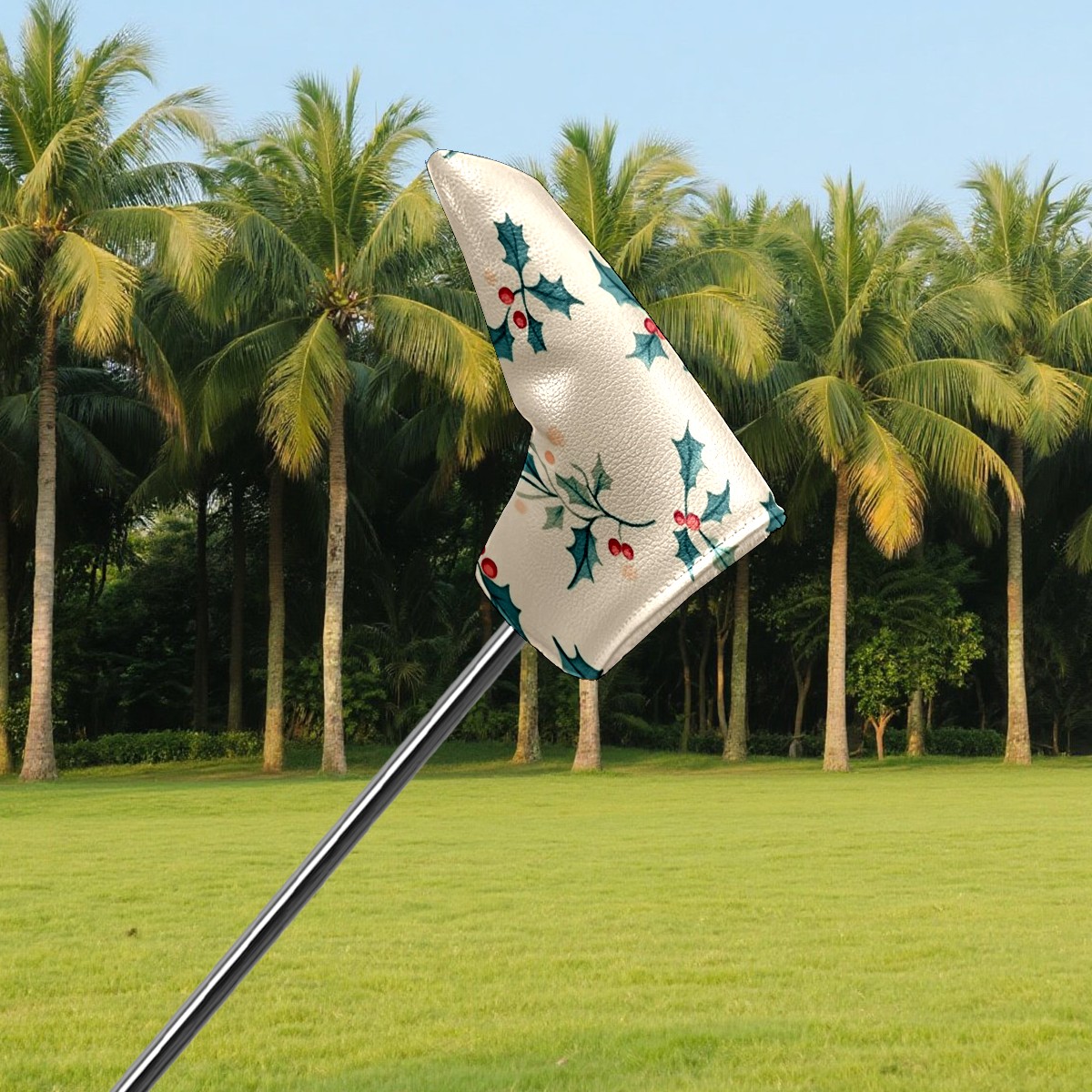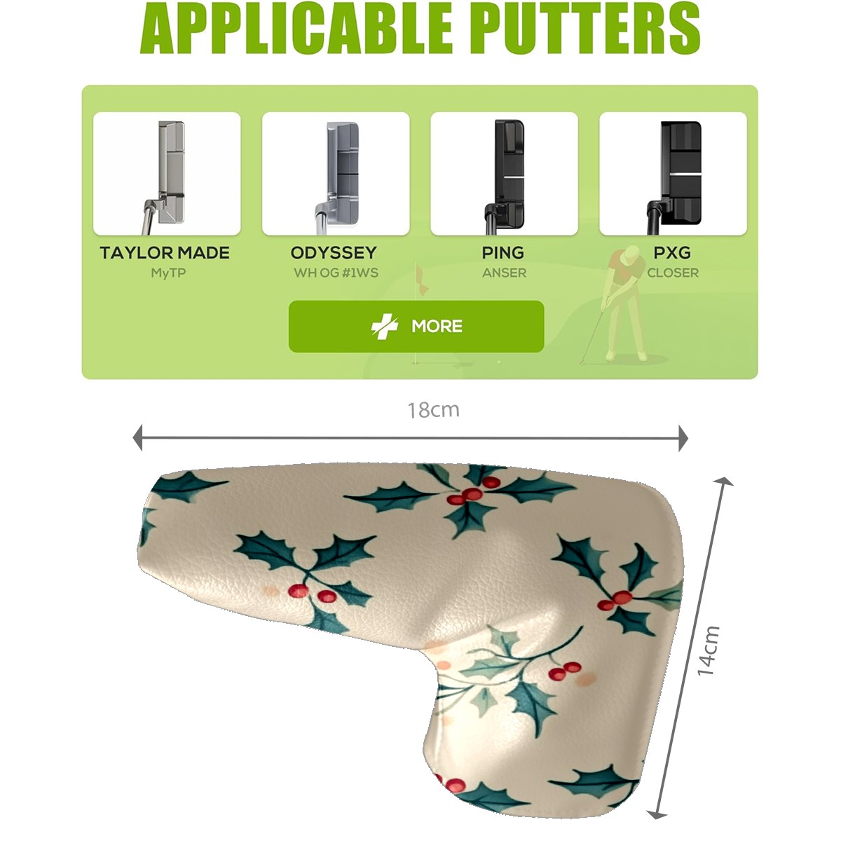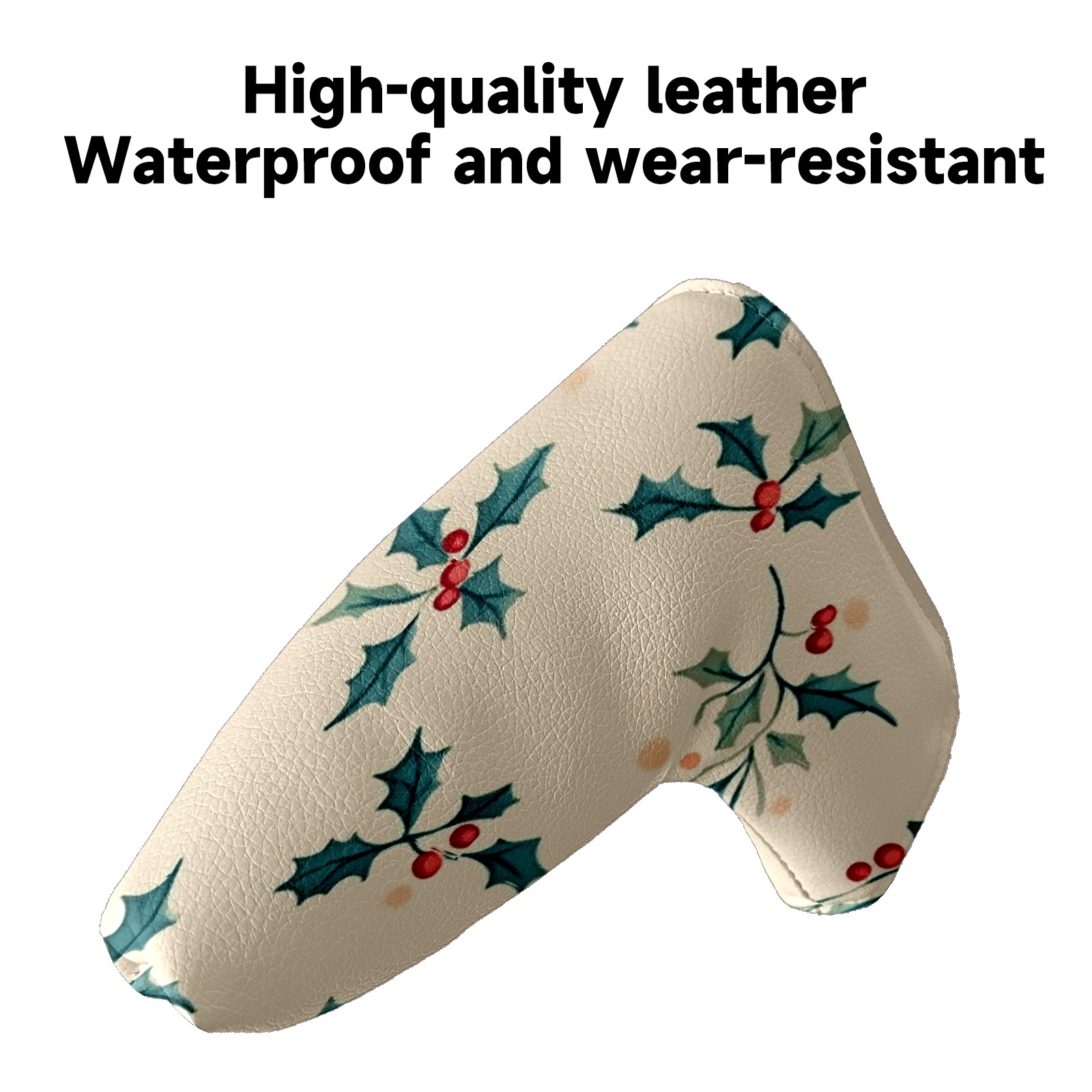 Golf Club Head Covers for Blade Putter, Waterproof Leather Headcovers for Golf Clubs, Ideal Golf Accessories Gift for Men Women (Small Holly Leaves)