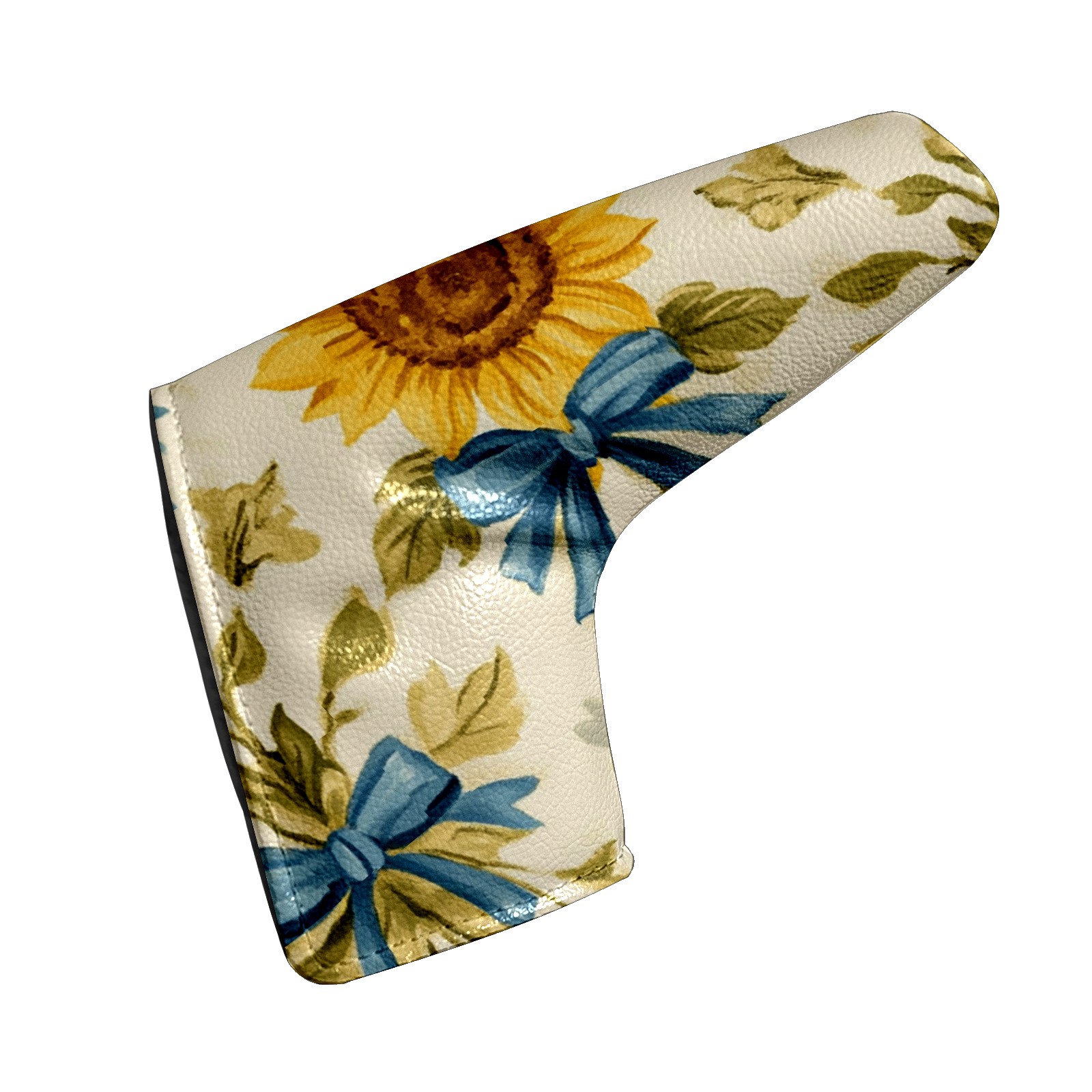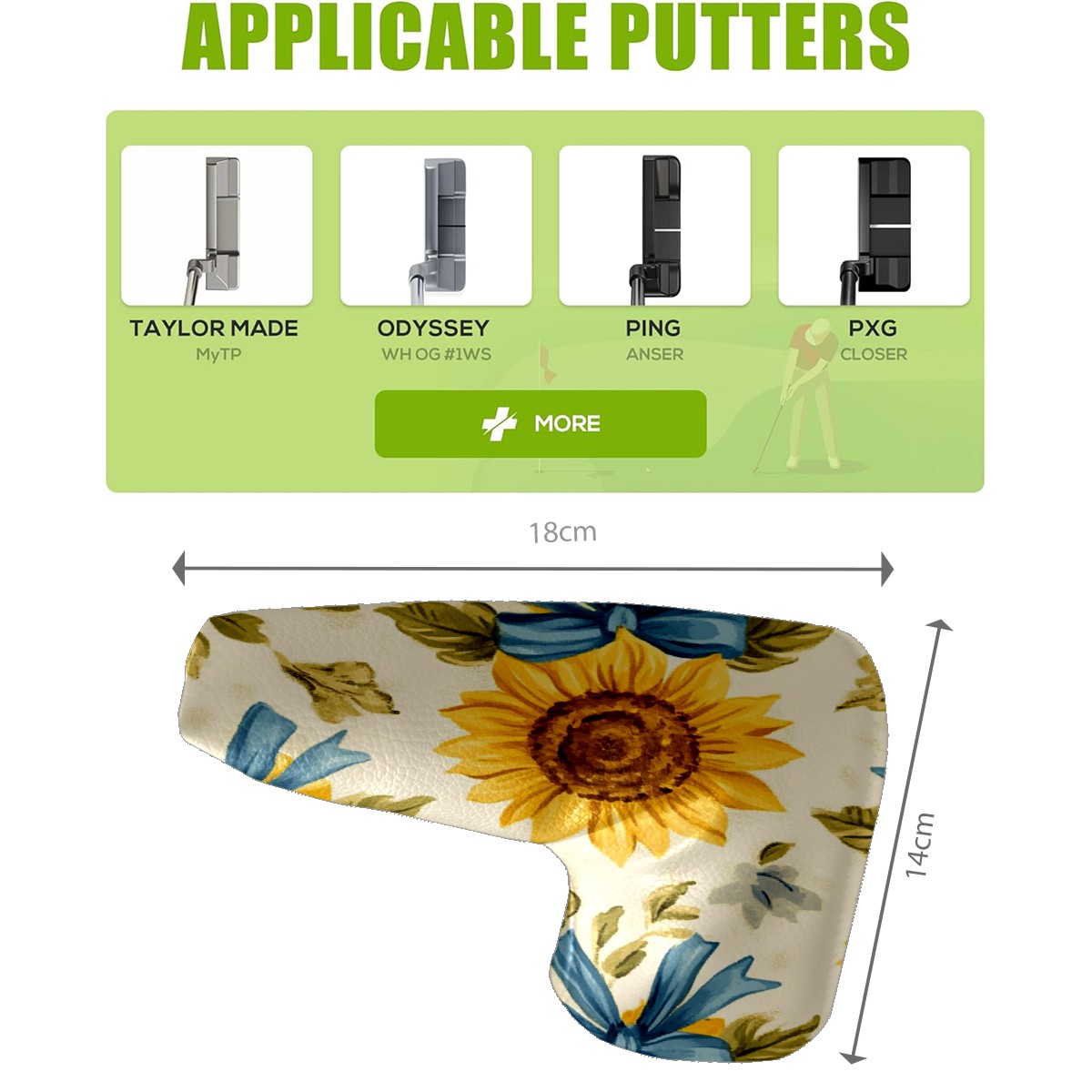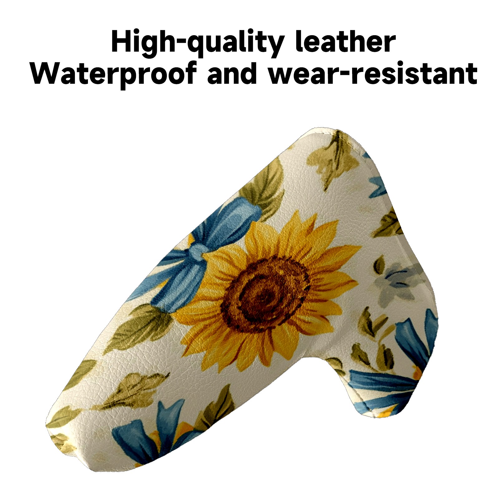 Golf Club Head Covers for Blade Putter, Waterproof Leather Headcovers for Golf Clubs, Ideal Golf Accessories Gift for Men Women (Sunflowers And Blue Bows)