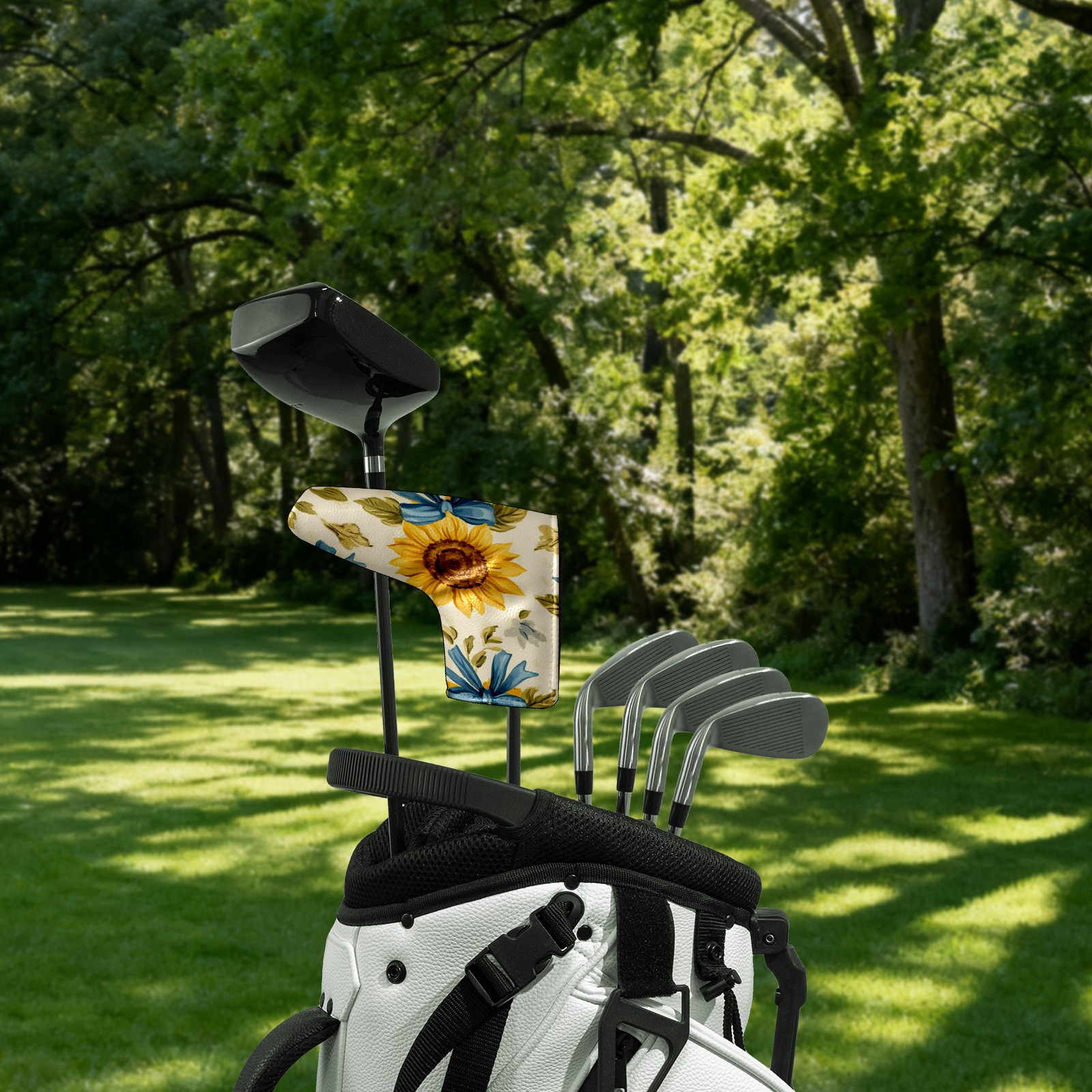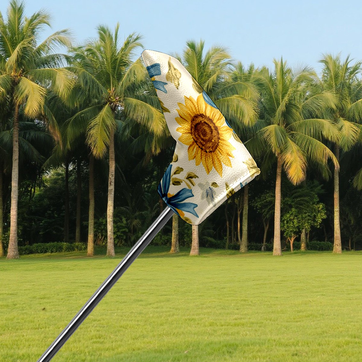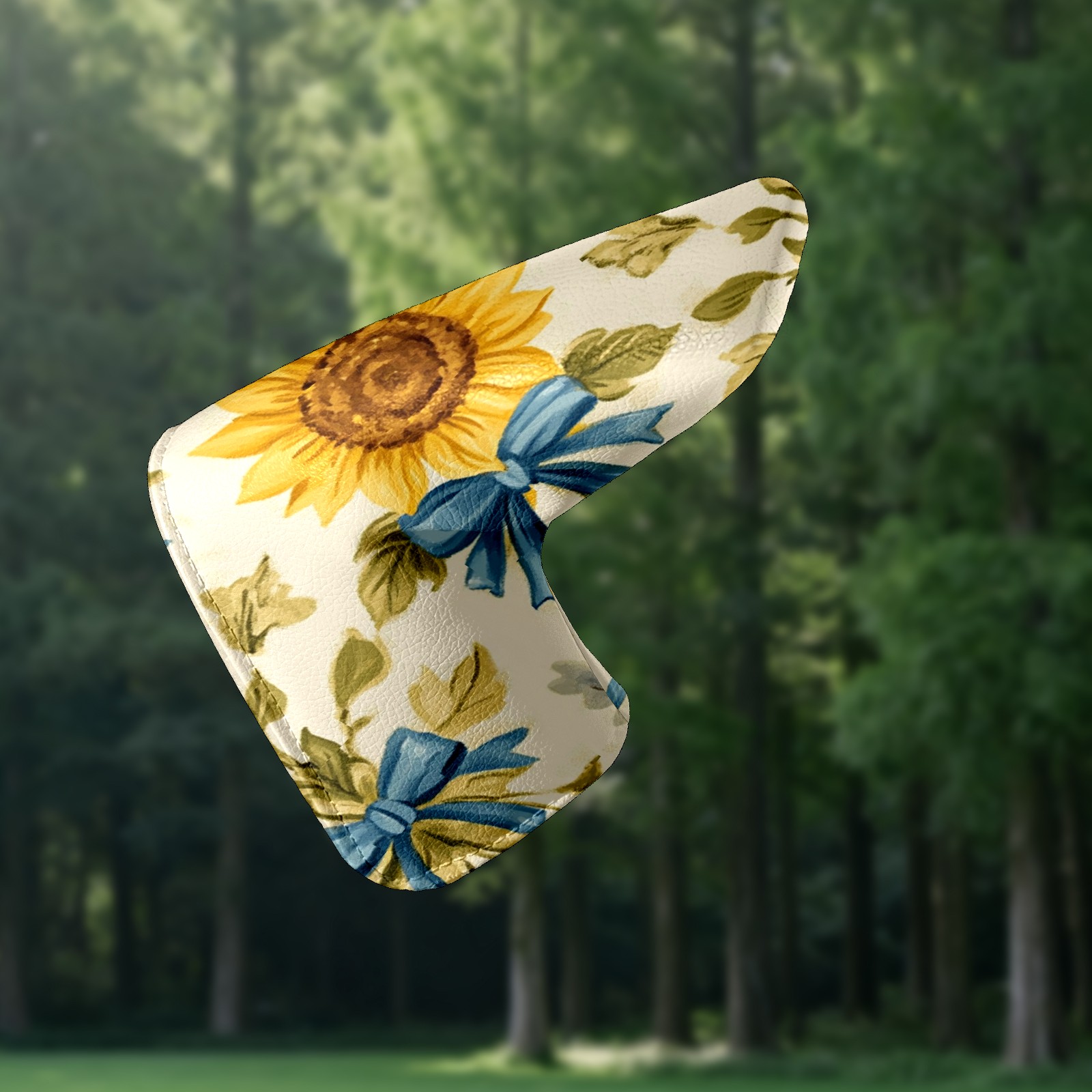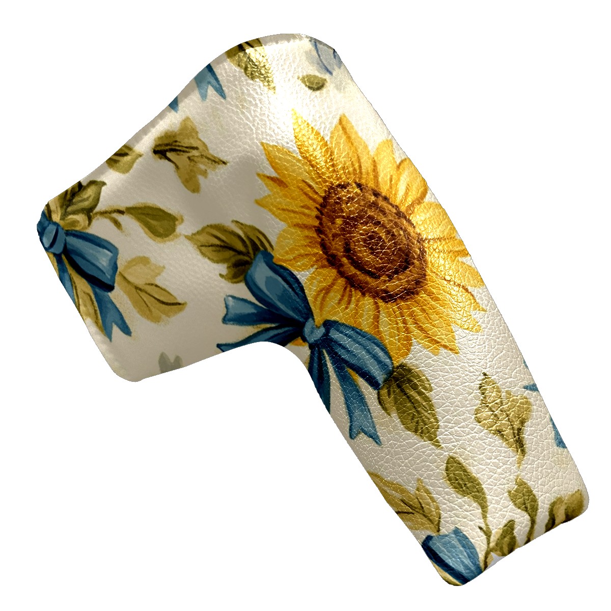 Golf Club Head Covers for Blade Putter, Waterproof Leather Headcovers for Golf Clubs, Ideal Golf Accessories Gift for Men Women (Sunflowers And Blue Bows)