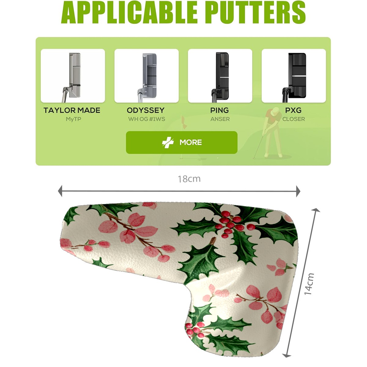 Golf Club Head Covers for Blade Putter, Waterproof Leather Headcovers for Golf Clubs, Ideal Golf Accessories Gift for Men Women (Holly Leaves)