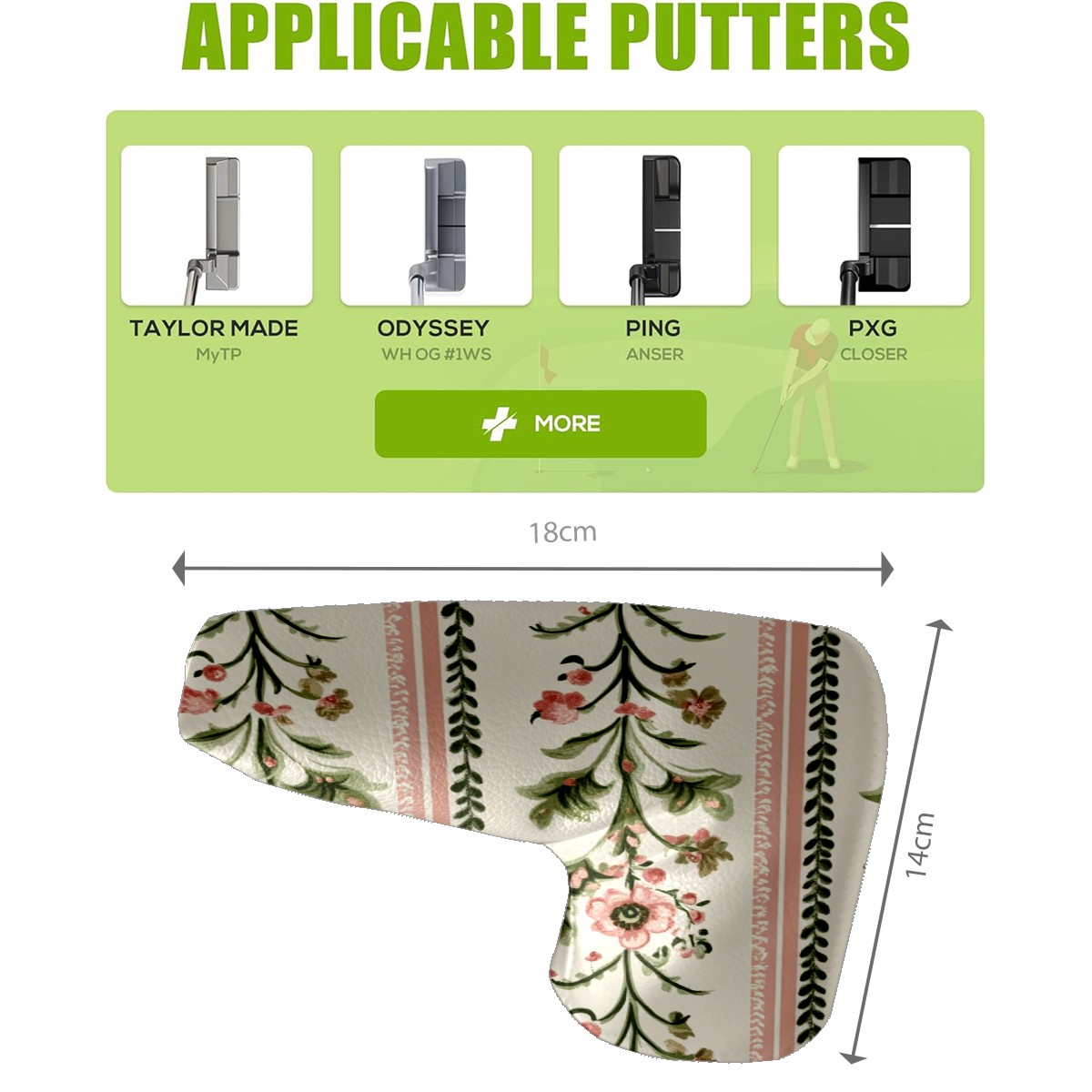 Golf Club Head Covers for Blade Putter, Waterproof Leather Headcovers for Golf Clubs, Ideal Golf Accessories Gift for Men Women (Pink And Green Flowers)