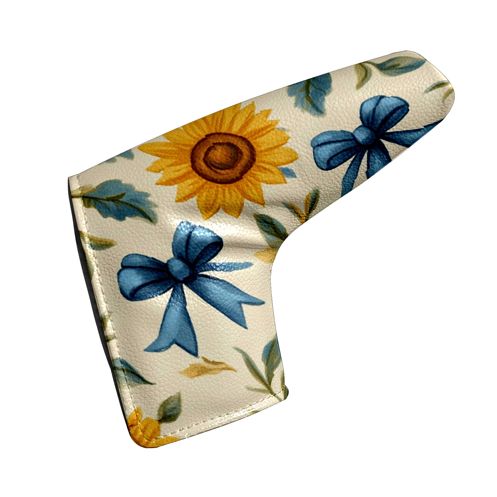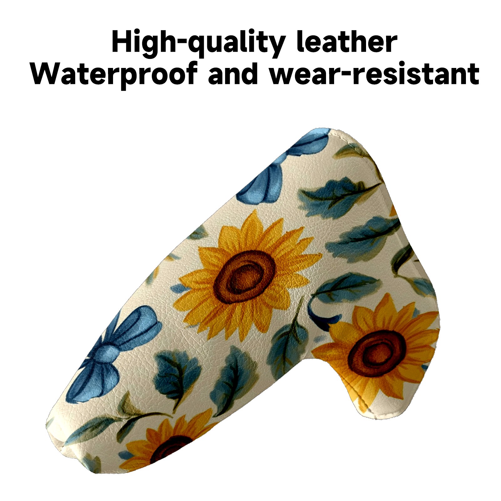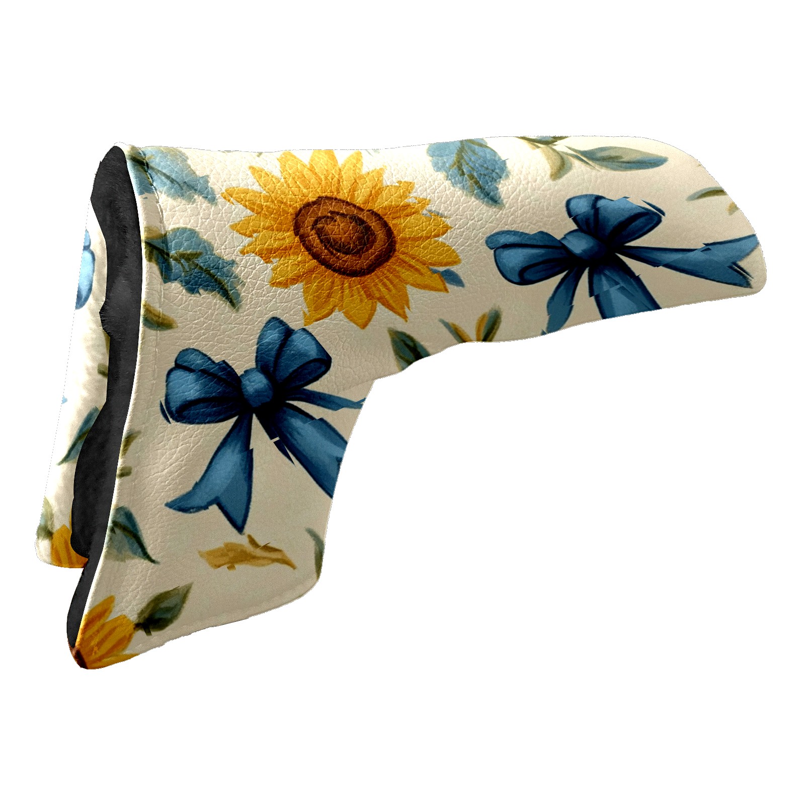 Golf Club Head Covers for Blade Putter, Waterproof Leather Headcovers for Golf Clubs, Ideal Golf Accessories Gift for Men Women (Blue Bows And Sunflowers)