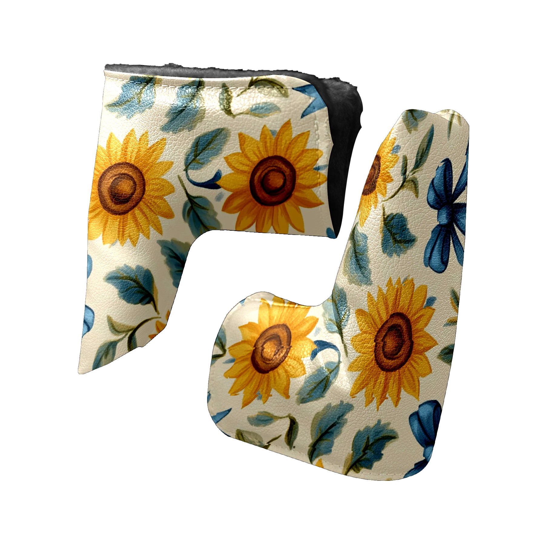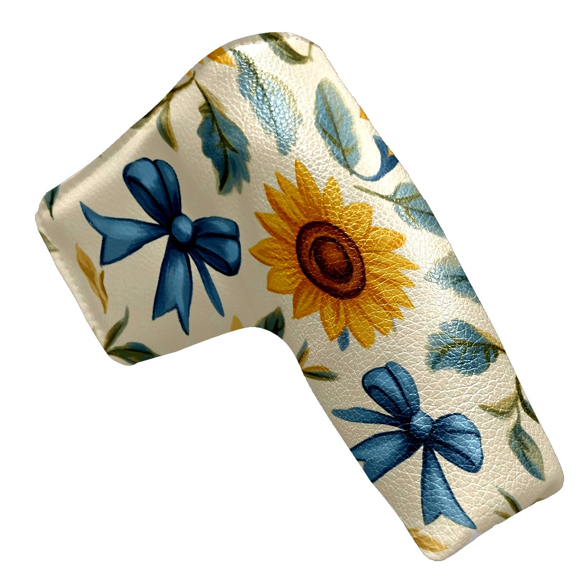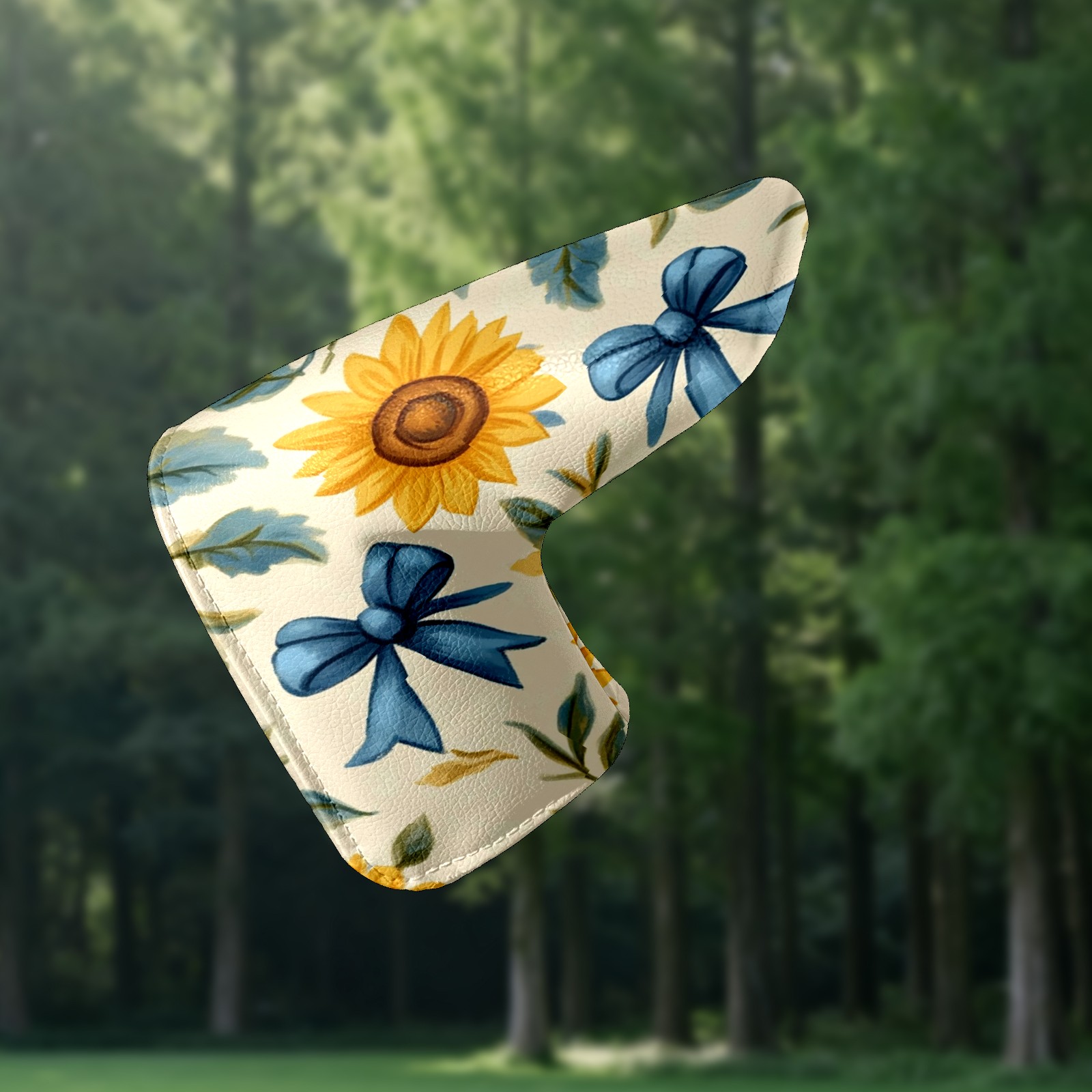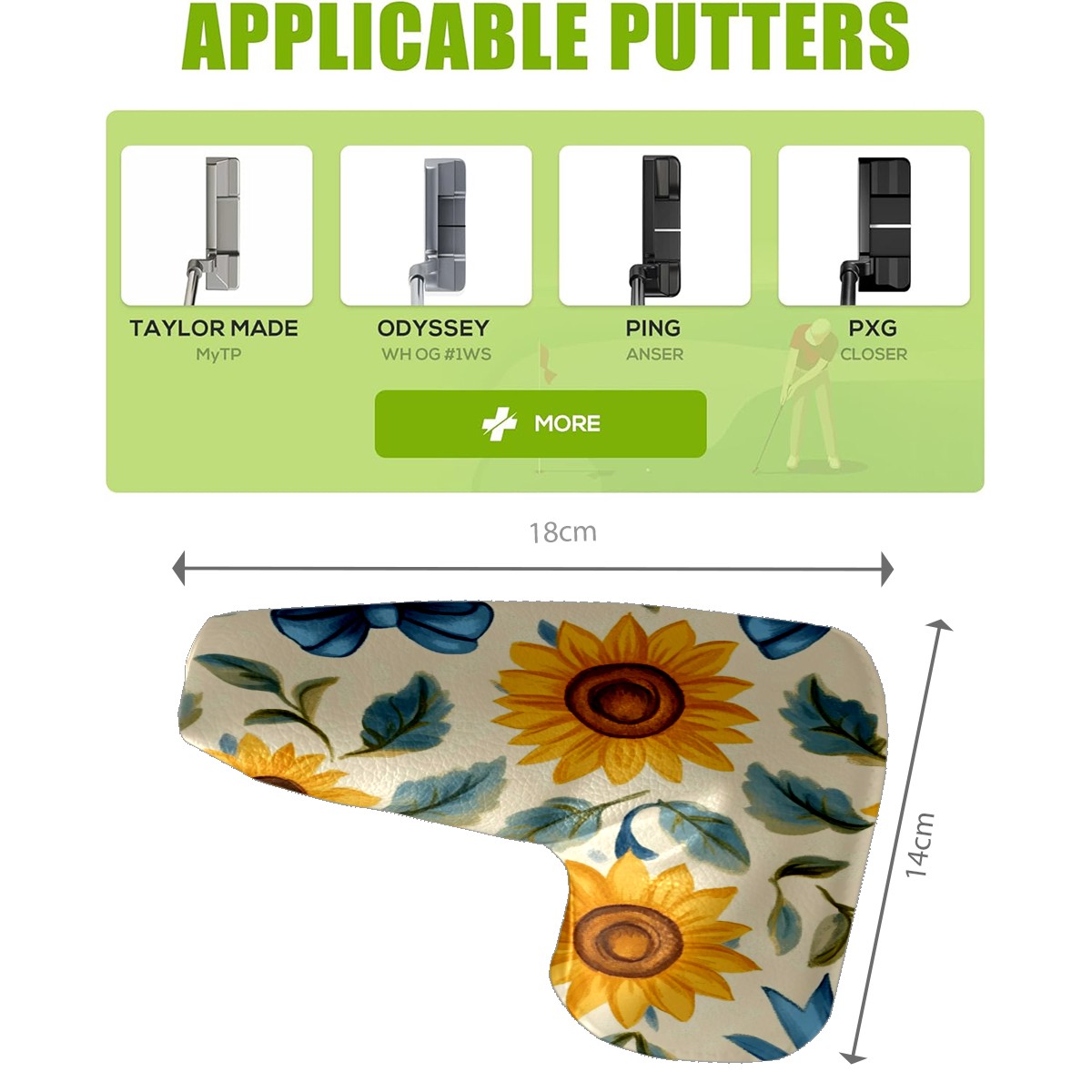 Golf Club Head Covers for Blade Putter, Waterproof Leather Headcovers for Golf Clubs, Ideal Golf Accessories Gift for Men Women (Blue Bows And Sunflowers)
