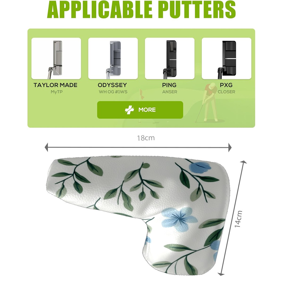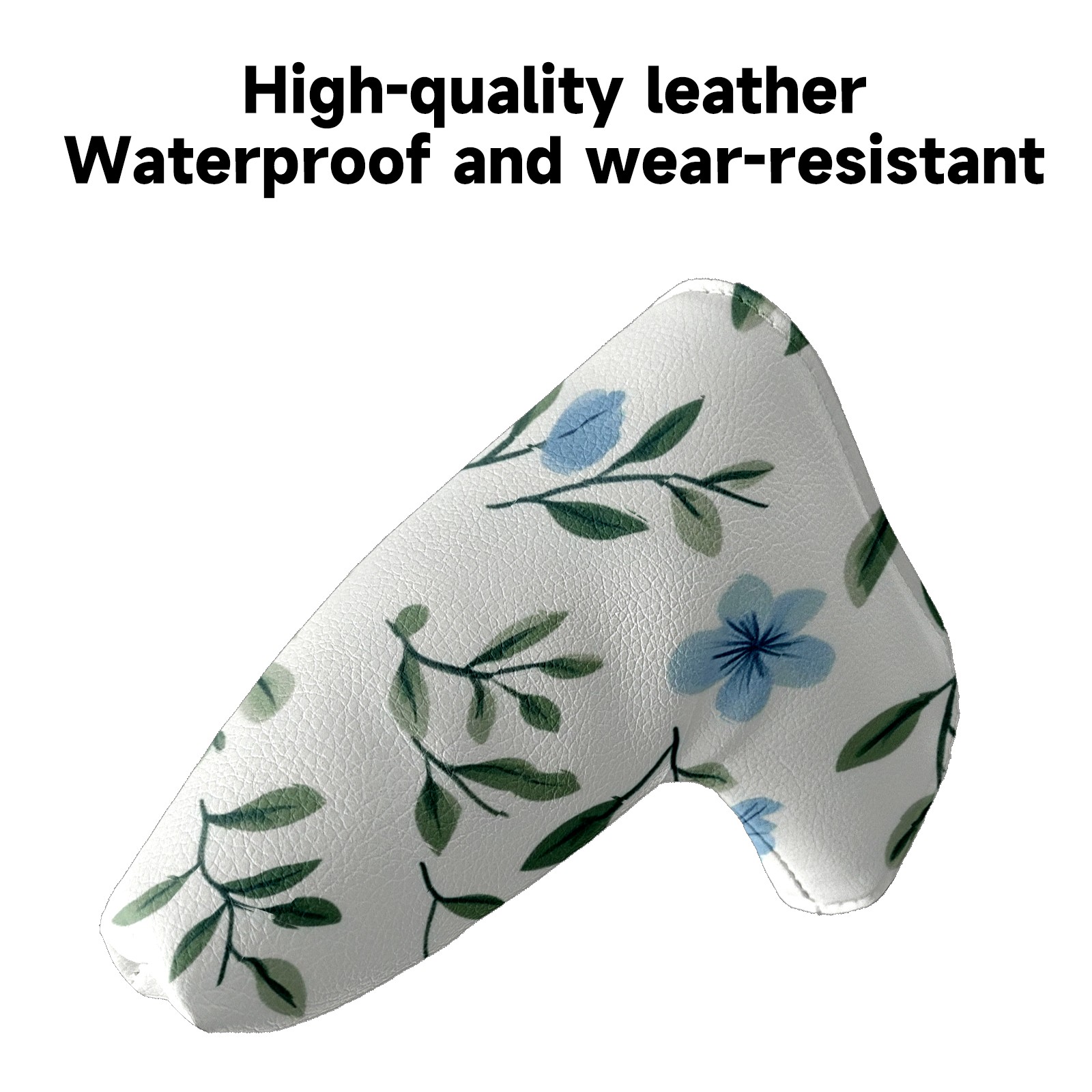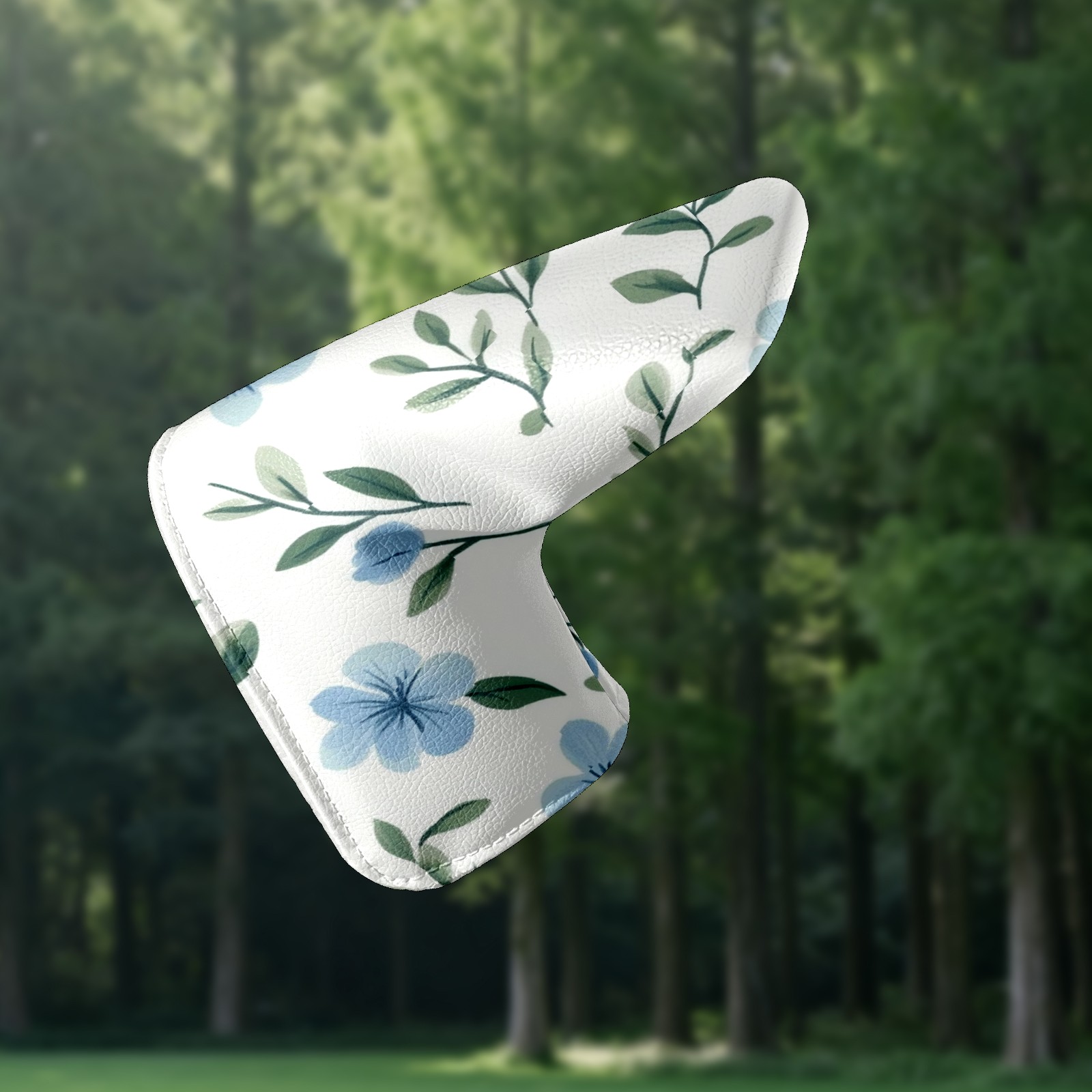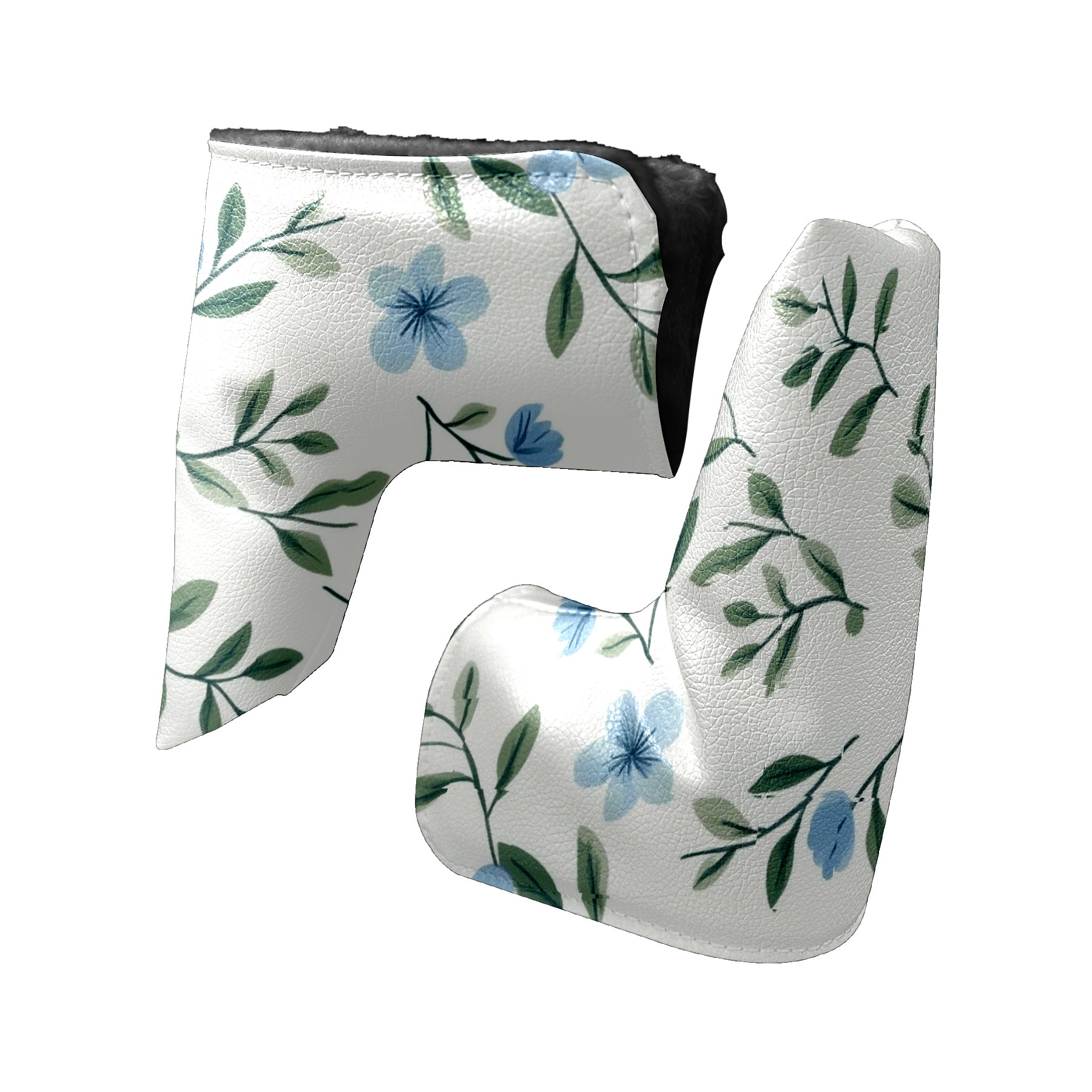 Golf Club Head Covers for Blade Putter, Waterproof Leather Headcovers for Golf Clubs, Ideal Golf Accessories Gift for Men Women (Pastel Blue Flowers)