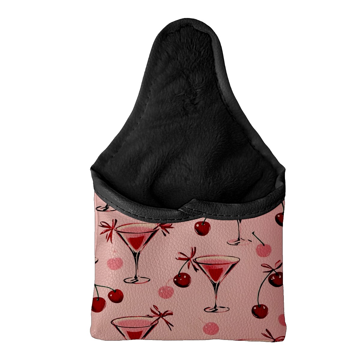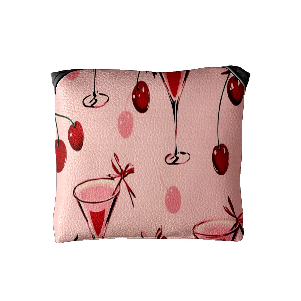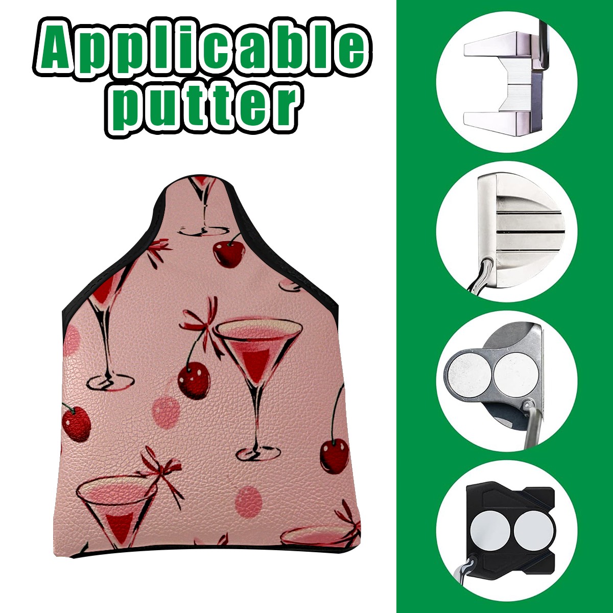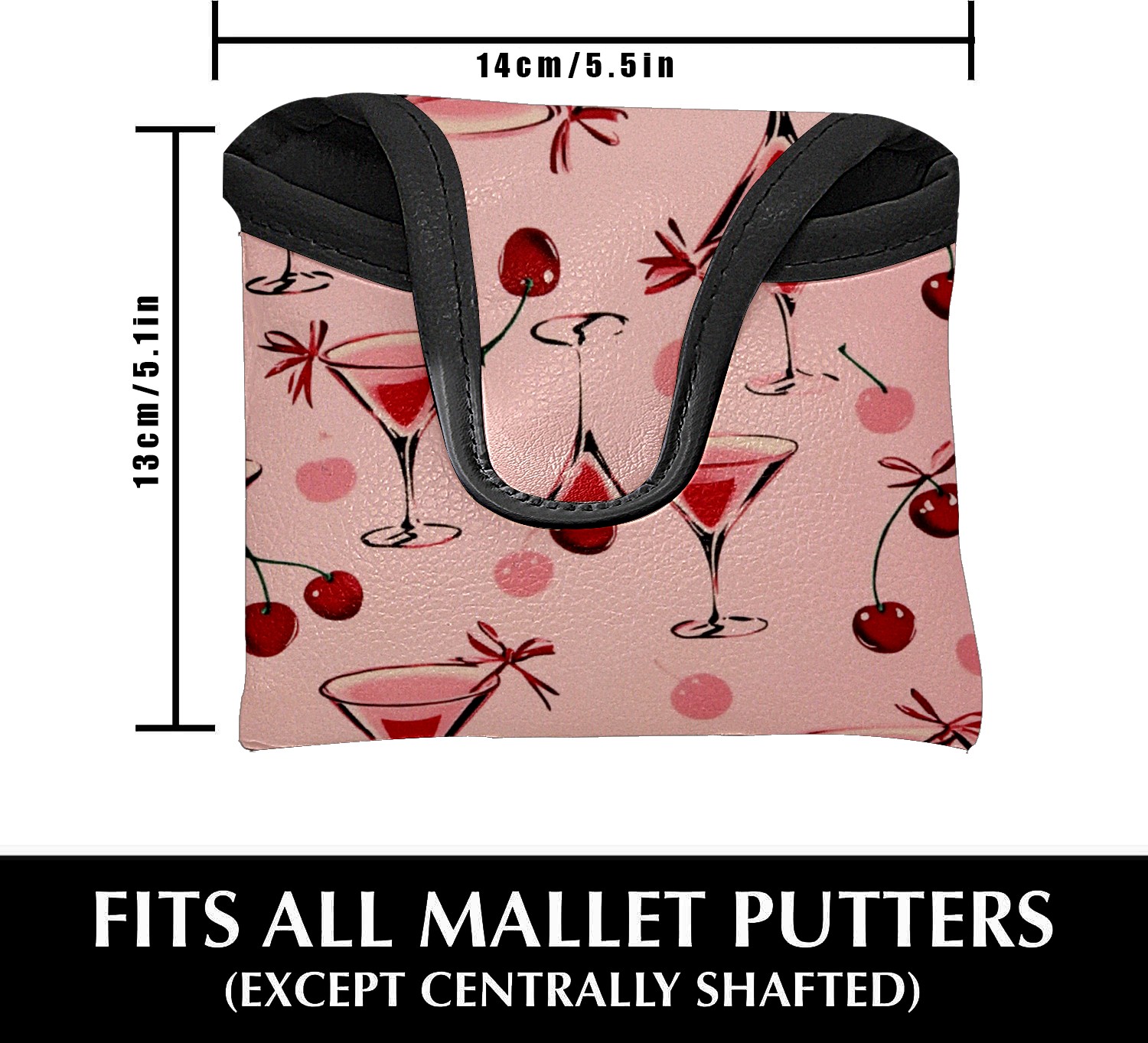 Golf Club Head Covers for Mallet Putter, Waterproof Leather Headcovers for Golf Clubs, Ideal Golf Accessories Gift for Men Women (Red Cherries And Glasses)