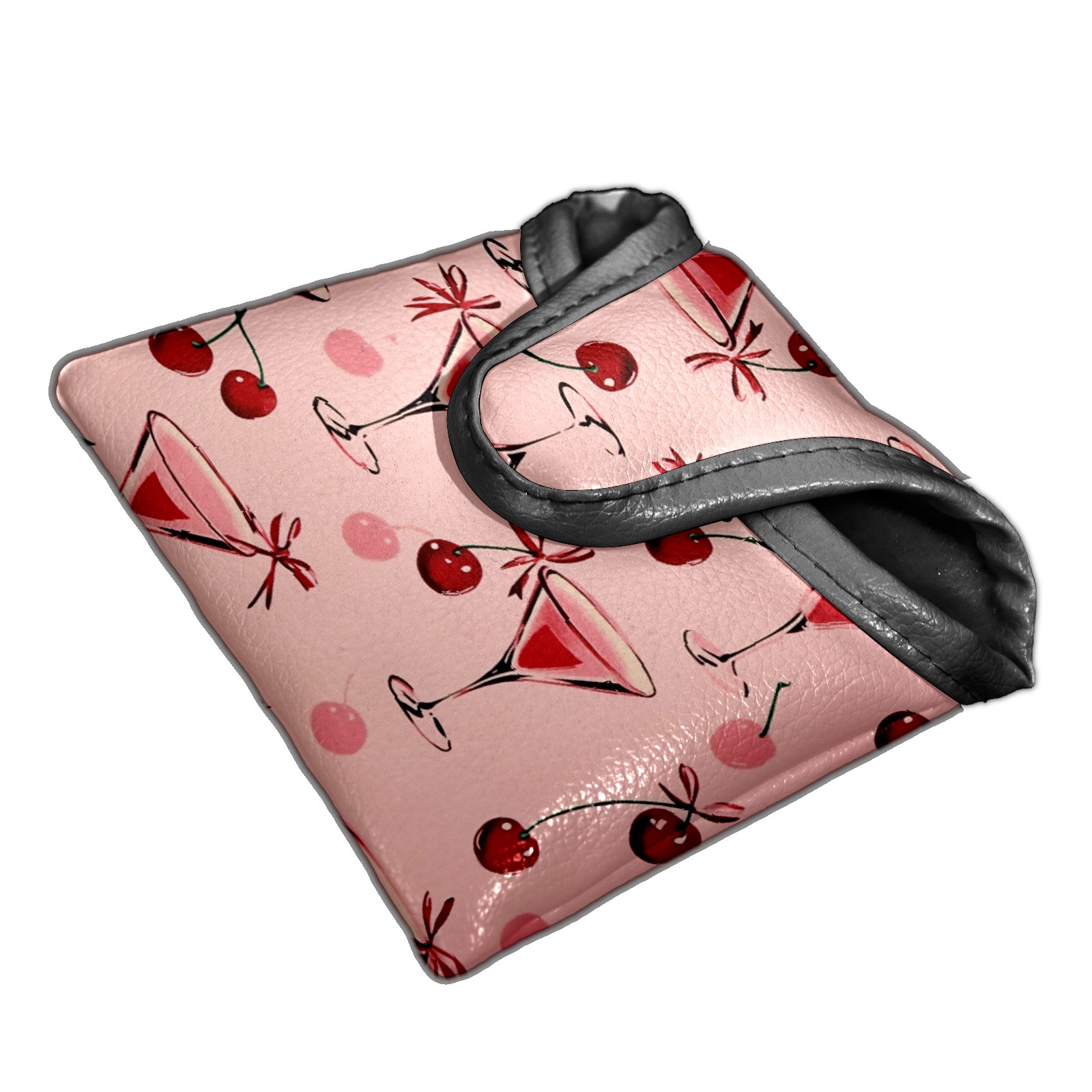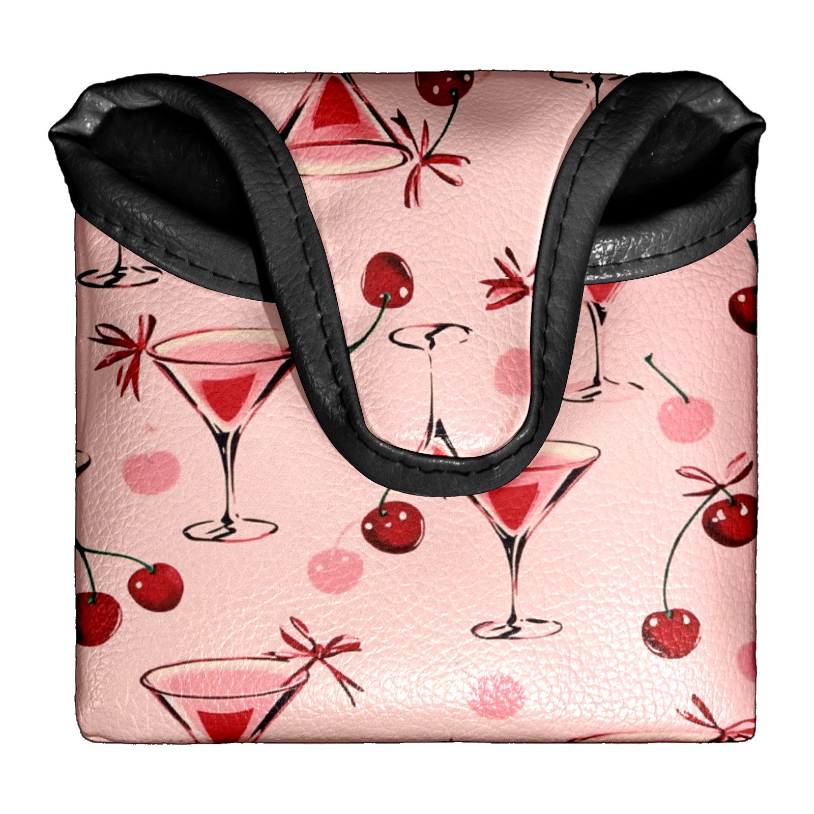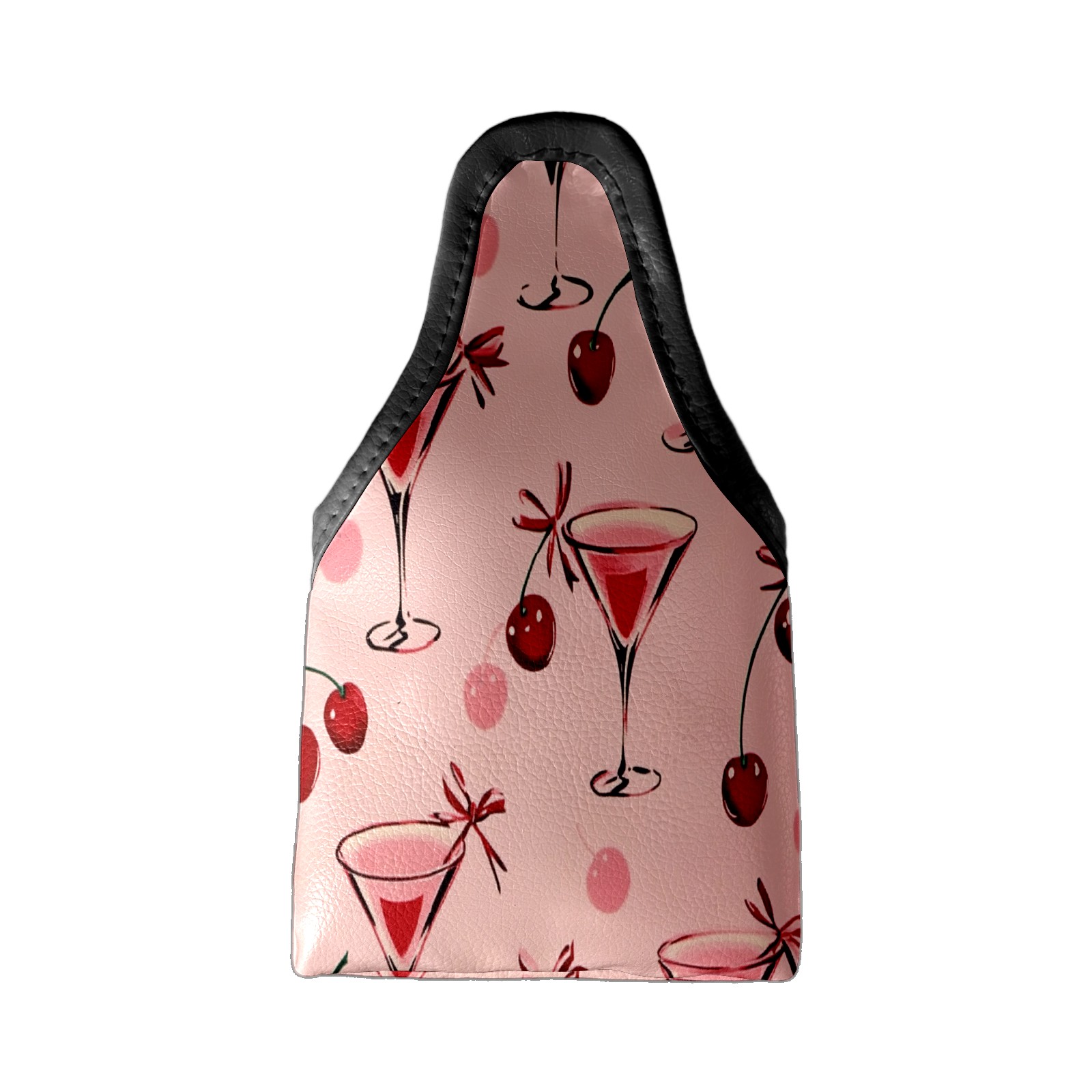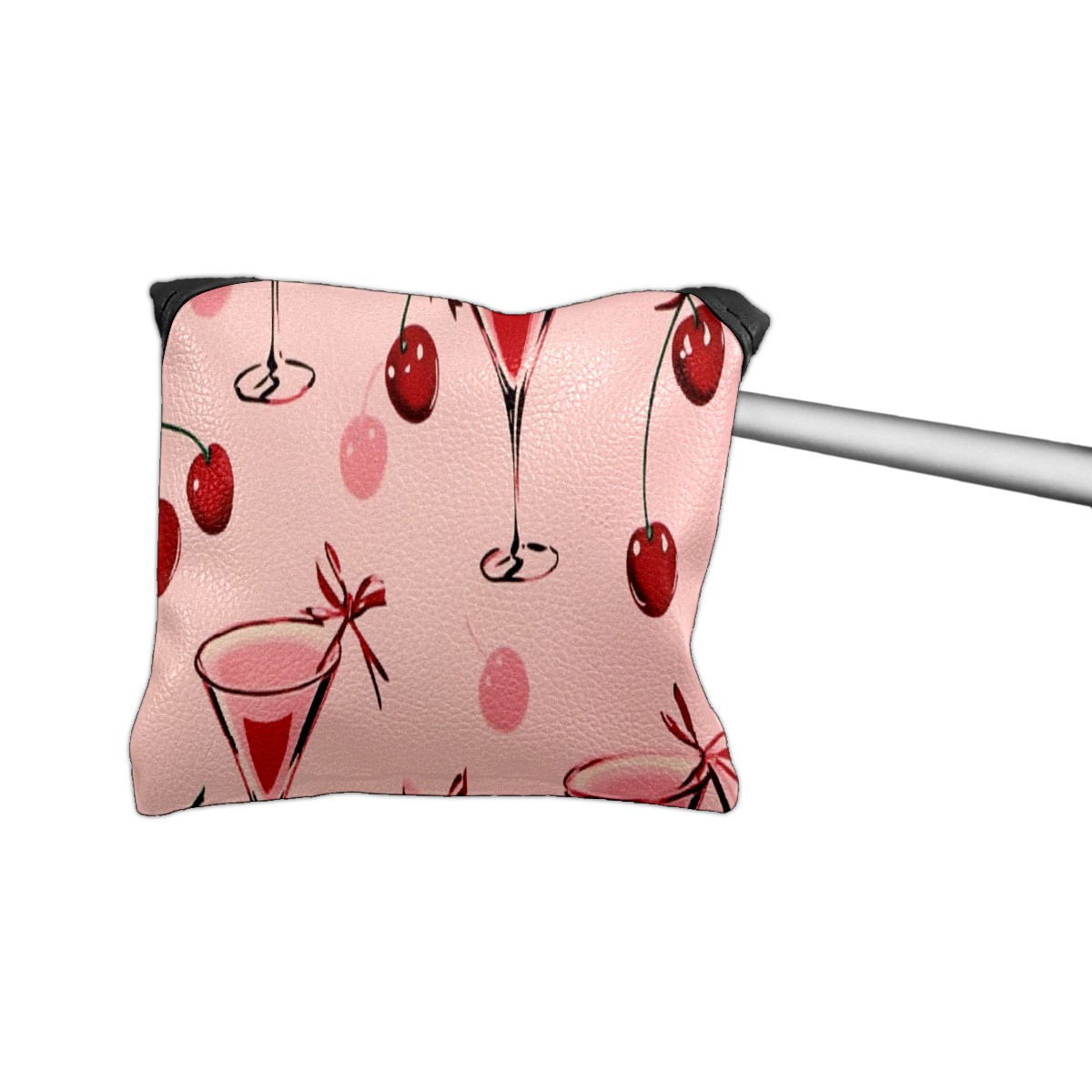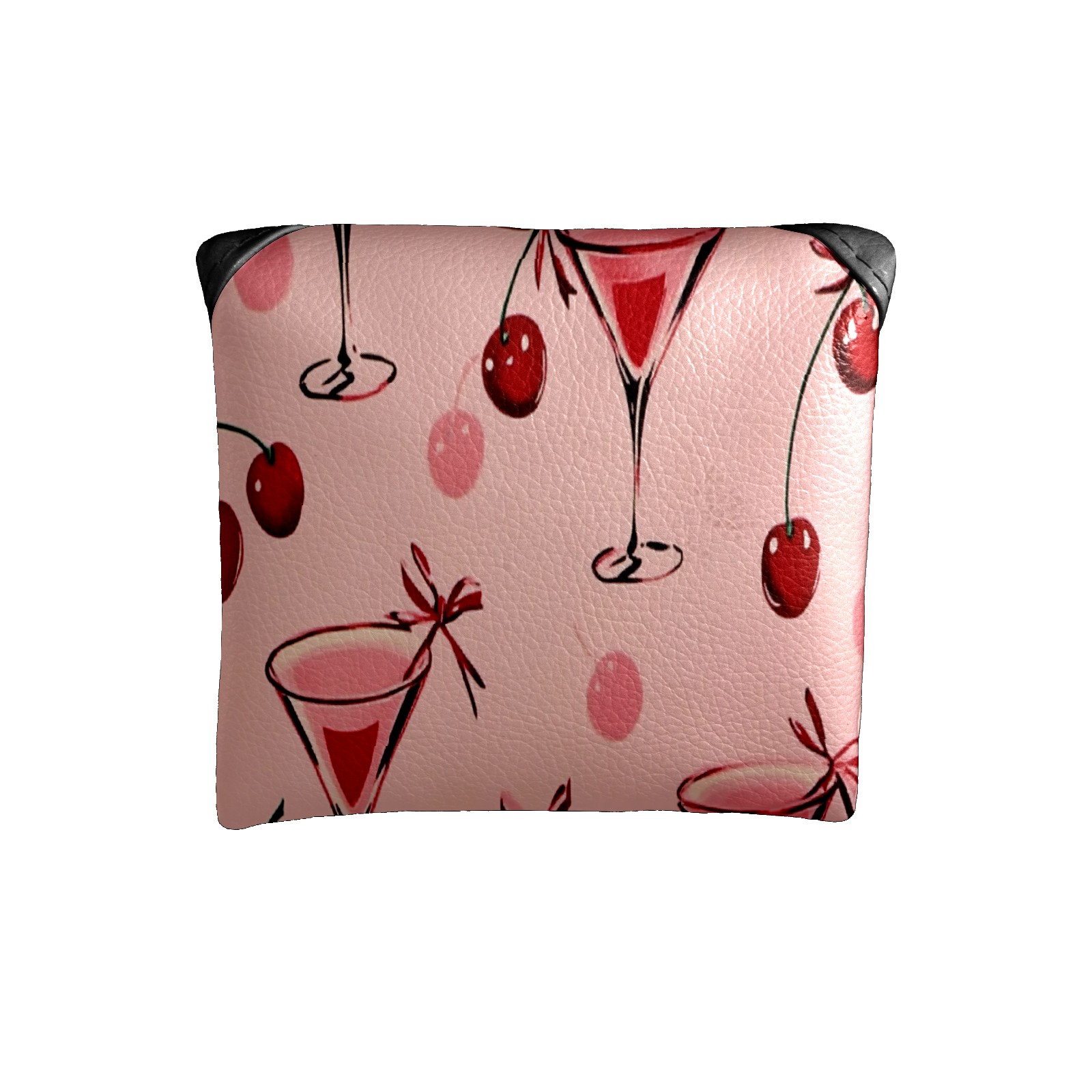 Golf Club Head Covers for Mallet Putter, Waterproof Leather Headcovers for Golf Clubs, Ideal Golf Accessories Gift for Men Women (Red Cherries And Glasses)