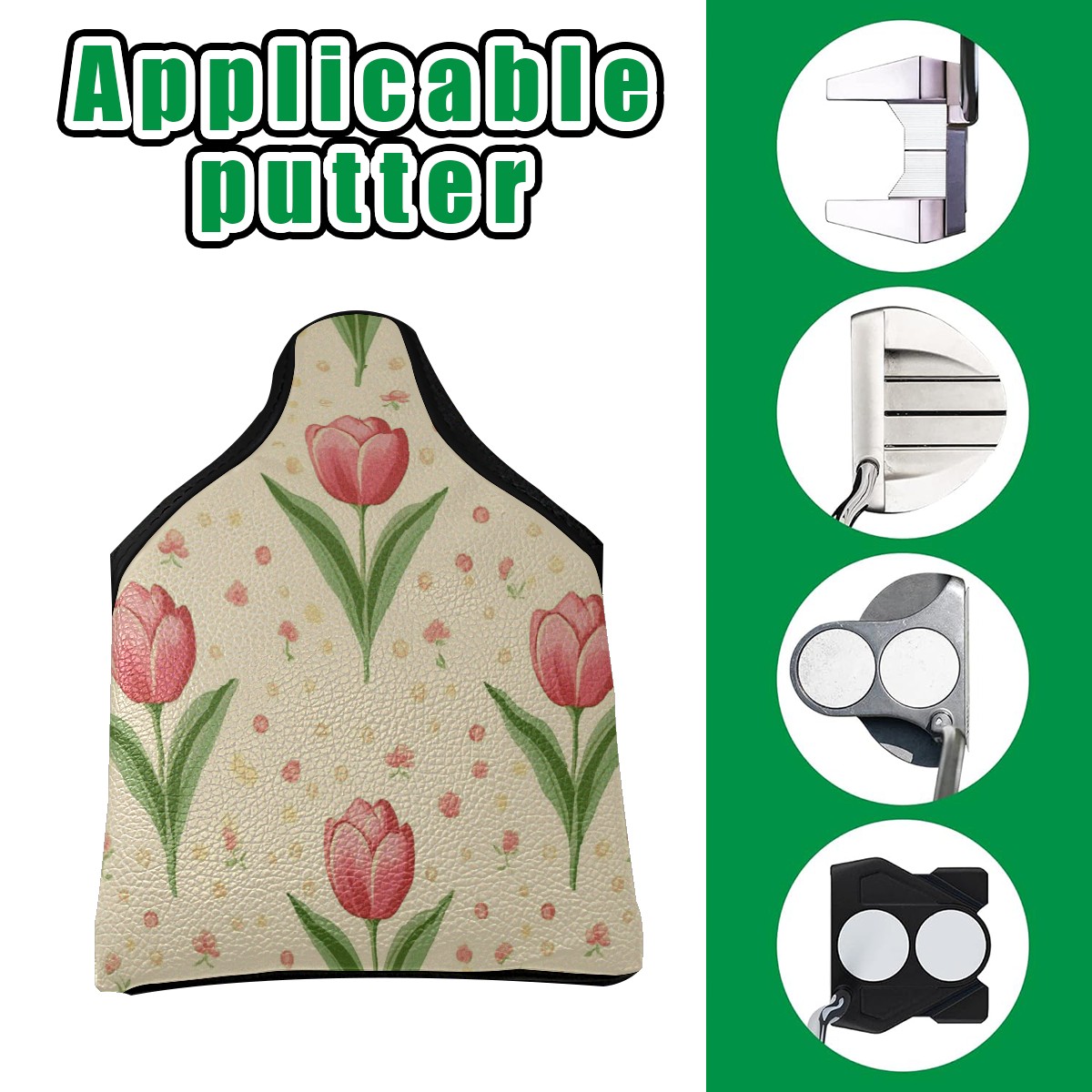 Golf Club Head Covers for Mallet Putter, Waterproof Leather Headcovers for Golf Clubs, Ideal Golf Accessories Gift for Men Women (Tulip)