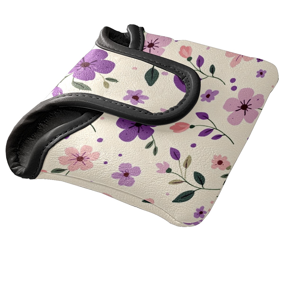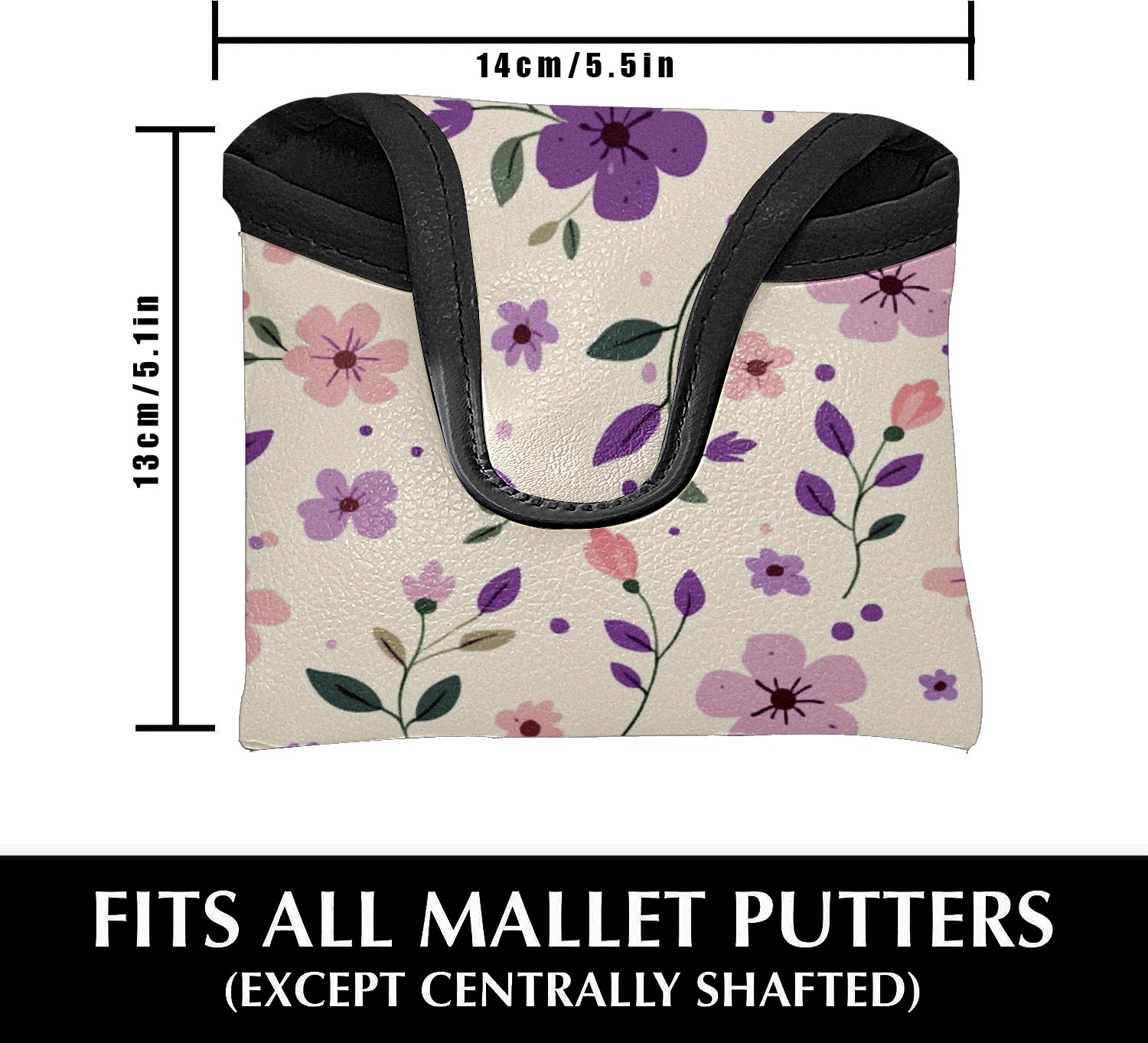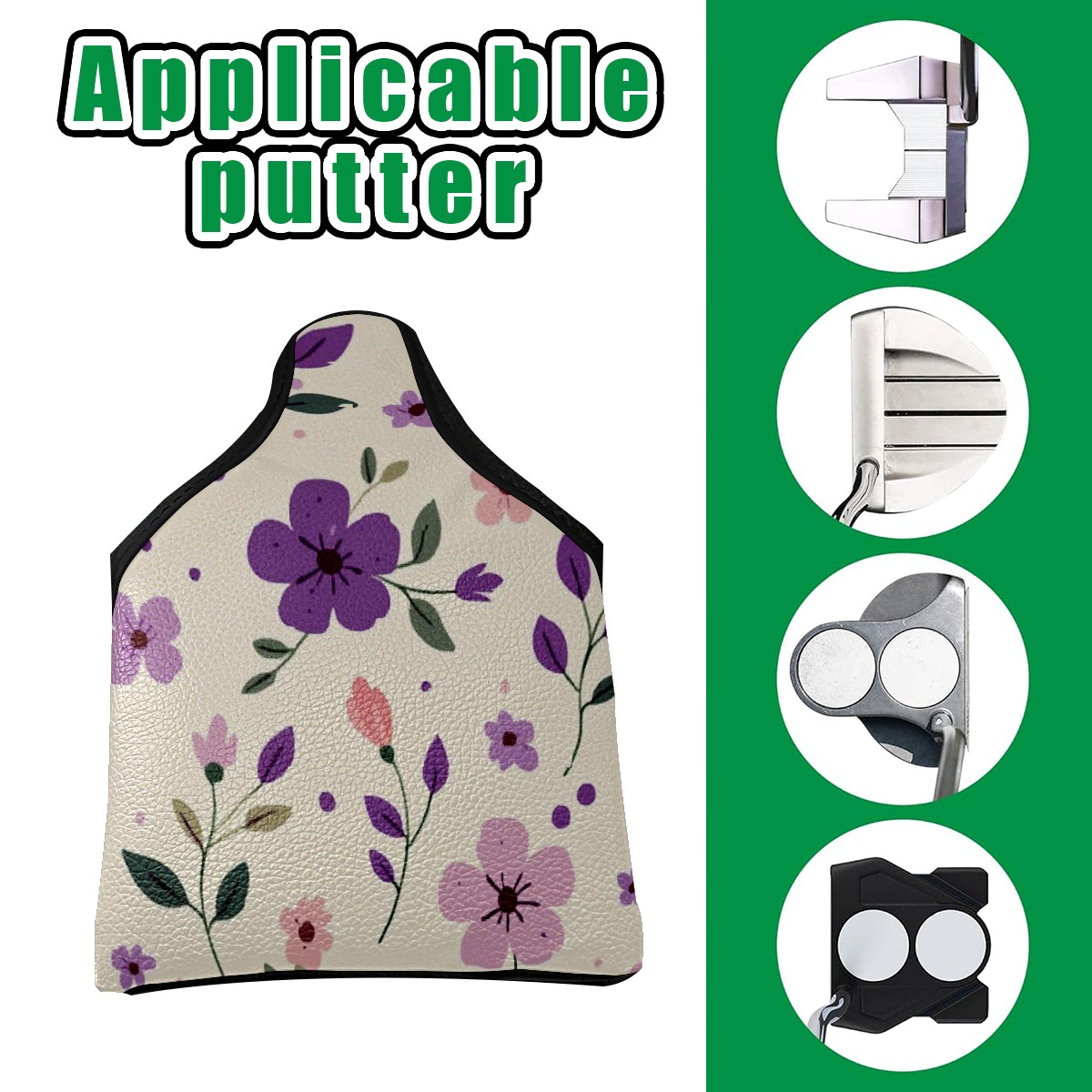 Golf Club Head Covers for Mallet Putter, Waterproof Leather Headcovers for Golf Clubs, Ideal Golf Accessories Gift for Men Women (Purple And Pink Flowers)