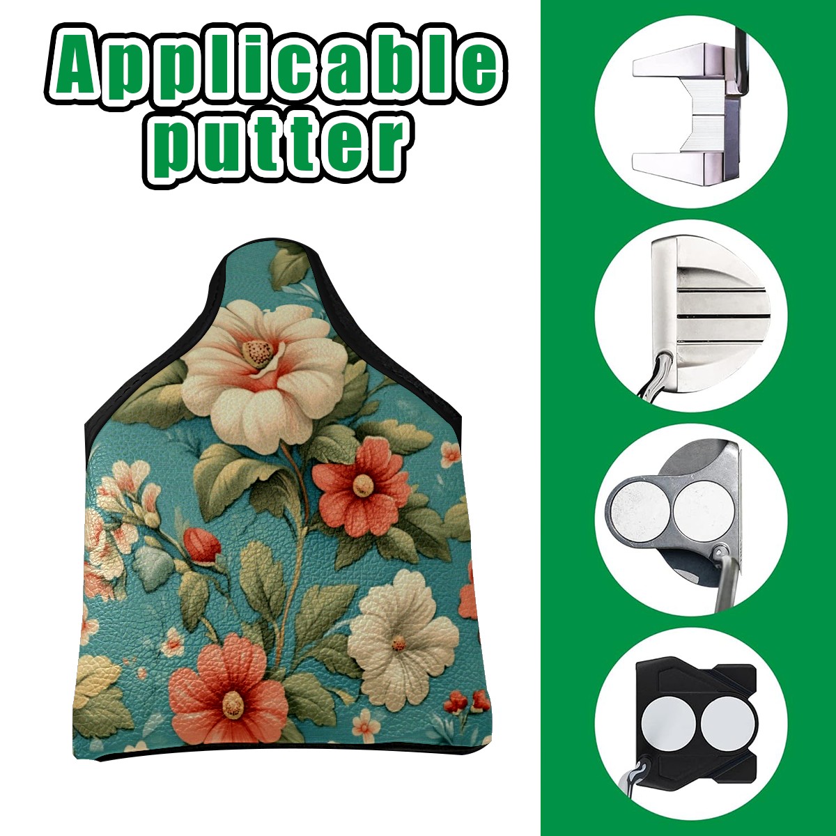 Golf Club Head Covers for Mallet Putter, Waterproof Leather Headcovers for Golf Clubs, Ideal Golf Accessories Gift for Men Women (Vintage Floral)