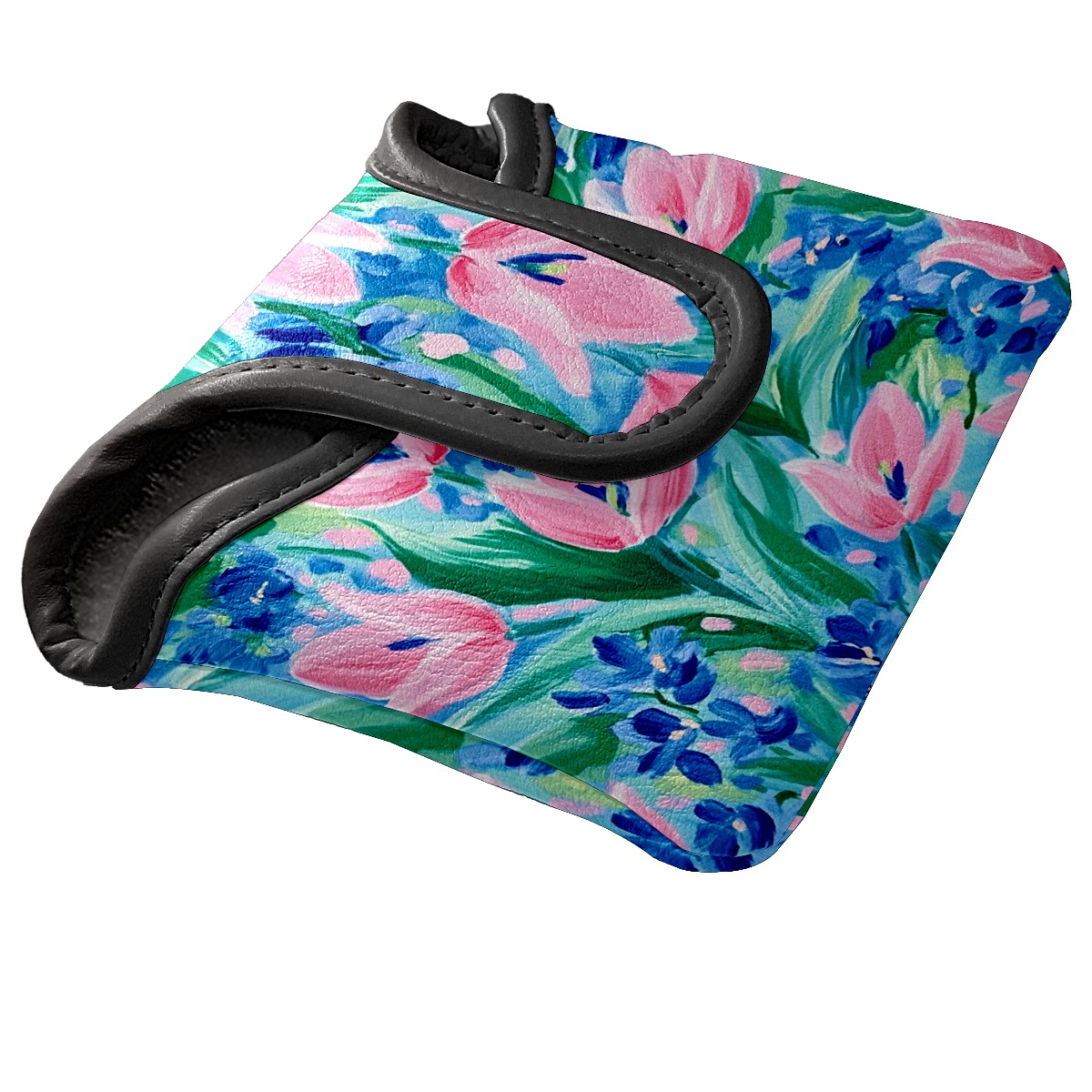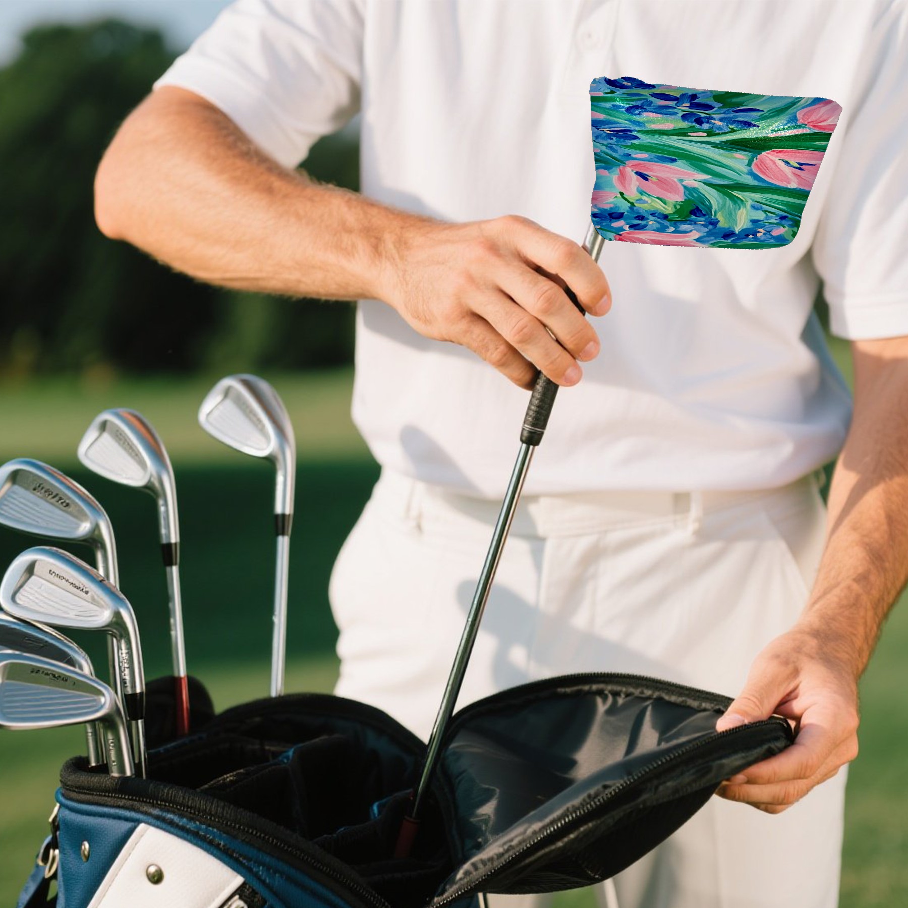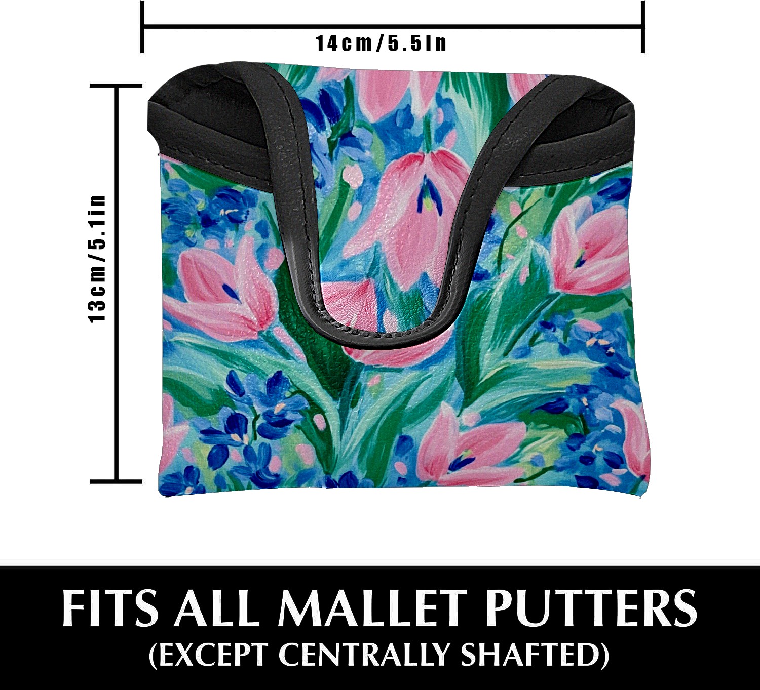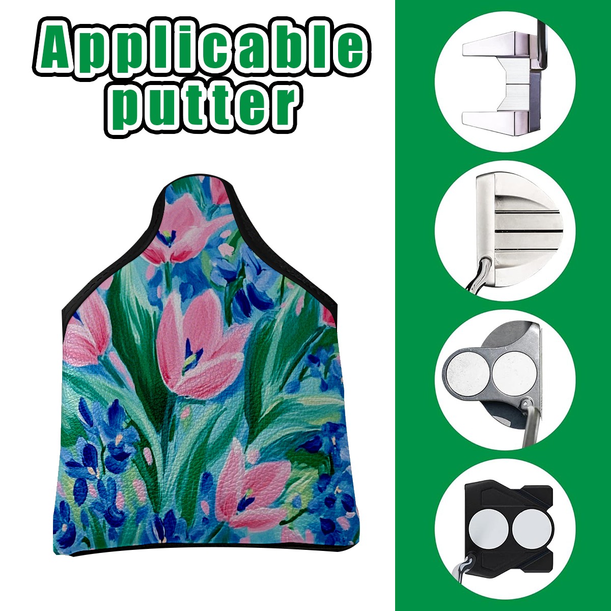 Golf Club Head Covers for Mallet Putter, Waterproof Leather Headcovers for Golf Clubs, Ideal Golf Accessories Gift for Men Women (Tulips)