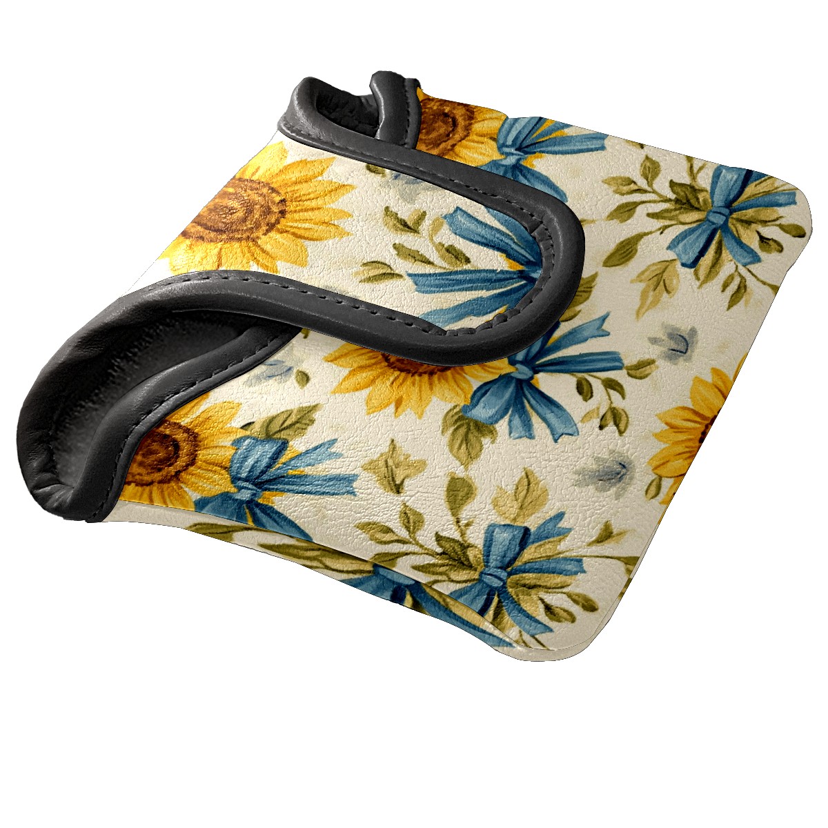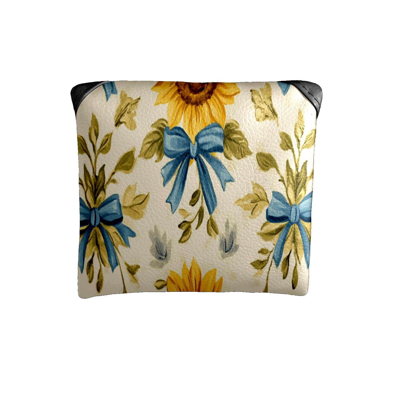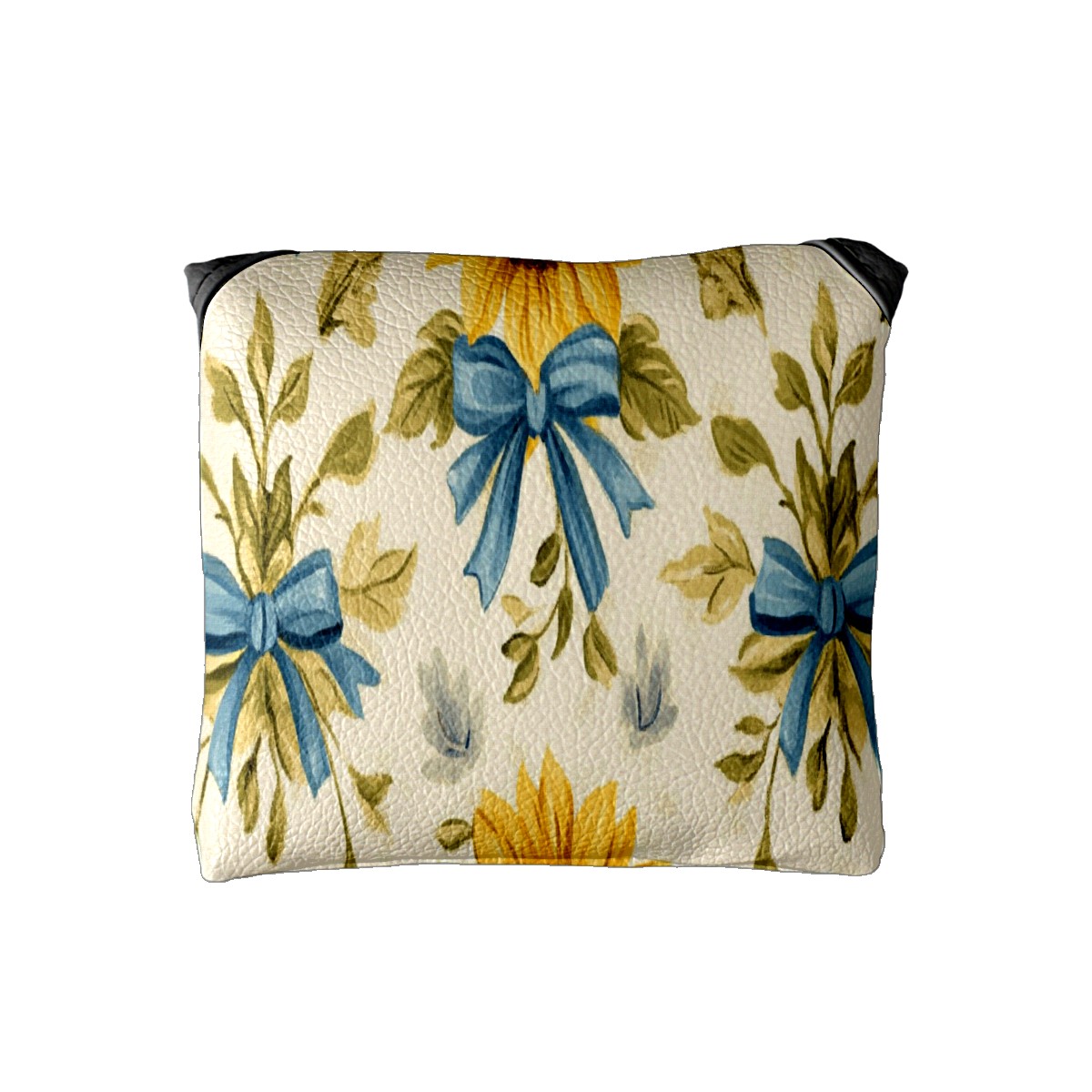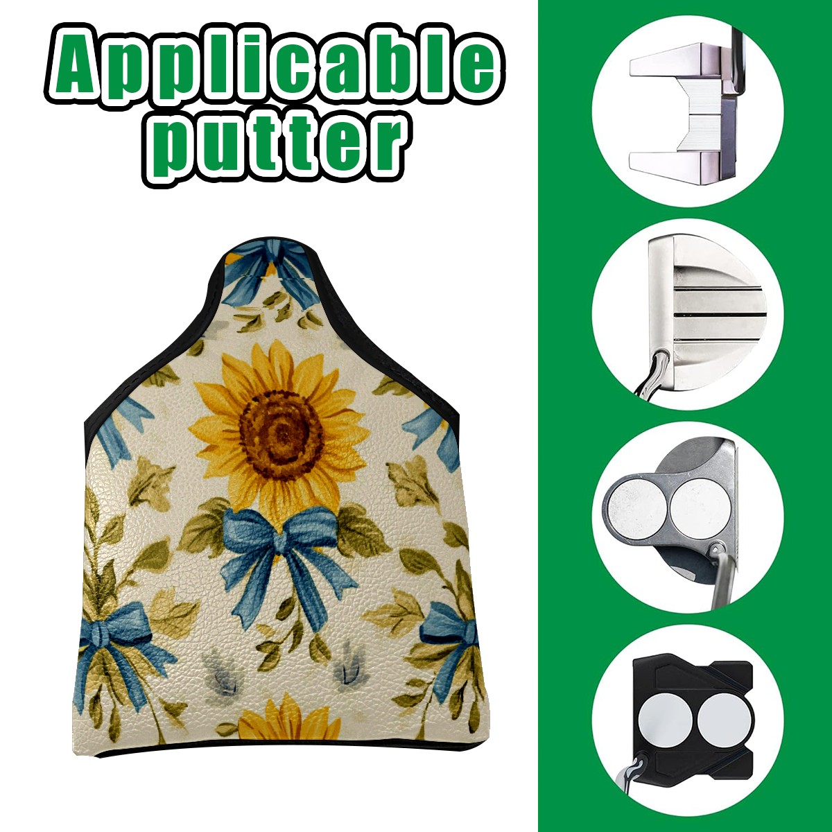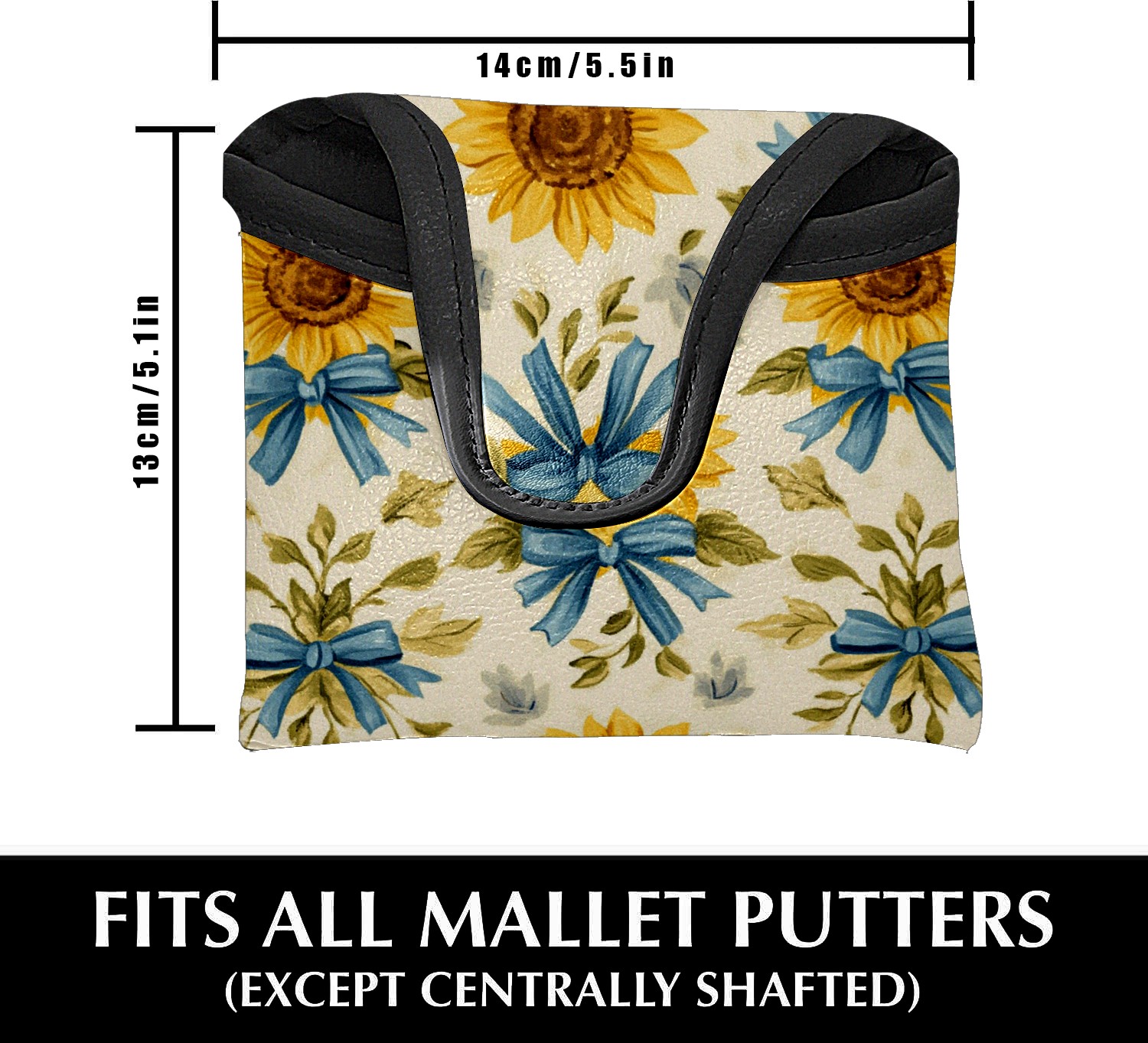 Golf Club Head Covers for Mallet Putter, Waterproof Leather Headcovers for Golf Clubs, Ideal Golf Accessories Gift for Men Women (Sunflowers And Blue Bows)