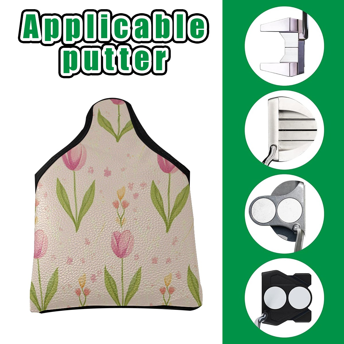 Golf Club Head Covers for Mallet Putter, Waterproof Leather Headcovers for Golf Clubs, Ideal Golf Accessories Gift for Men Women (Shabby Chic Tulip)