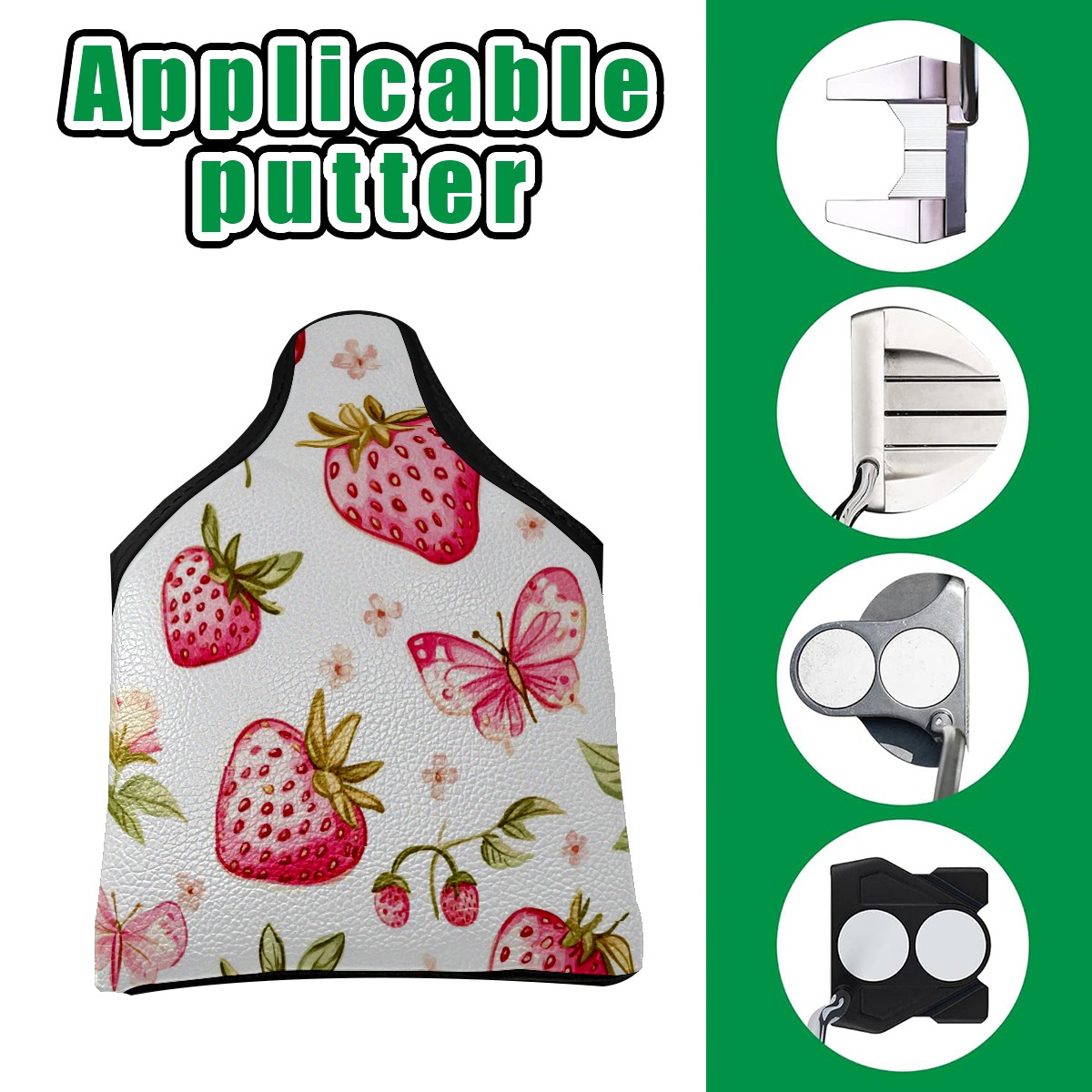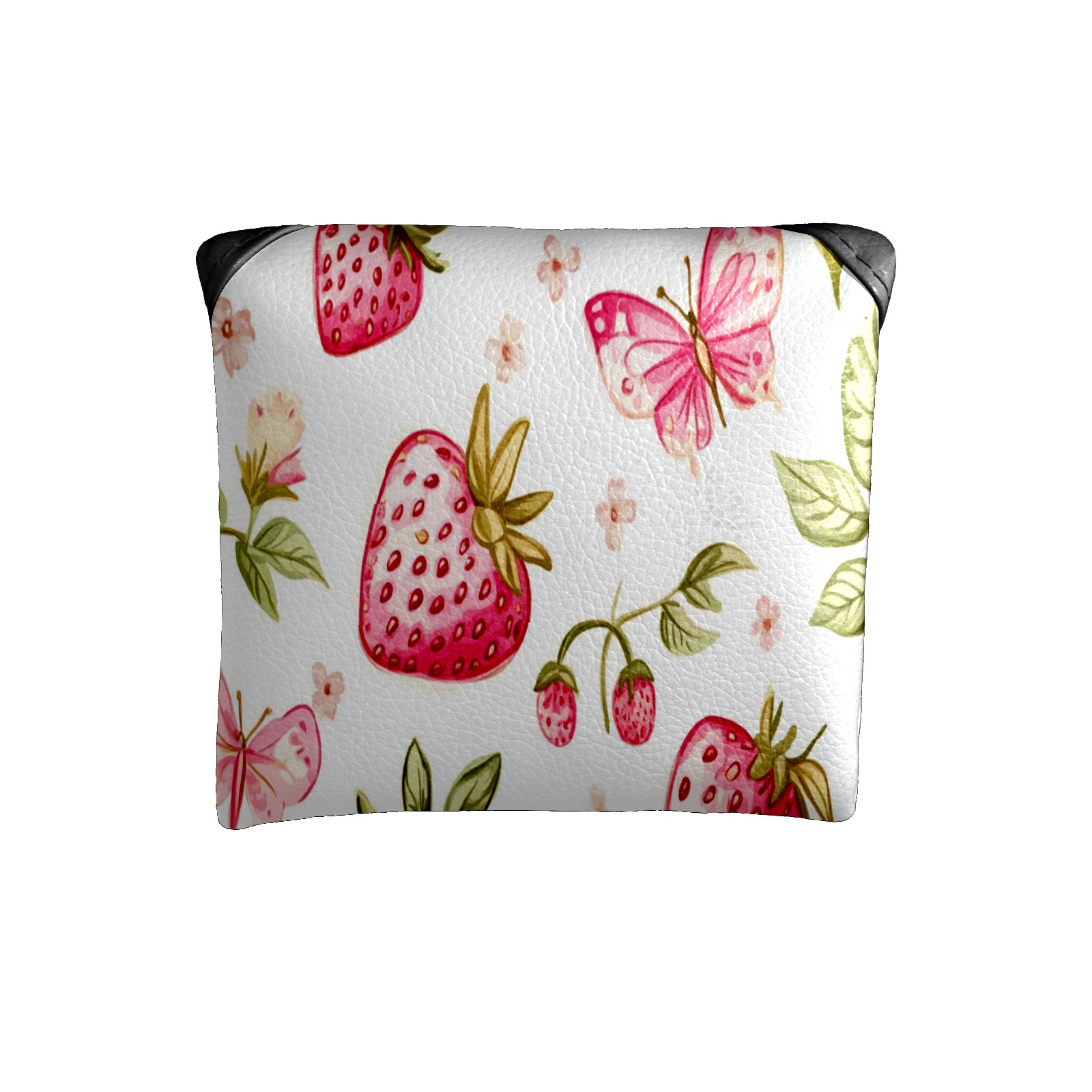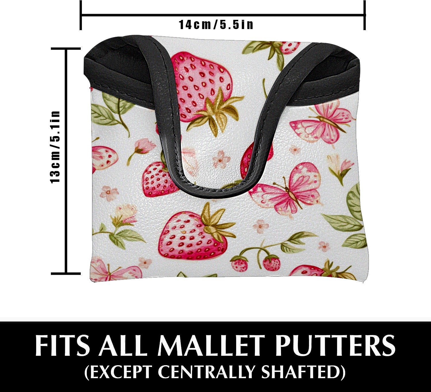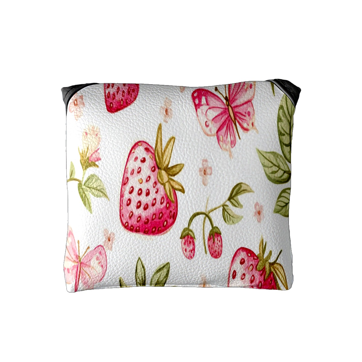 Golf Club Head Covers for Mallet Putter, Waterproof Leather Headcovers for Golf Clubs, Ideal Golf Accessories Gift for Men Women (Pink Strawberries And Butterflies)