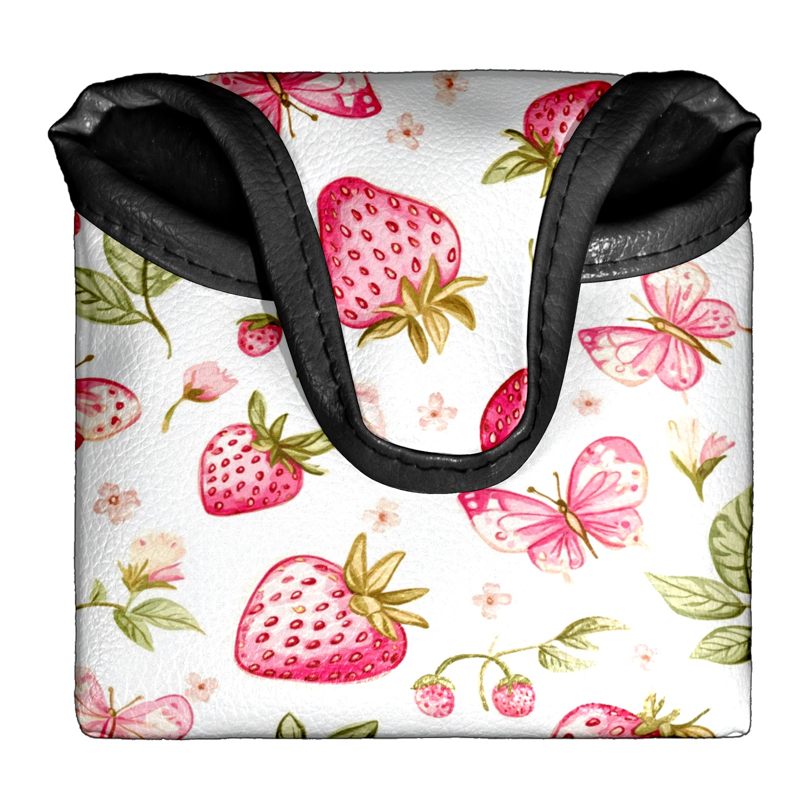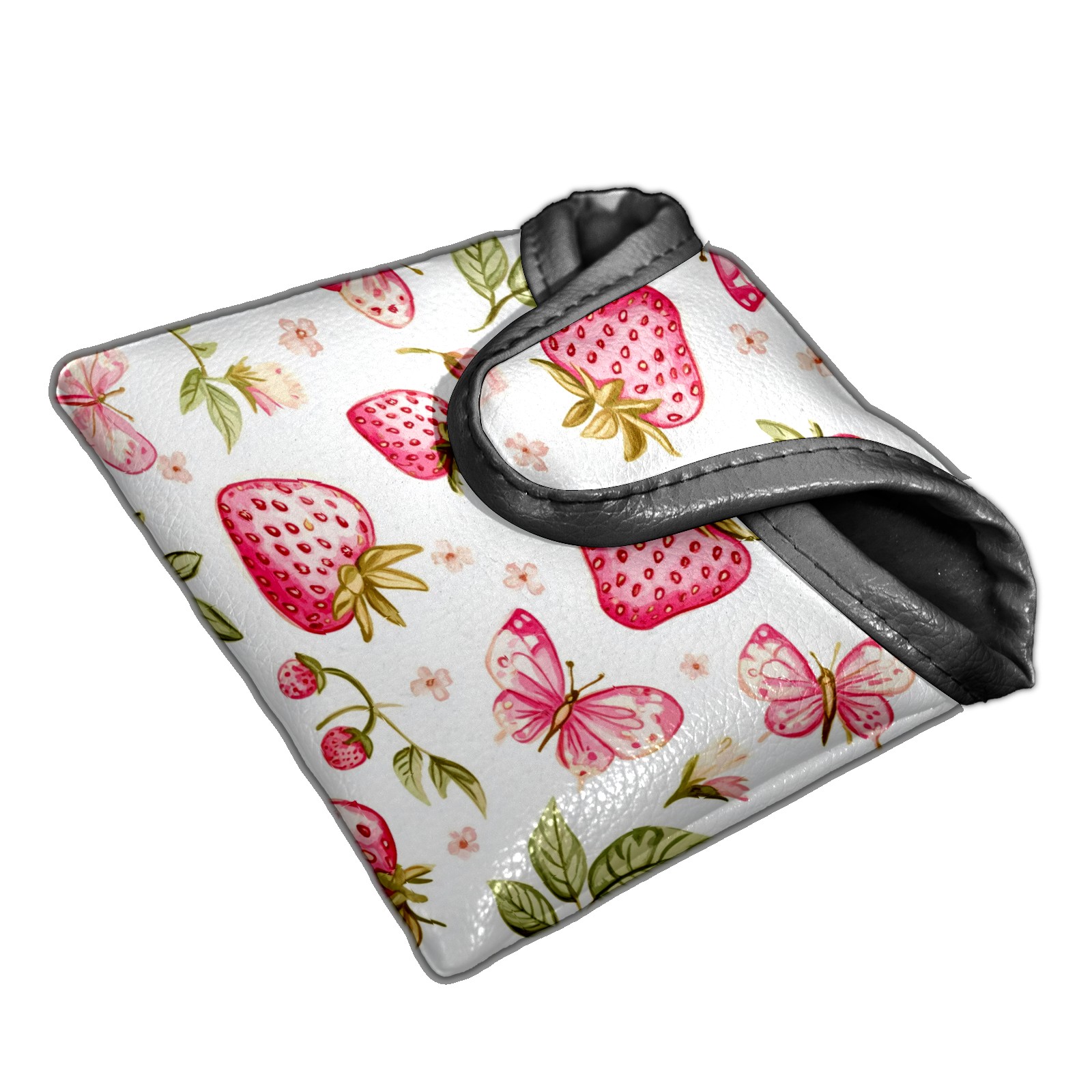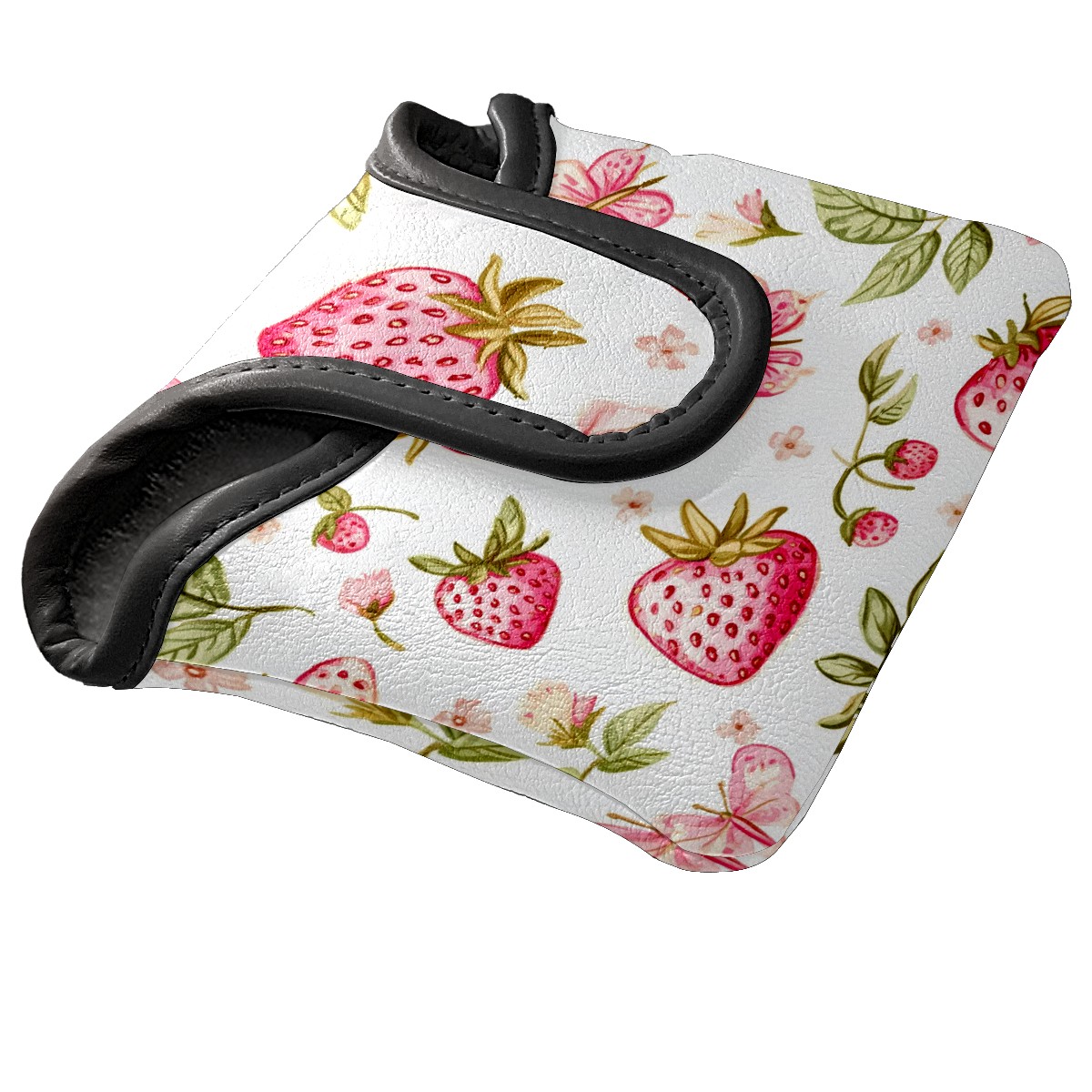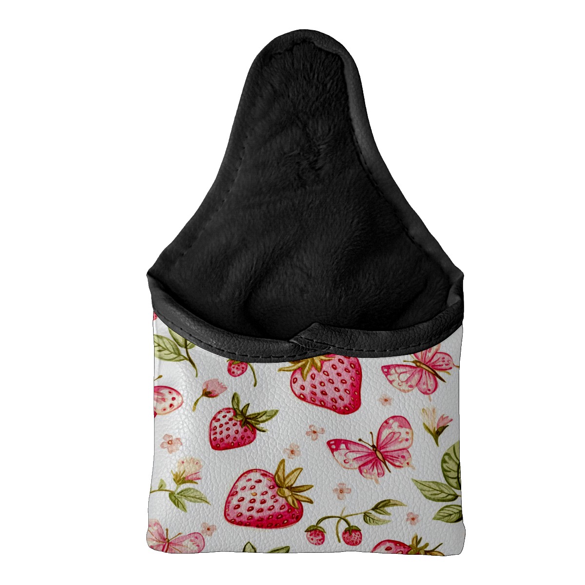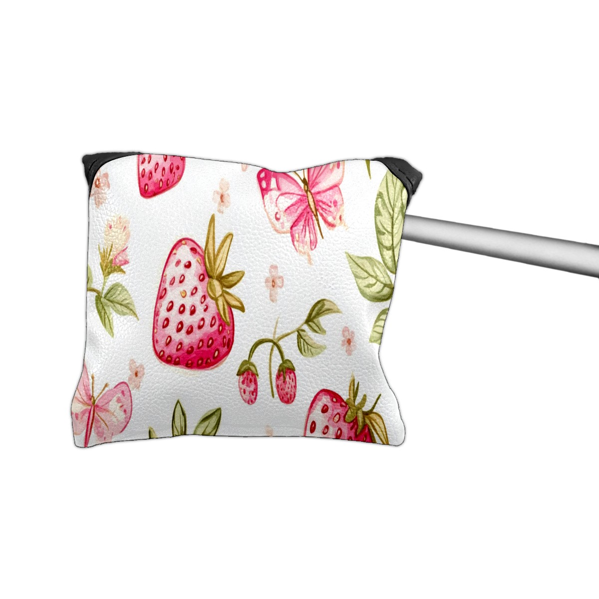 Golf Club Head Covers for Mallet Putter, Waterproof Leather Headcovers for Golf Clubs, Ideal Golf Accessories Gift for Men Women (Pink Strawberries And Butterflies)