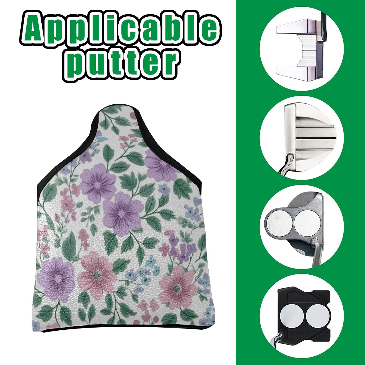 Golf Club Head Covers for Mallet Putter, Waterproof Leather Headcovers for Golf Clubs, Ideal Golf Accessories Gift for Men Women (Pink Lavender Floral)