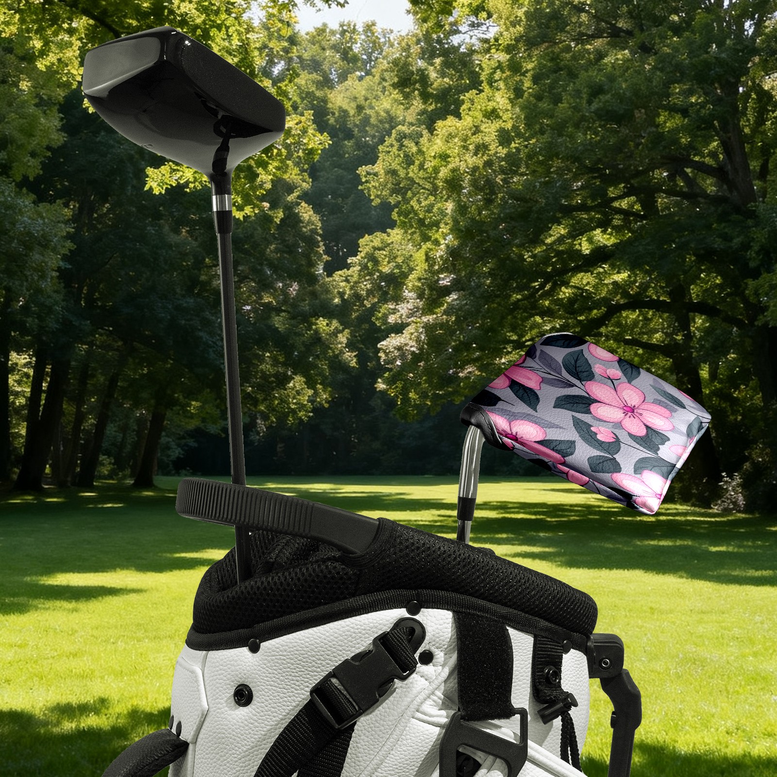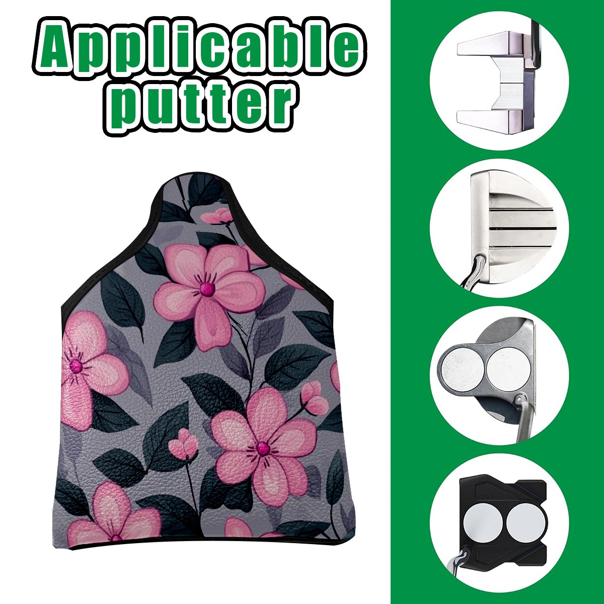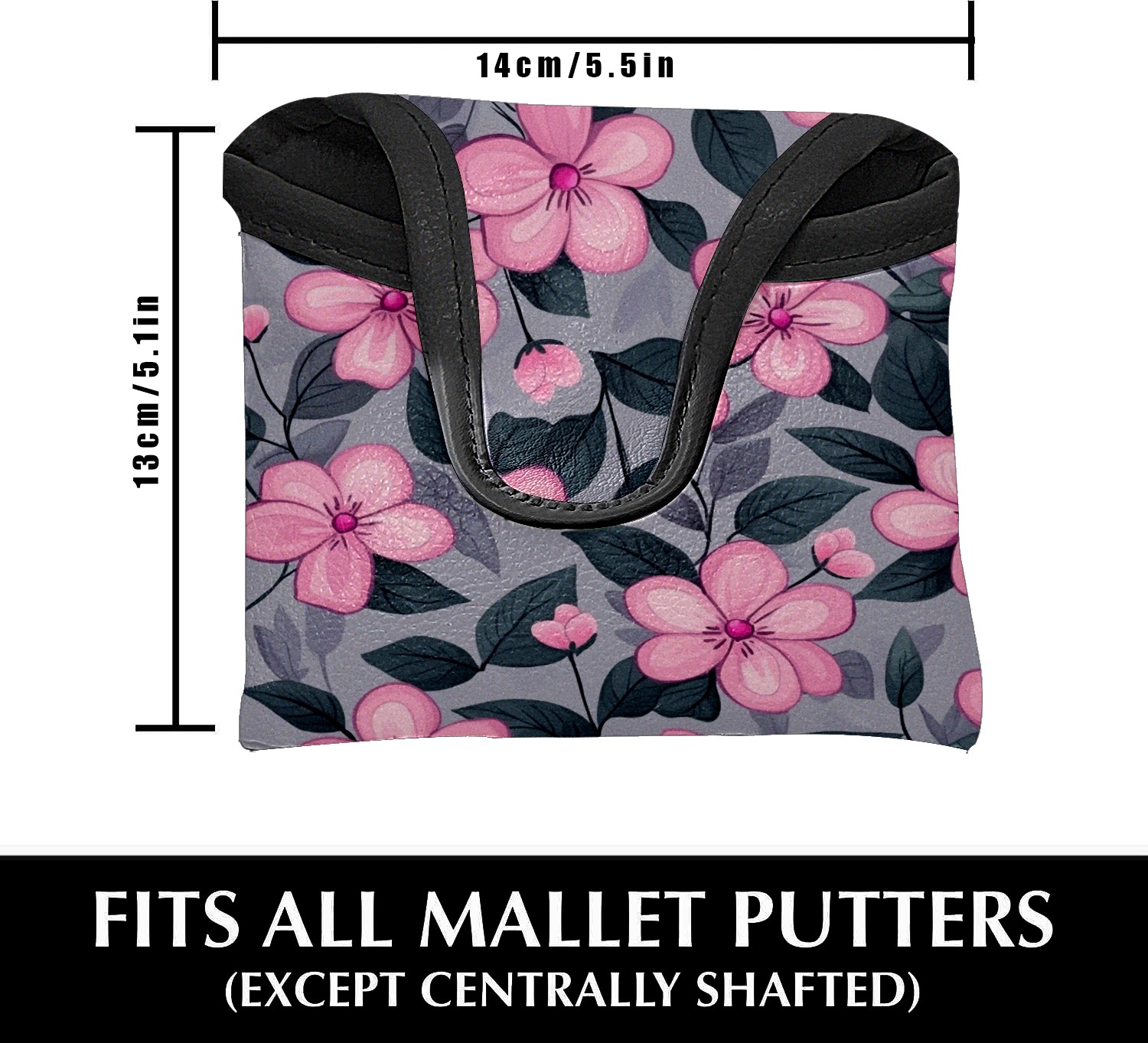 Golf Club Head Covers for Mallet Putter, Waterproof Leather Headcovers for Golf Clubs, Ideal Golf Accessories Gift for Men Women (Pink Flowers)