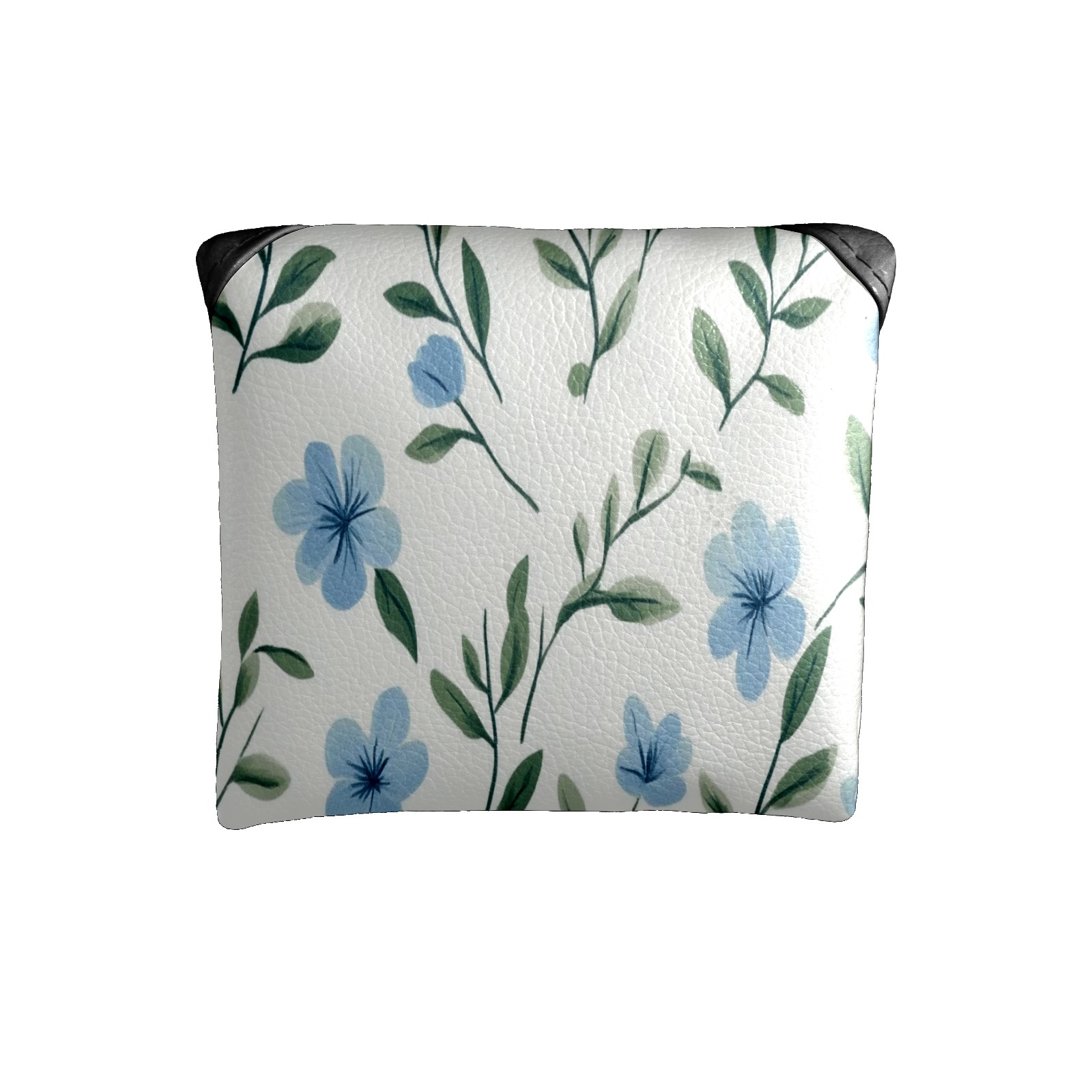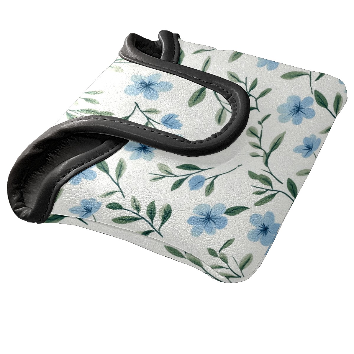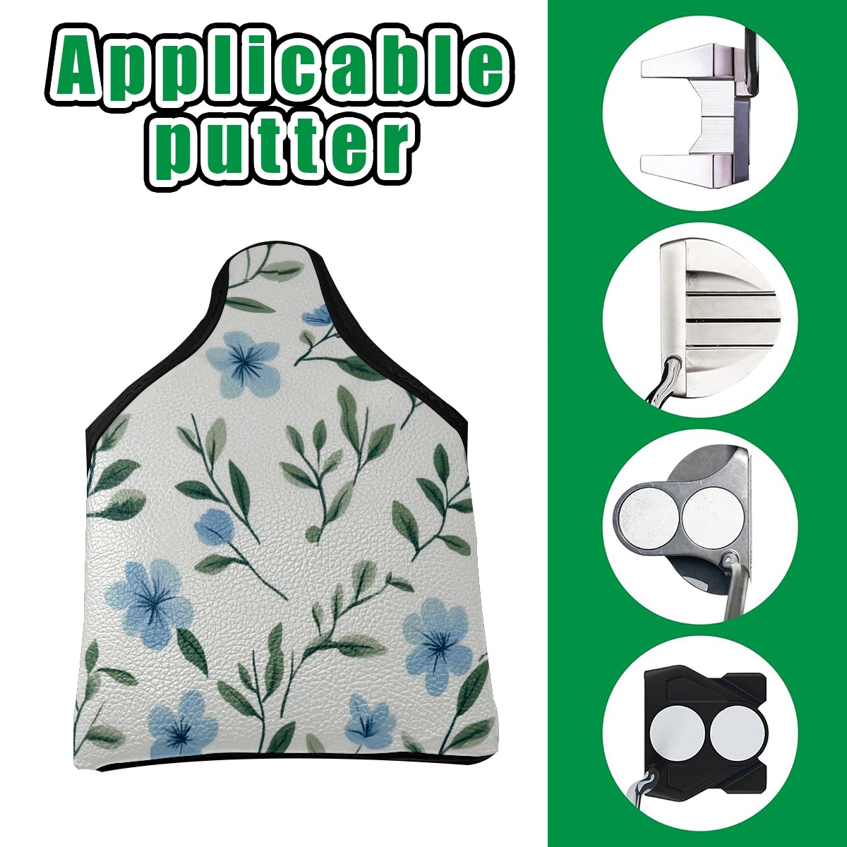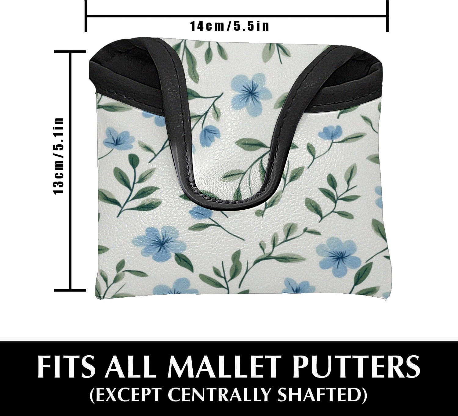 Golf Club Head Covers for Mallet Putter, Waterproof Leather Headcovers for Golf Clubs, Ideal Golf Accessories Gift for Men Women (Pastel Blue Flowers)
