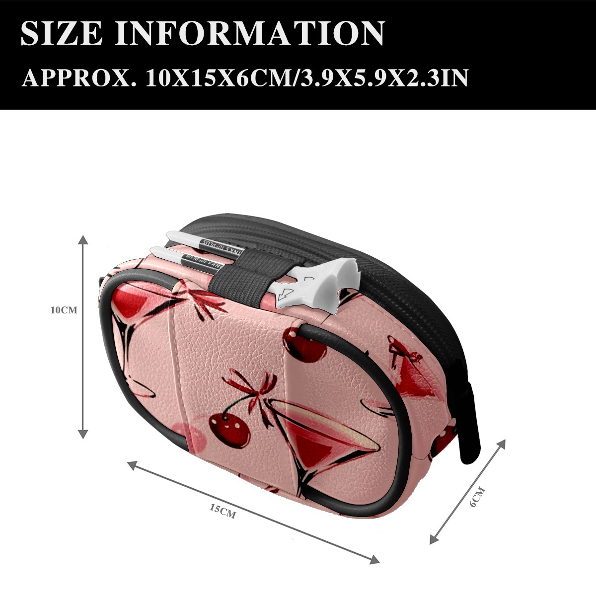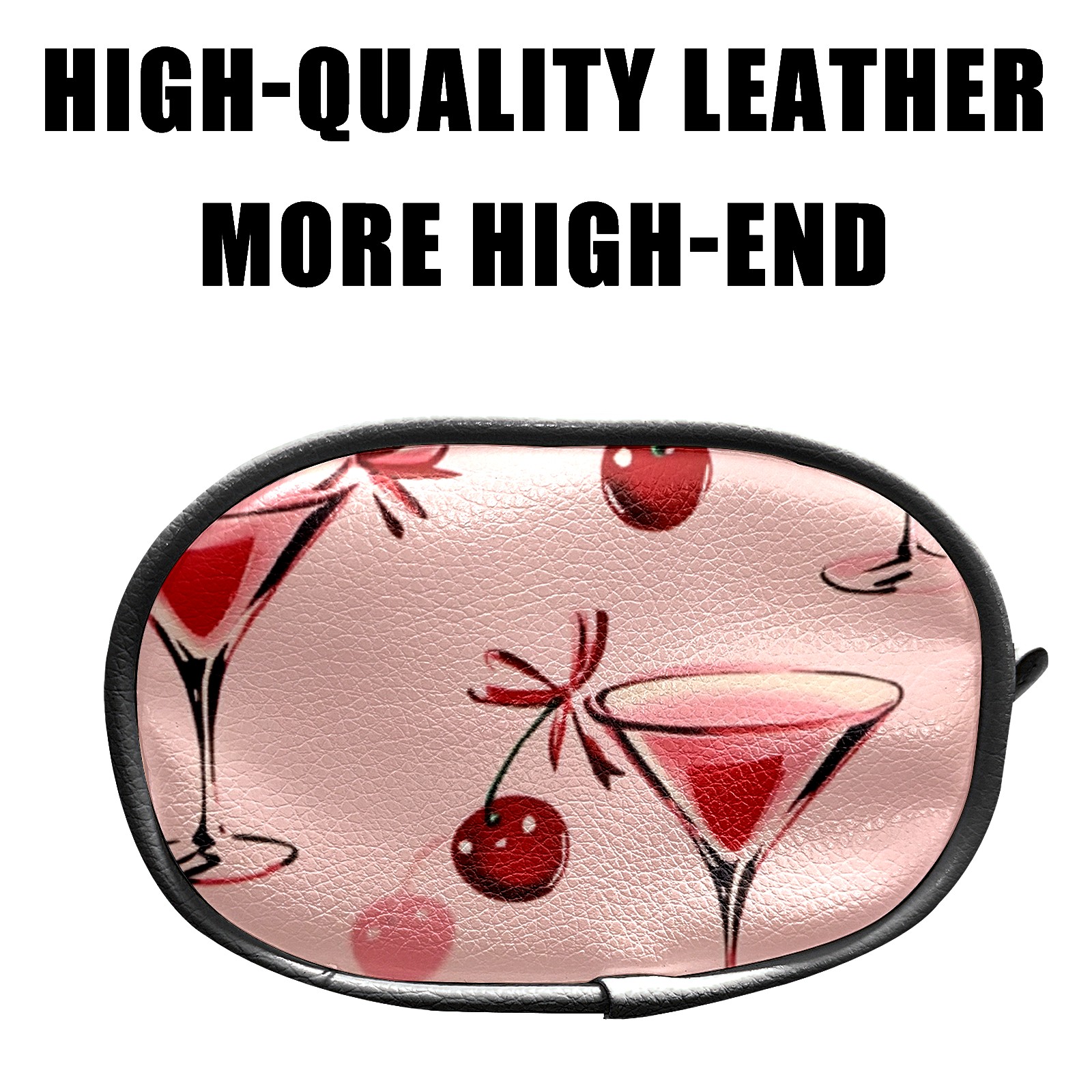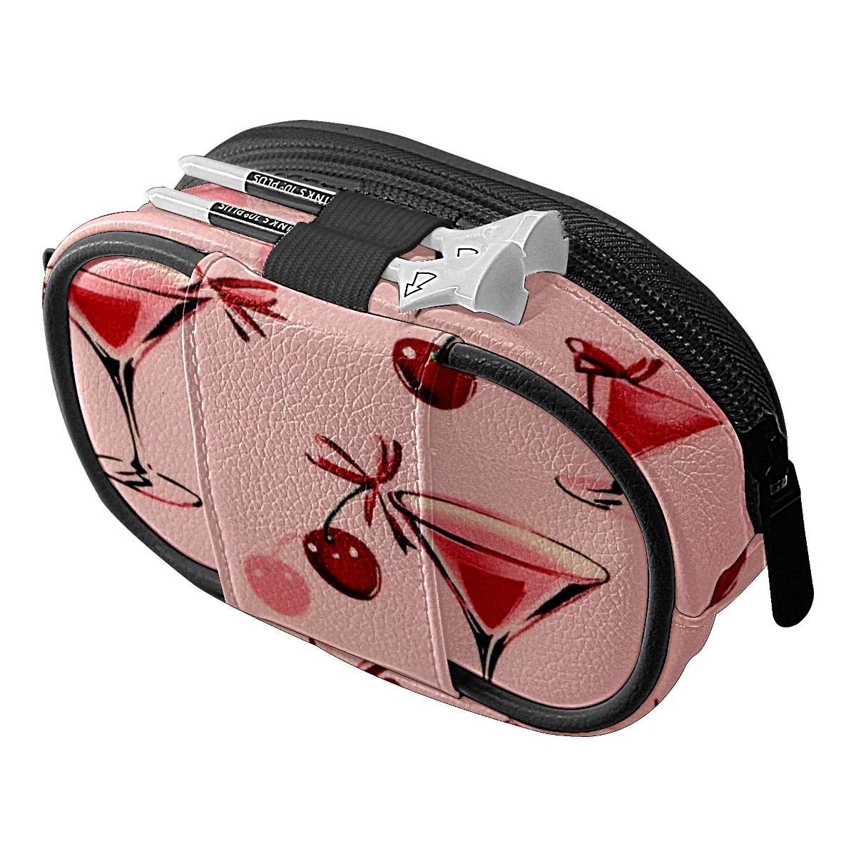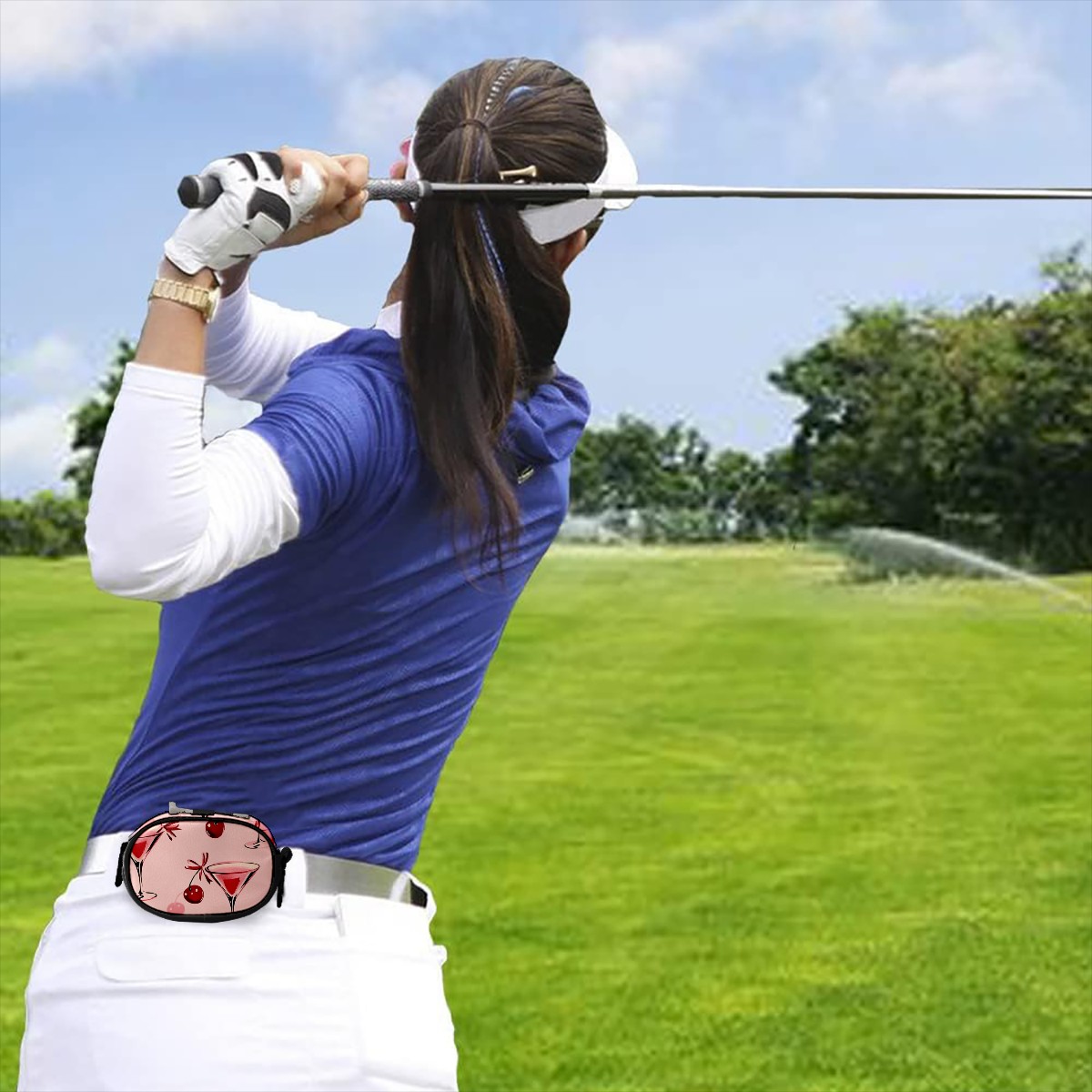 Golf Ball Waist Bag PU Leather Golf Ball Pouch with Belt Clip, Portable Golf Tee Holder & Golf Accessories for Men Women, Golfing Fanny Pack for Balls Tees Valuables (Red Cherries And Glasses)