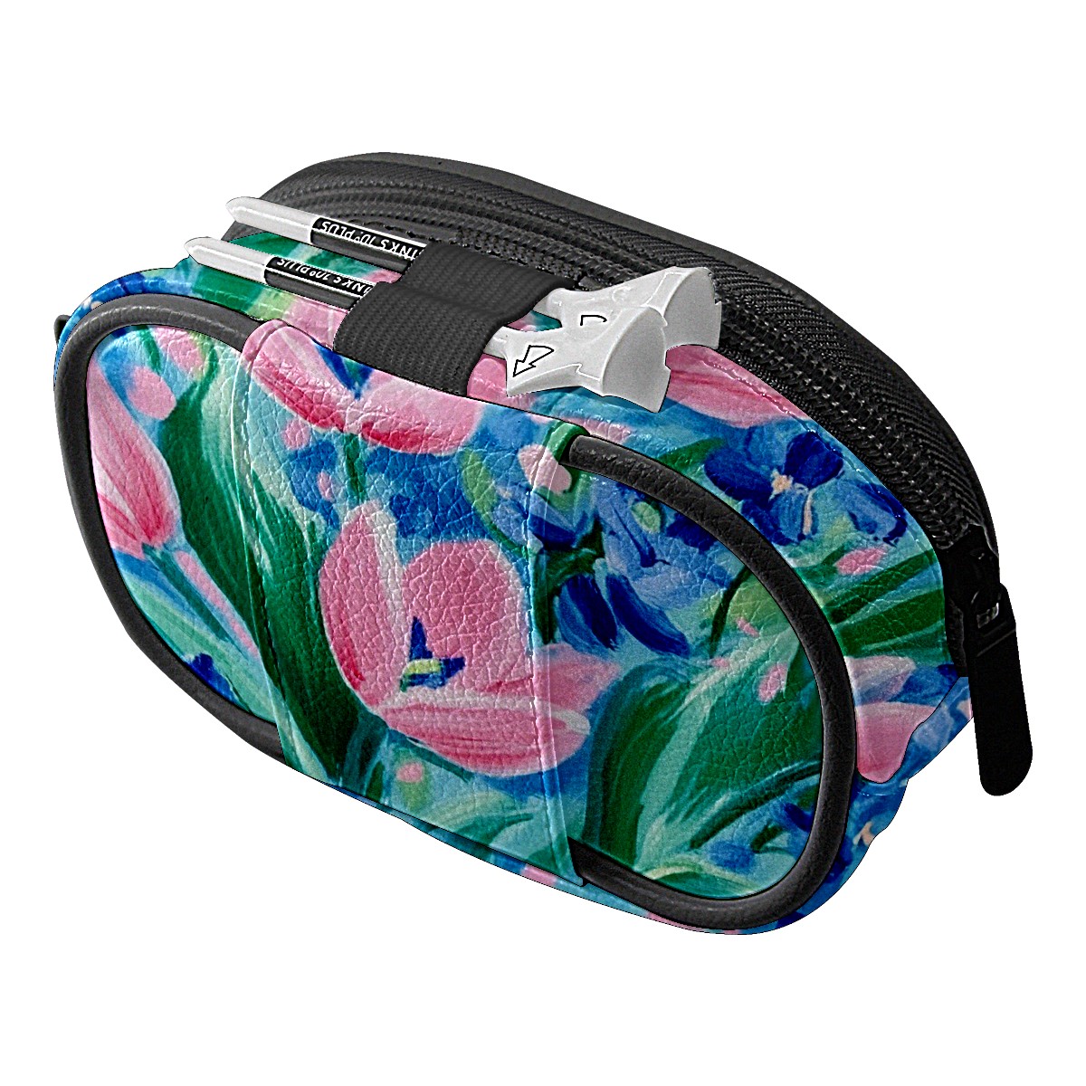 Golf Ball Waist Bag PU Leather Golf Ball Pouch with Belt Clip, Portable Golf Tee Holder & Golf Accessories for Men Women, Golfing Fanny Pack for Balls Tees Valuables (Tulips)