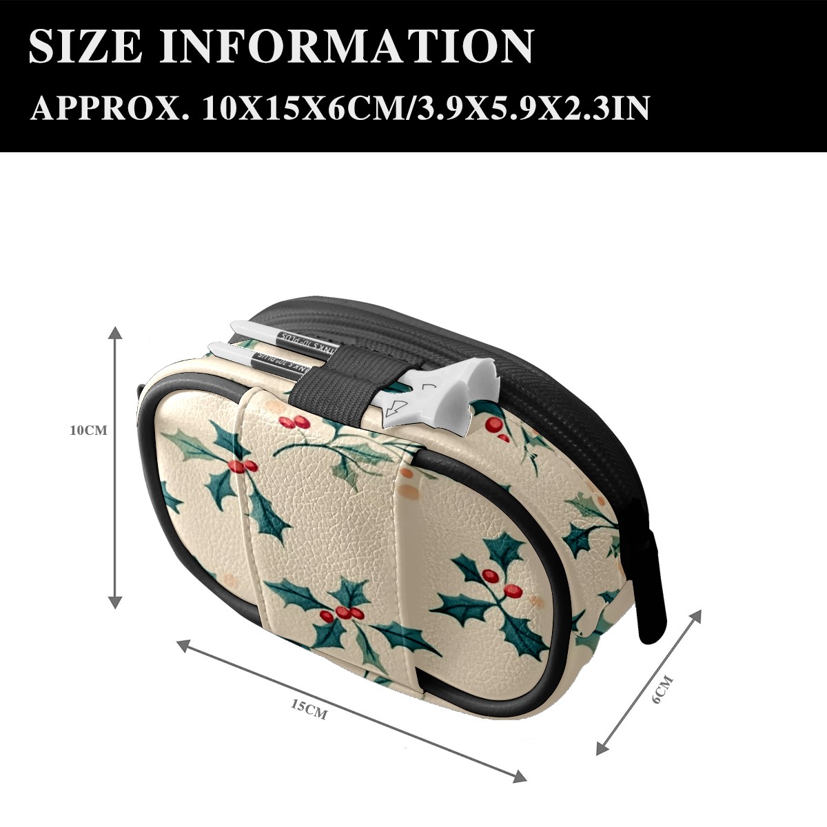 Golf Ball Waist Bag PU Leather Golf Ball Pouch with Belt Clip, Portable Golf Tee Holder & Golf Accessories for Men Women, Golfing Fanny Pack for Balls Tees Valuables (Small Holly Leaves)