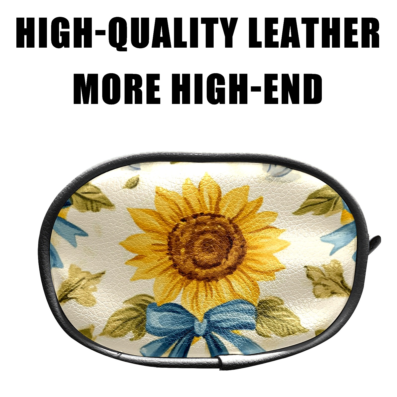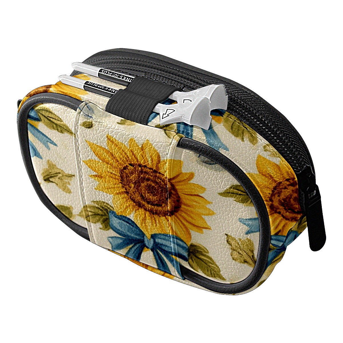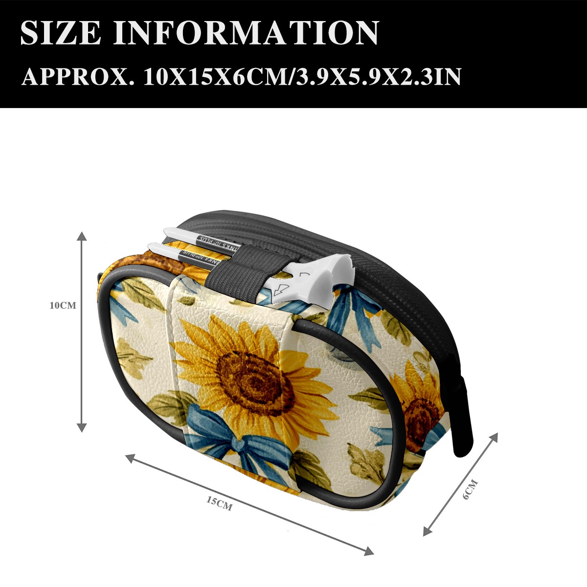 Golf Ball Waist Bag PU Leather Golf Ball Pouch with Belt Clip, Portable Golf Tee Holder & Golf Accessories for Men Women, Golfing Fanny Pack for Balls Tees Valuables (Sunflowers And Blue Bows)