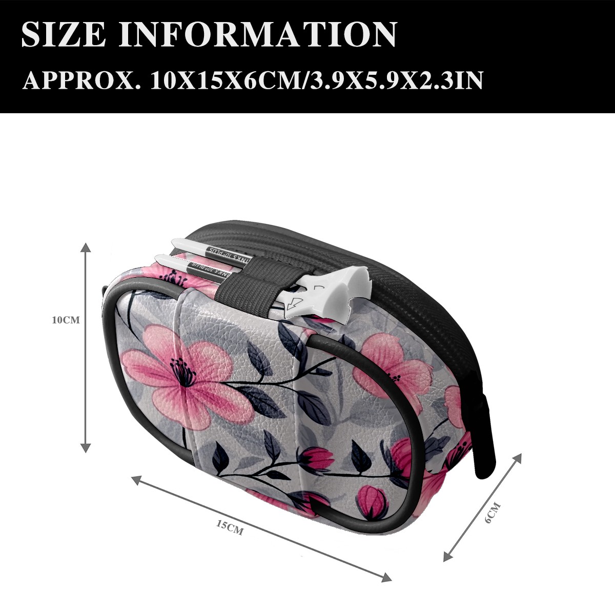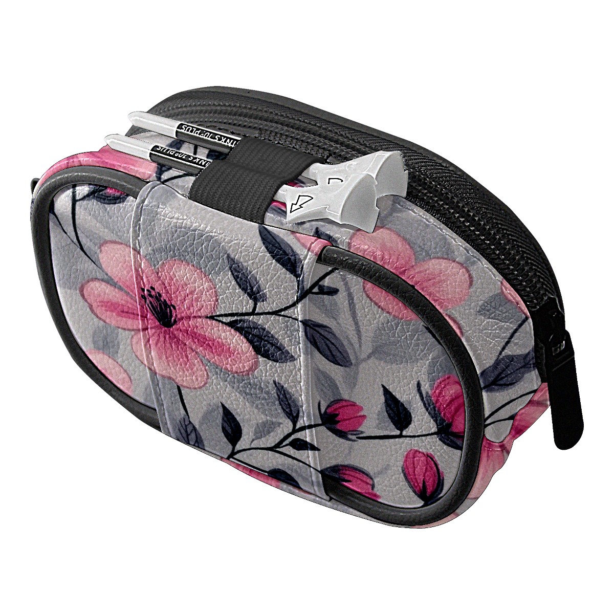 Golf Ball Waist Bag PU Leather Golf Ball Pouch with Belt Clip, Portable Golf Tee Holder & Golf Accessories for Men Women, Golfing Fanny Pack for Balls Tees Valuables (Pink Flowers And Leaves)